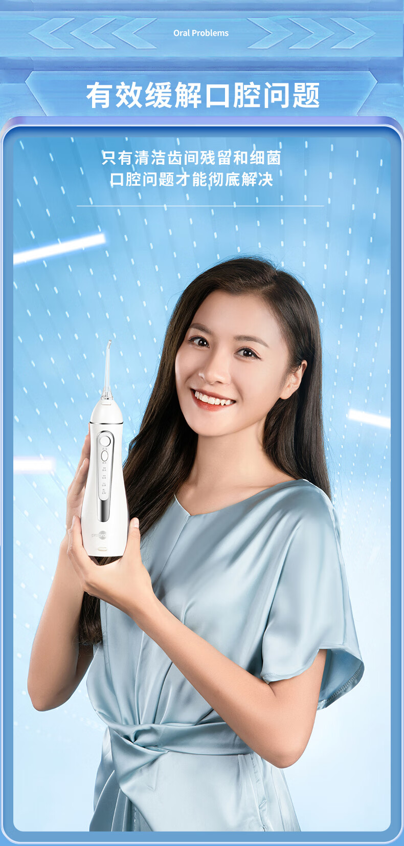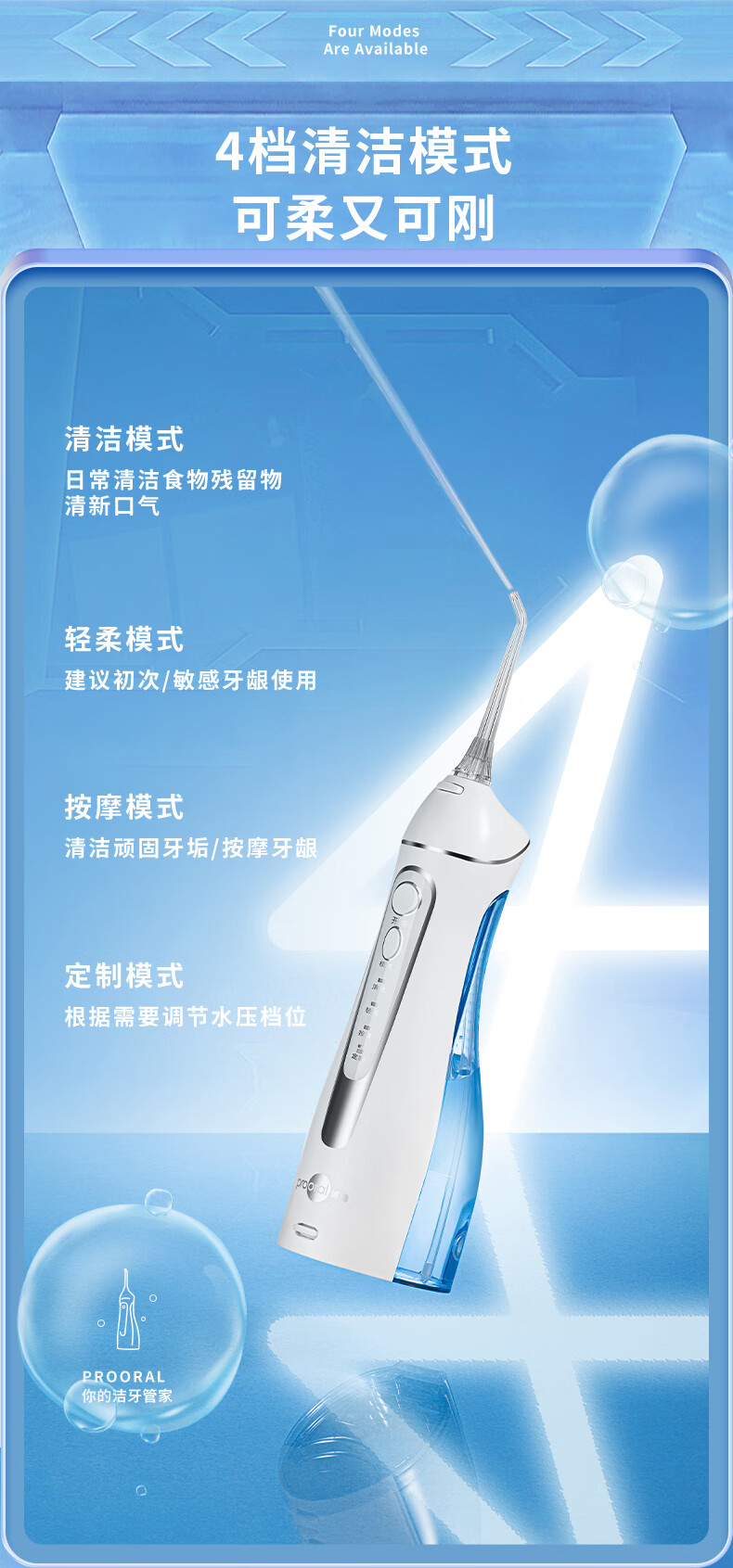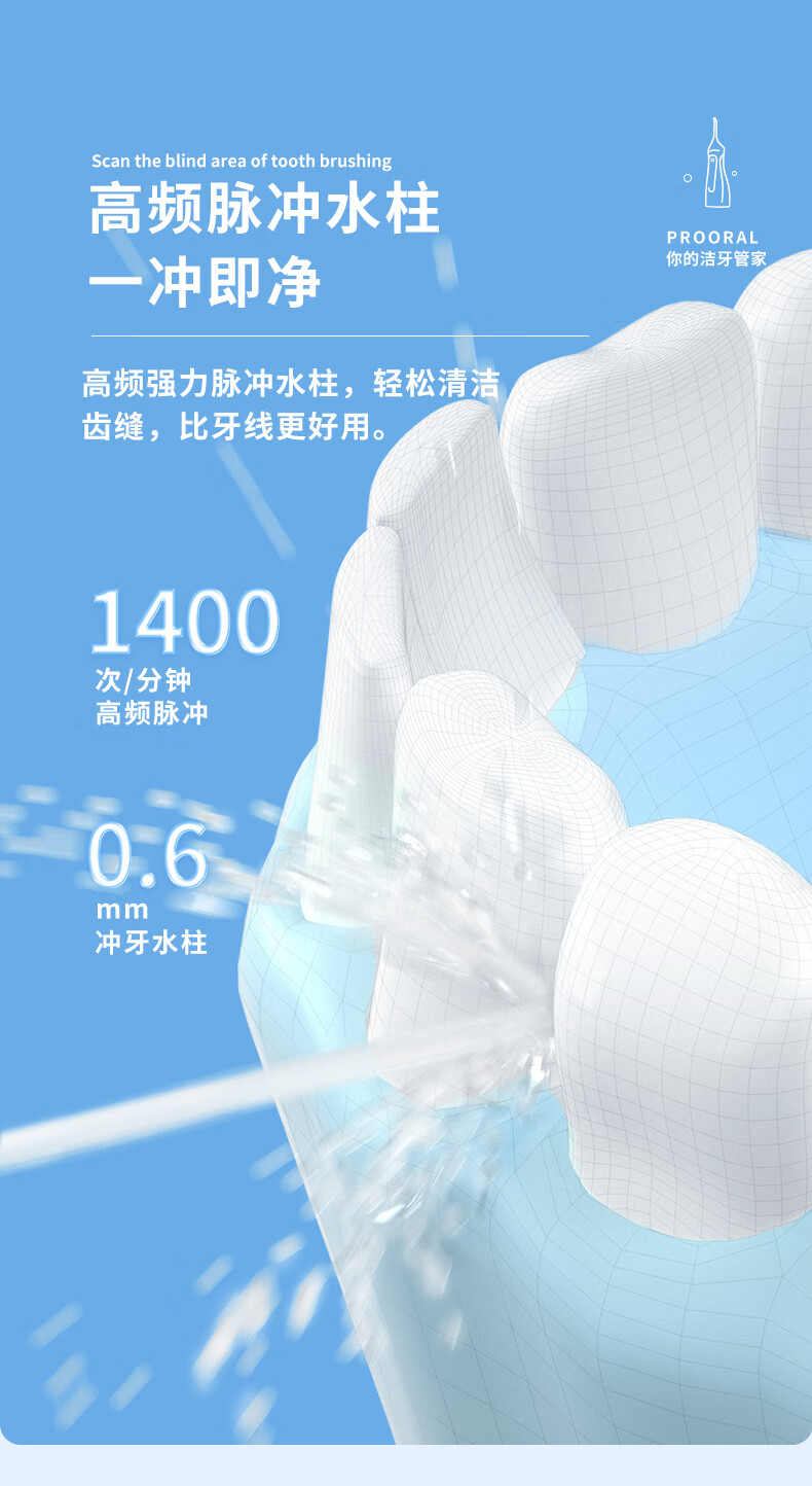 博皓(prooral)冲牙器便携式洗牙器家用牙齿冲洗器洁牙器水牙线正畸清洁器除牙垢预防牙结石 送朋友父母礼物 F38 象牙白 标配 2支喷头