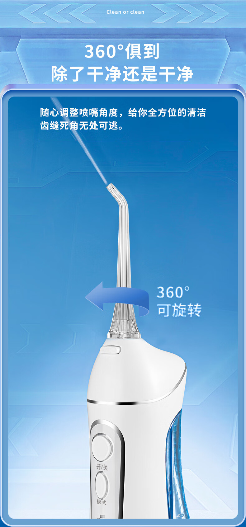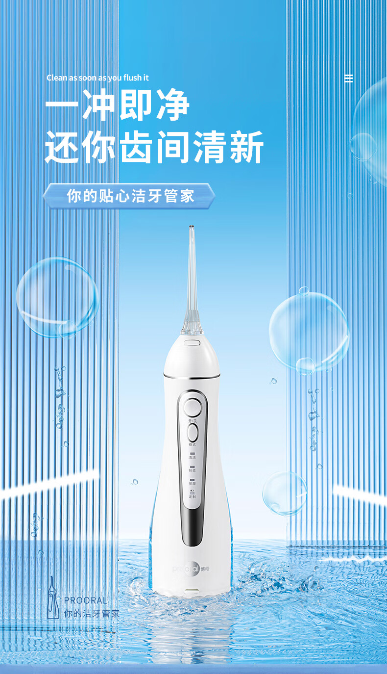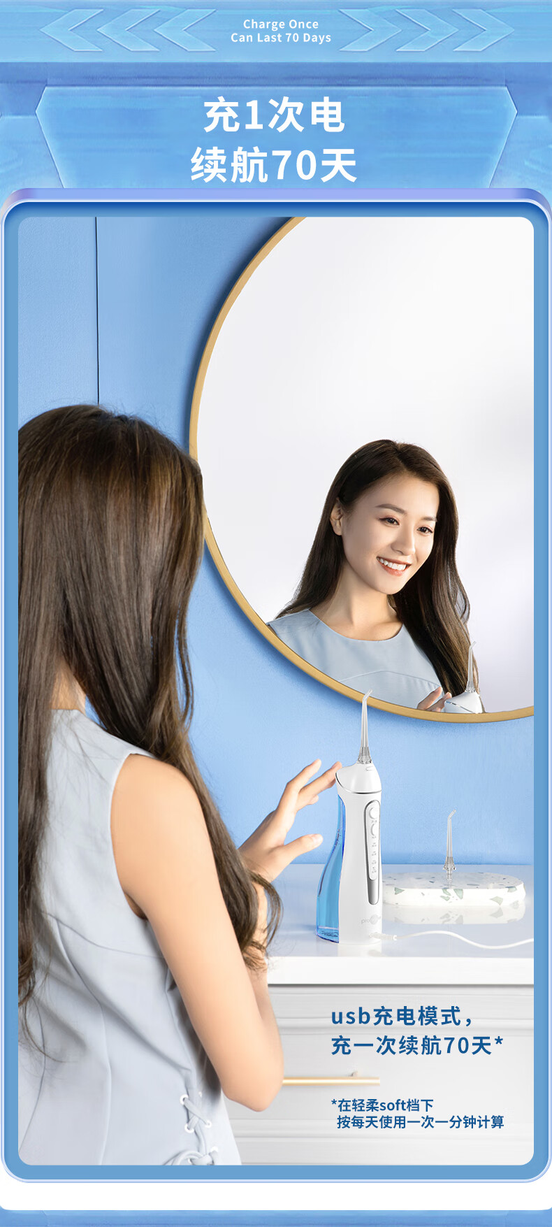 博皓(prooral)冲牙器便携式洗牙器家用牙齿冲洗器洁牙器水牙线正畸清洁器除牙垢预防牙结石 送朋友父母礼物 F38 象牙白 标配 2支喷头