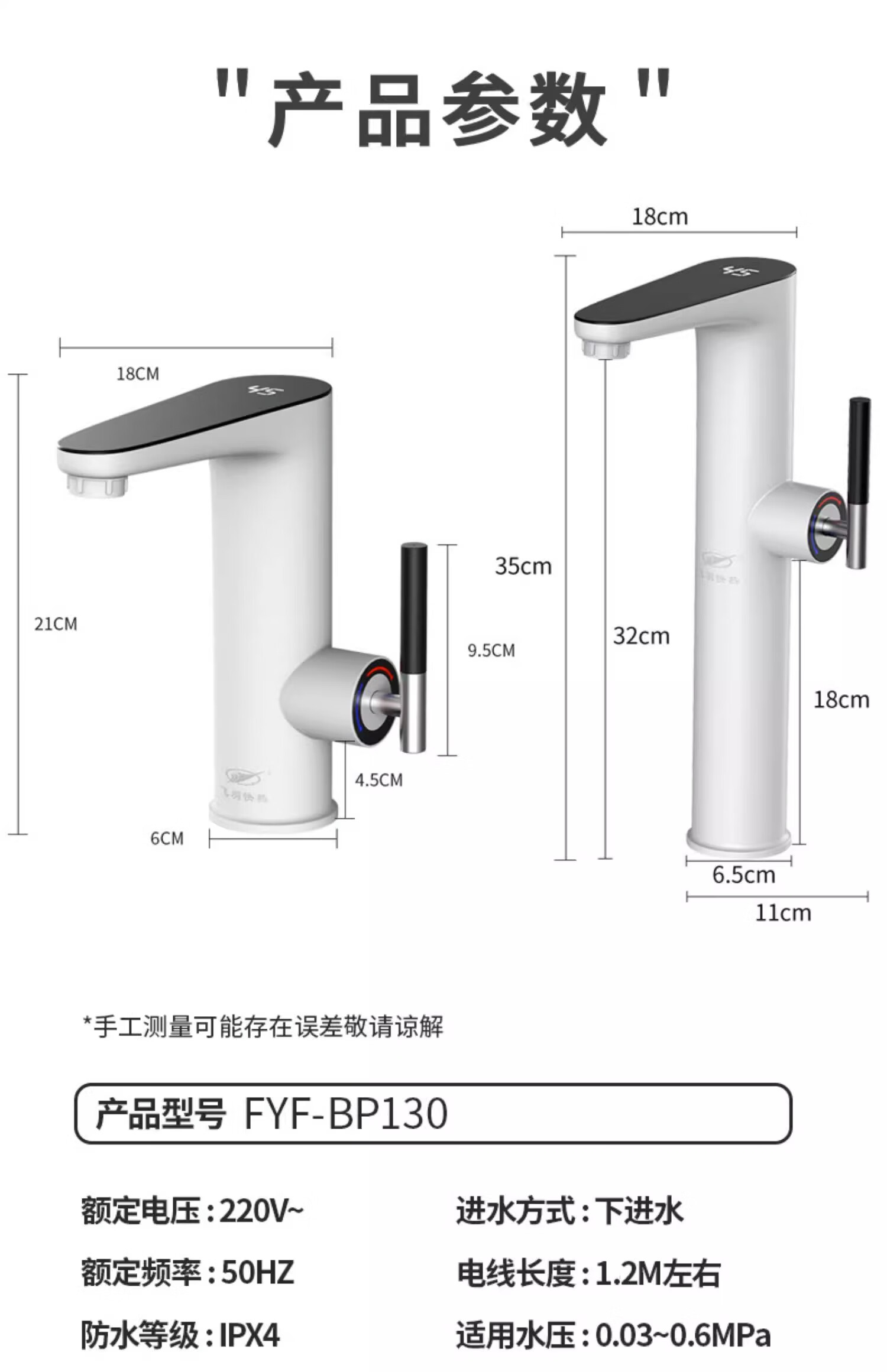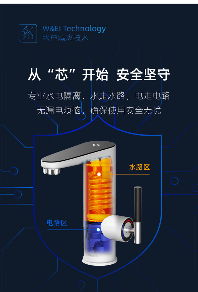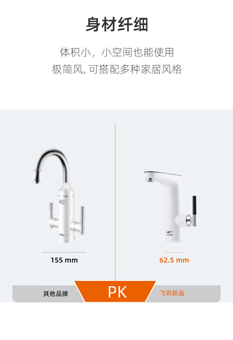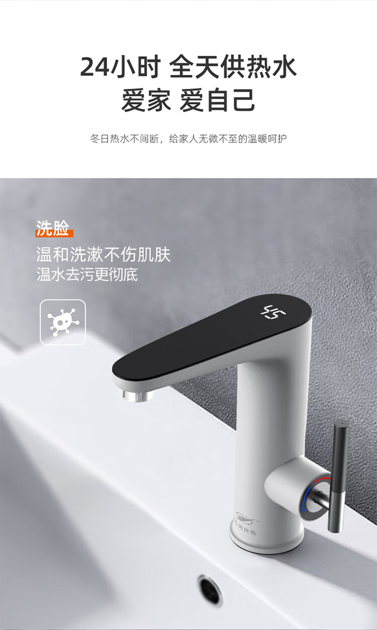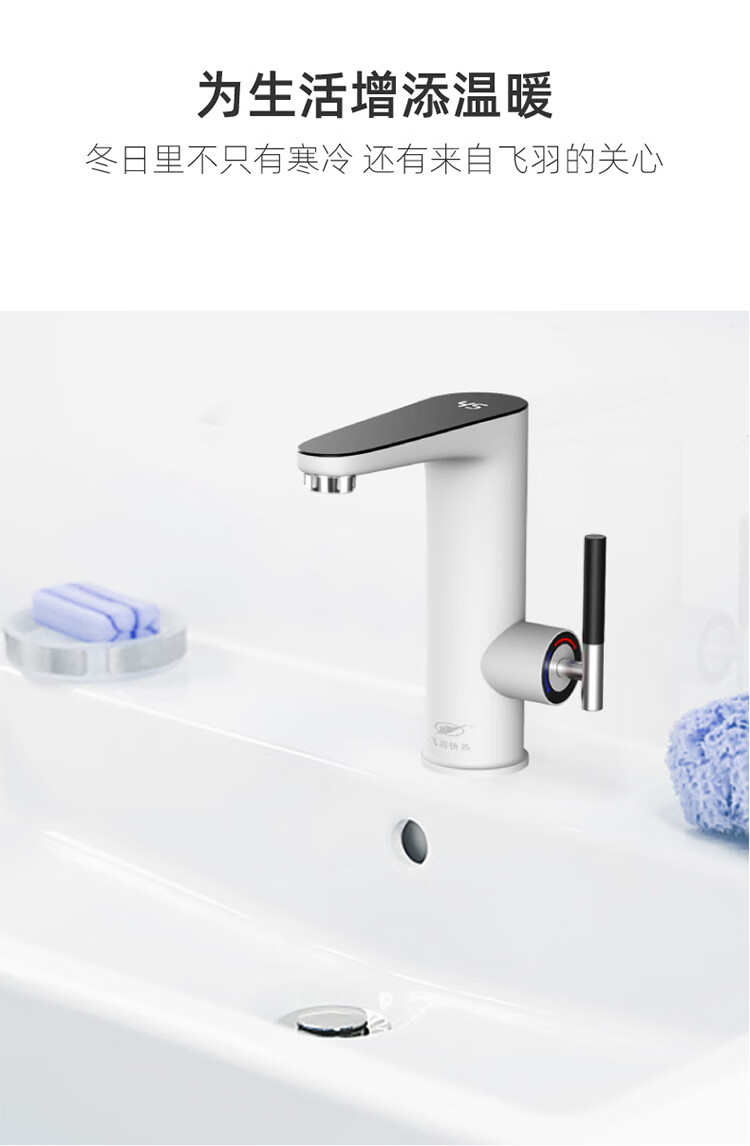 飞羽 电热水龙头 即热式厨房快速加热水龙头速热小厨宝电热水器卫浴台盆即热龙头 【经典台盆款】BP130白(高温报警/免费安装)