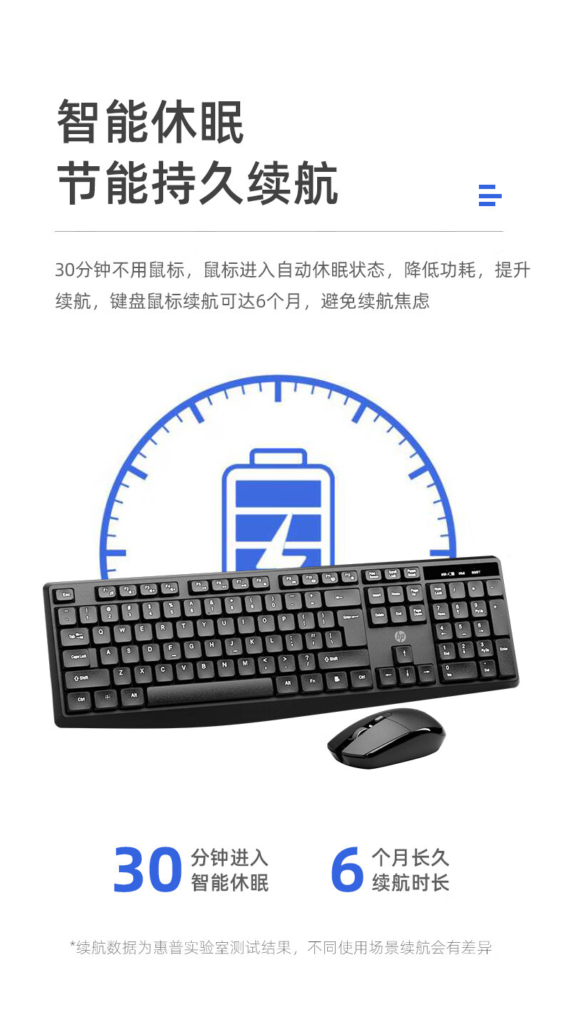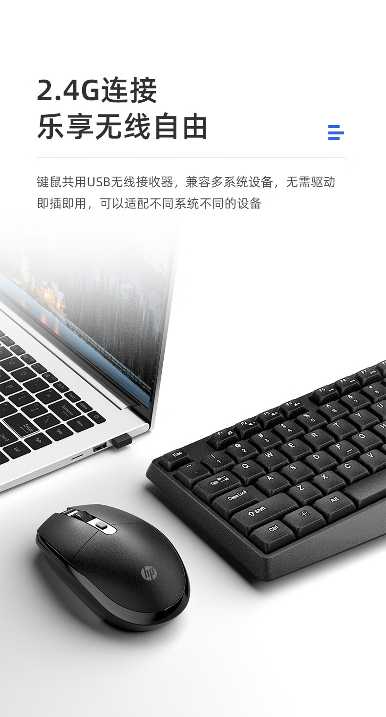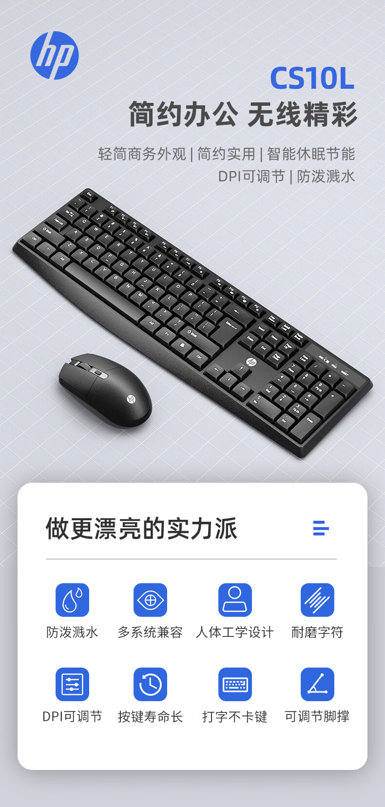 惠普(HP)CS10L无线键盘鼠标套装 轻音按键办公键盘104键全尺寸商务键盘