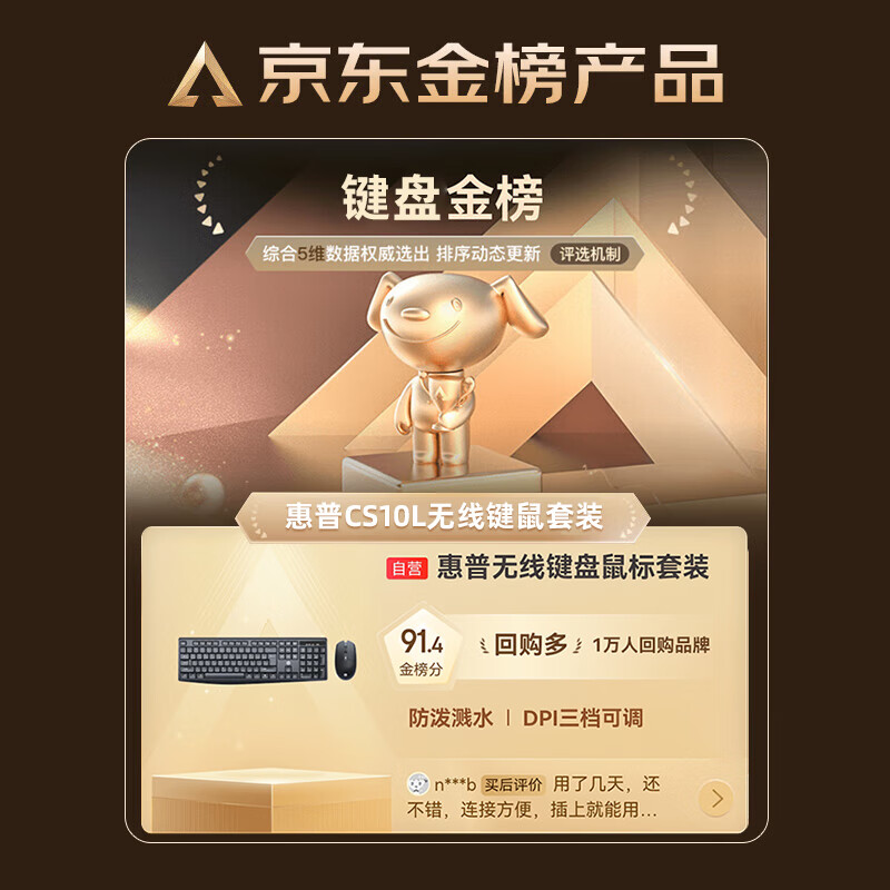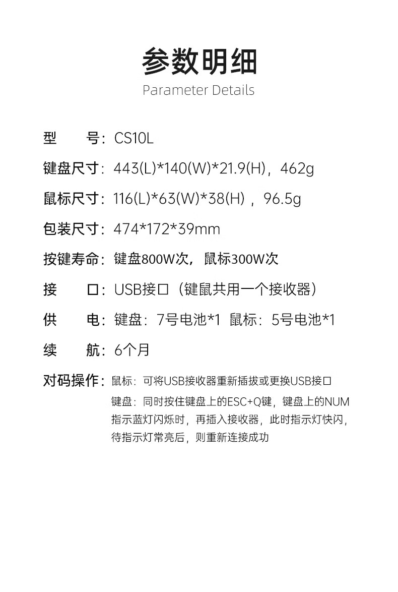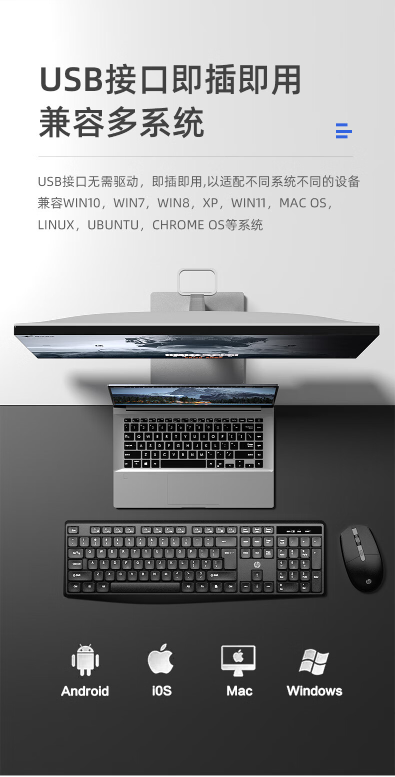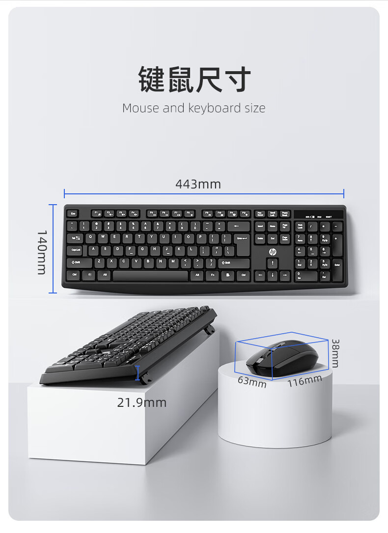 惠普(HP)CS10L无线键盘鼠标套装 轻音按键办公键盘104键全尺寸商务键盘