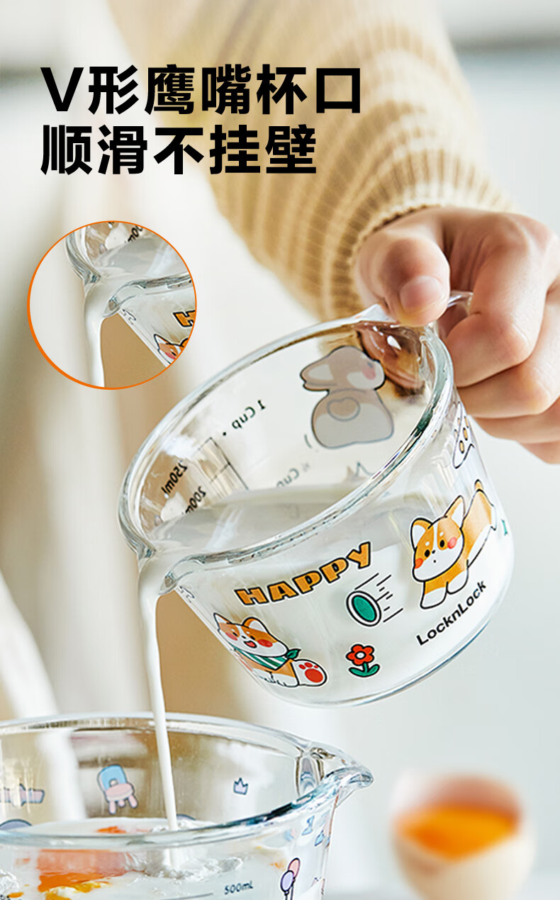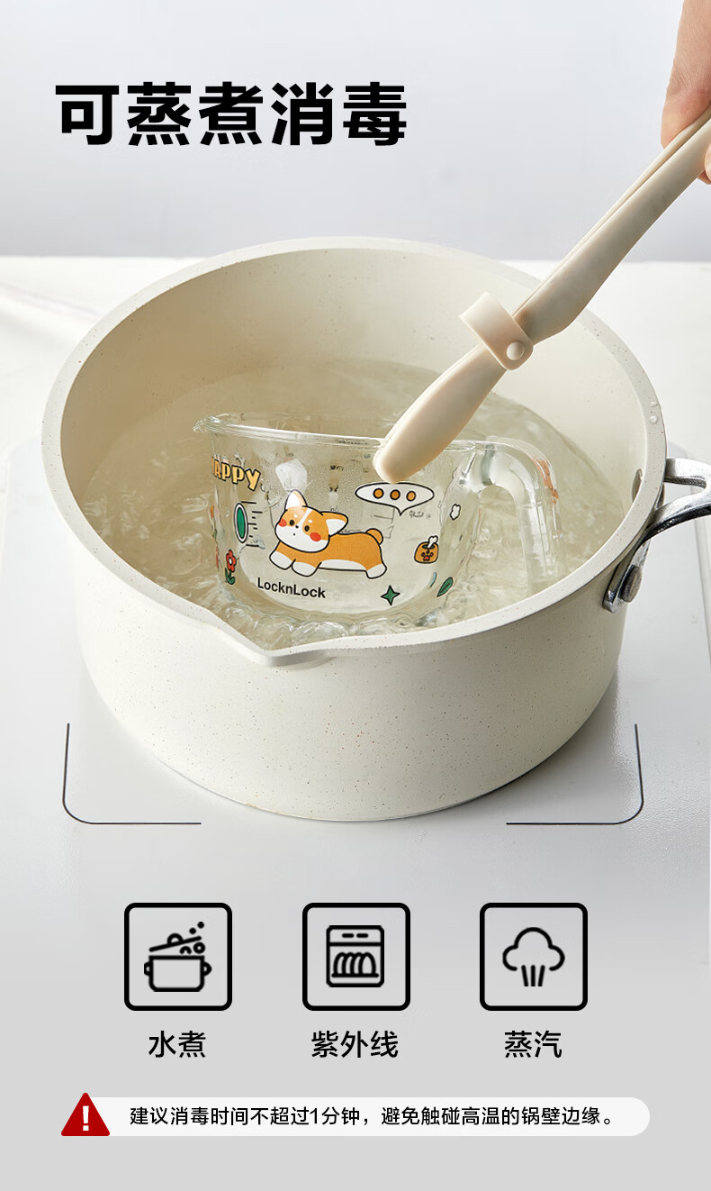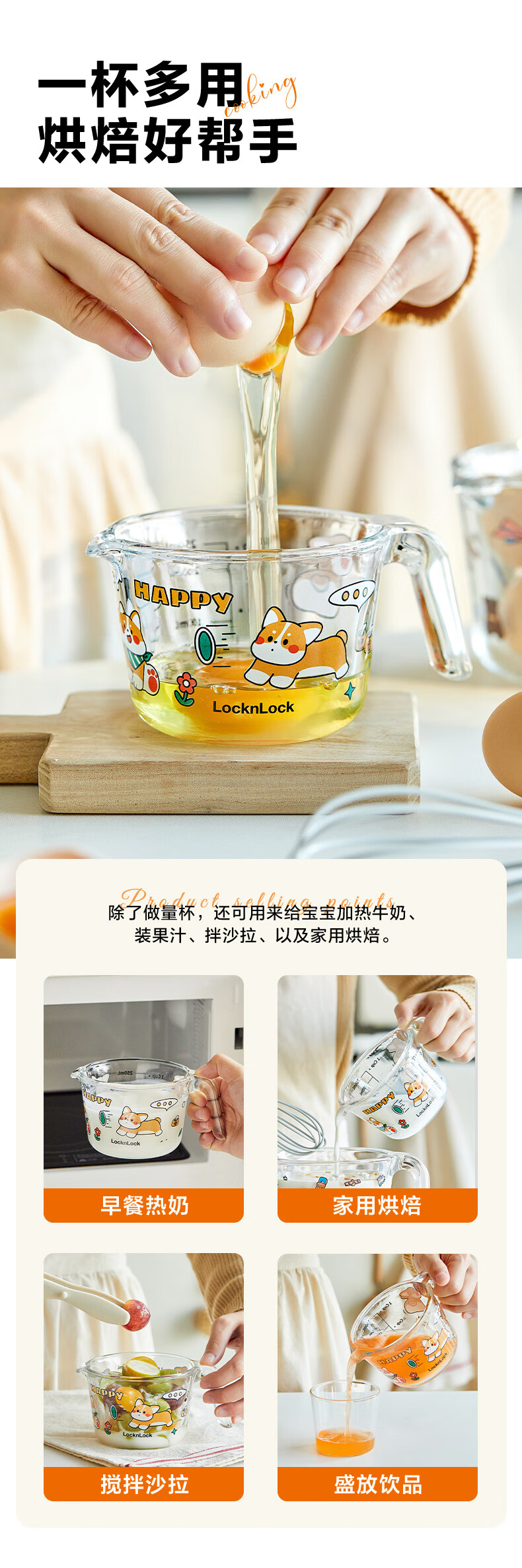 乐扣乐扣婴儿辅食杯早餐杯宝宝刻度量杯可加热牛奶杯耐高温玻璃蒸蛋碗