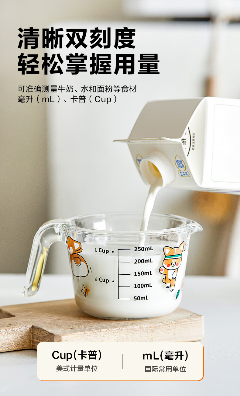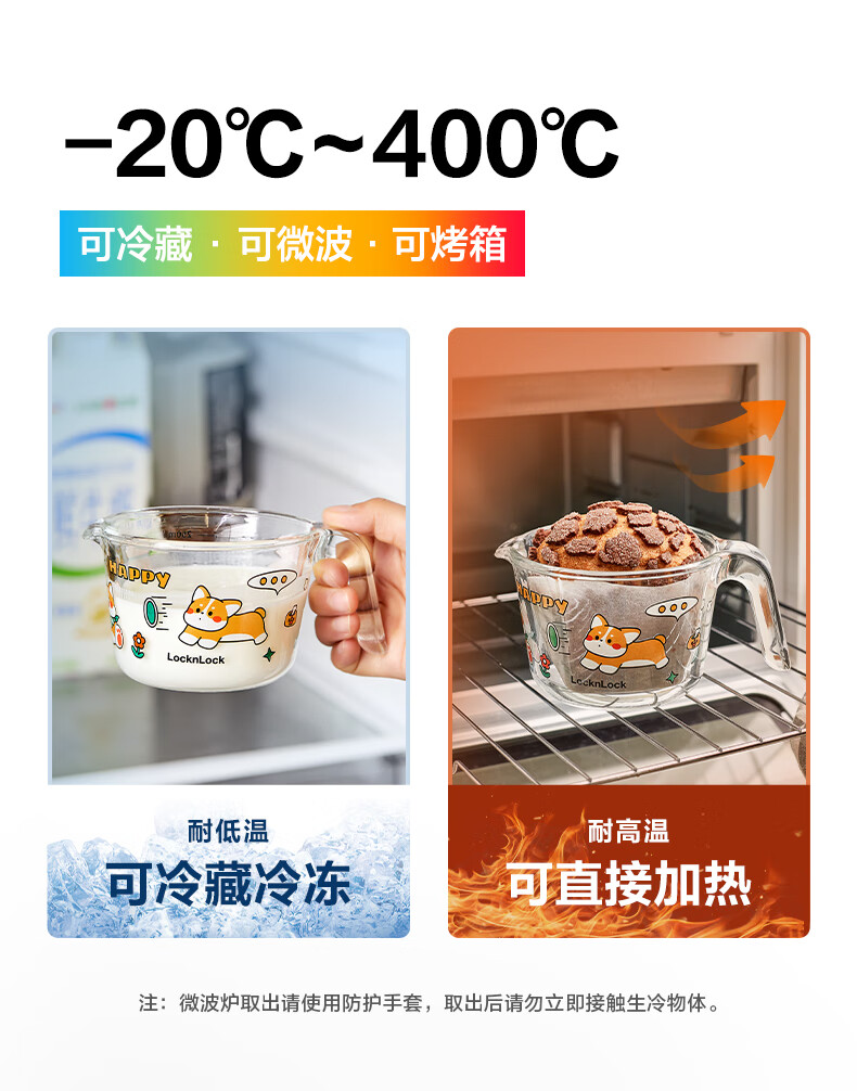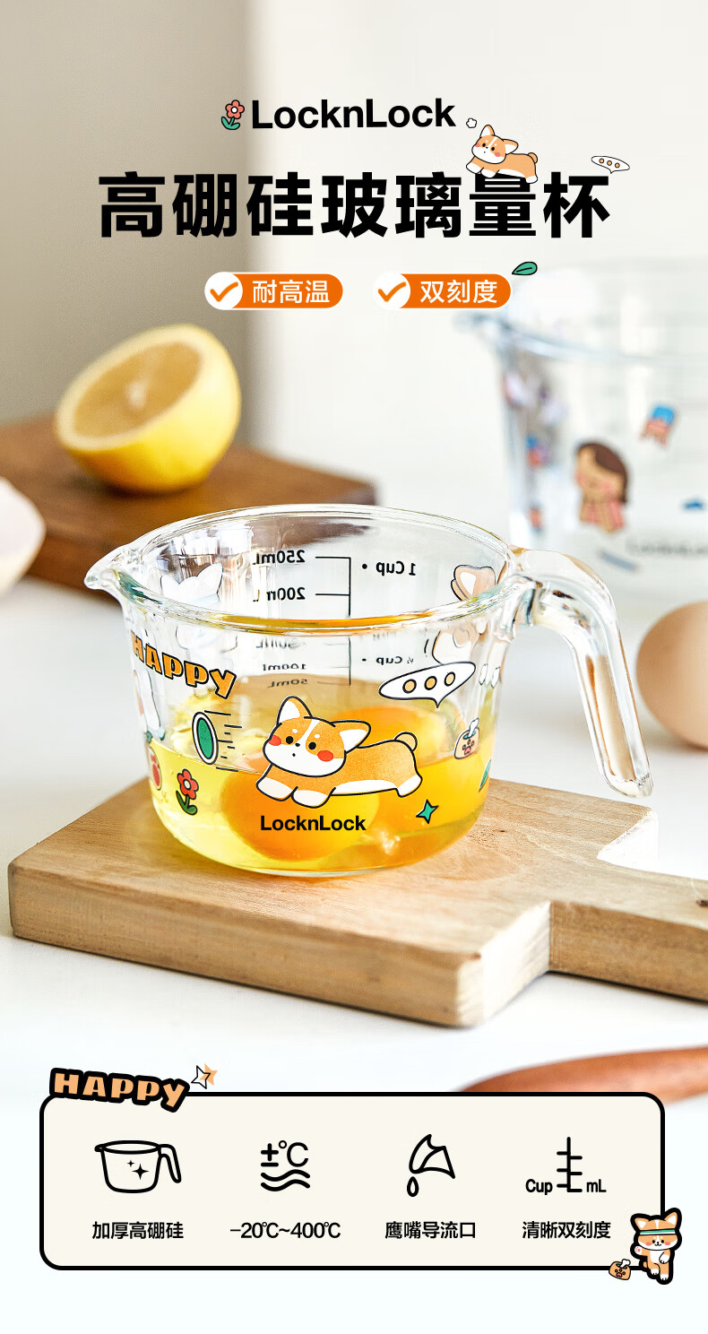 乐扣乐扣婴儿辅食杯早餐杯宝宝刻度量杯可加热牛奶杯耐高温玻璃蒸蛋碗