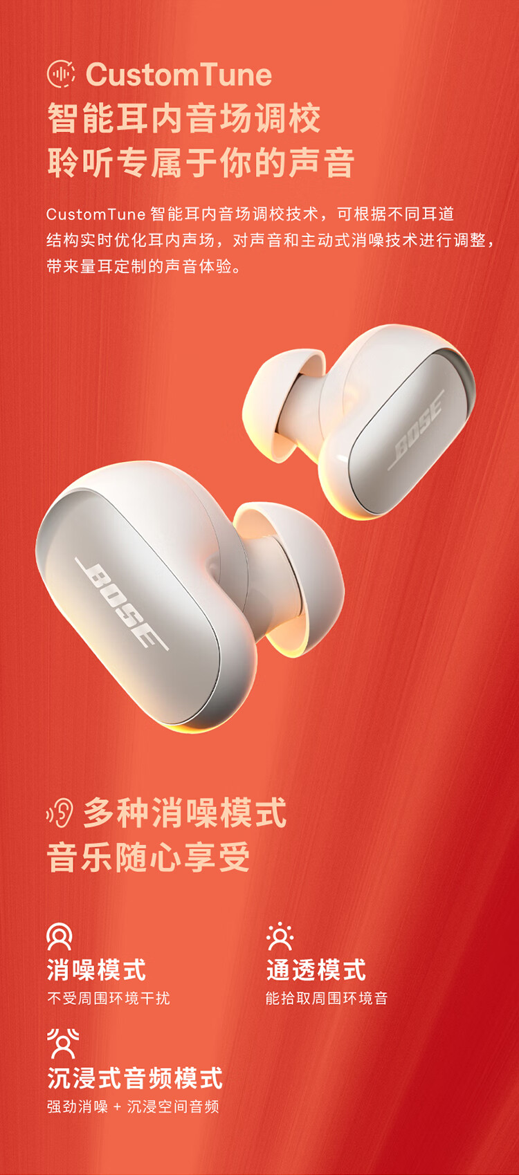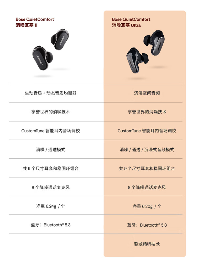 Bose QuietComfort 消噪耳塞Ultra-晨雾白 真无线蓝牙降噪耳机大鲨3代 智能耳内音场调校