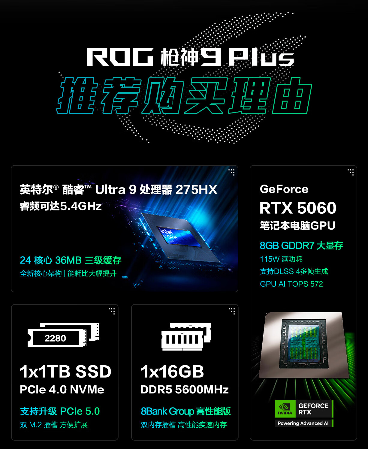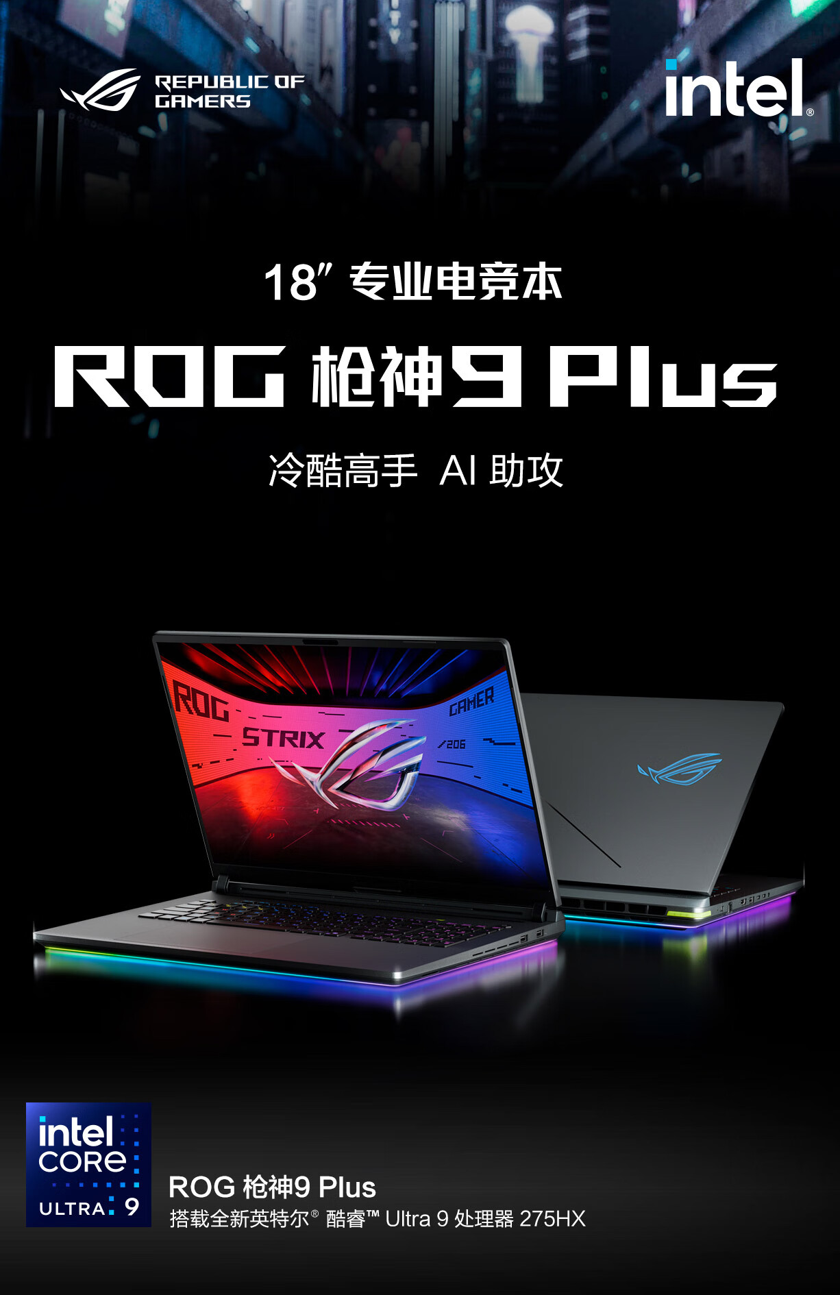 ROG枪神9 Plus 酷睿U9 18英寸 星云屏游戏本笔记本电脑(U9 275HX 16G 1T RTX5060 2.5K 240Hz)