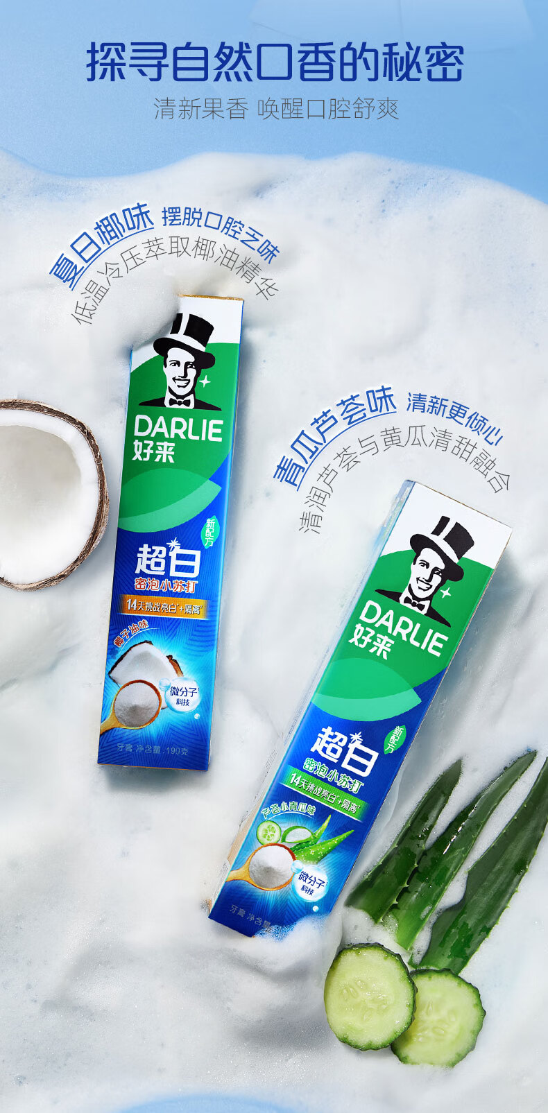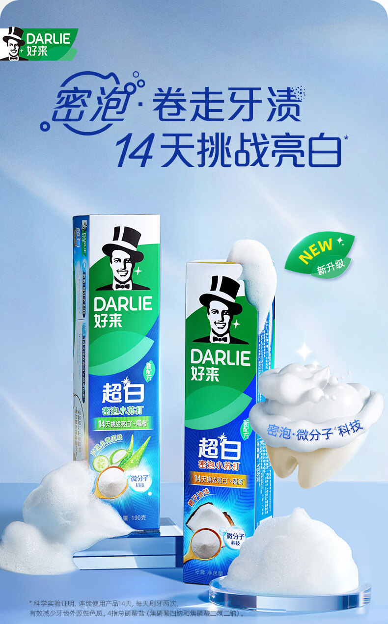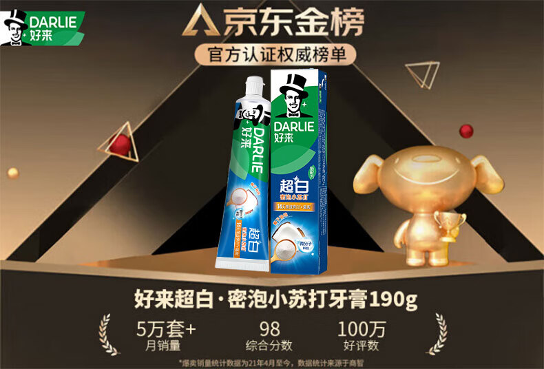 好来(DARLIE)(原黑人)超白密泡小苏打牙膏温和亮白去黄去牙渍烟渍120g新旧包装