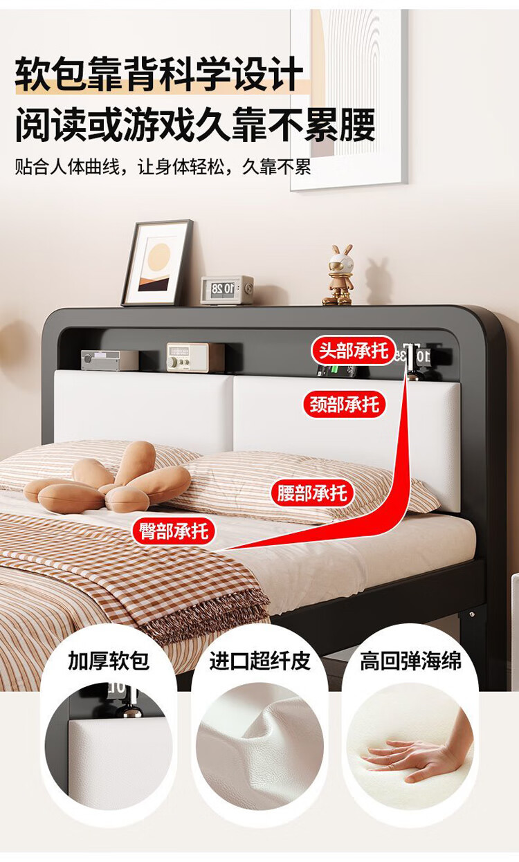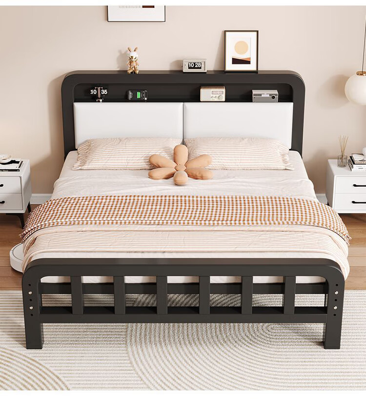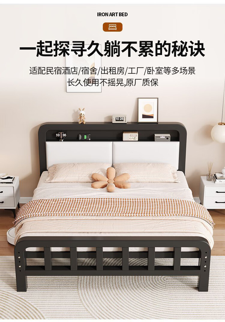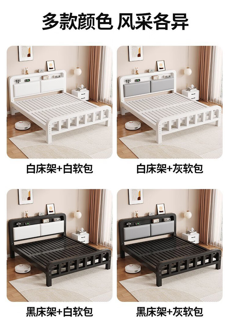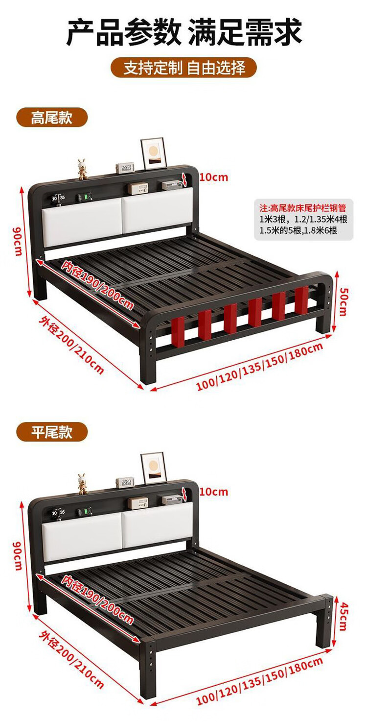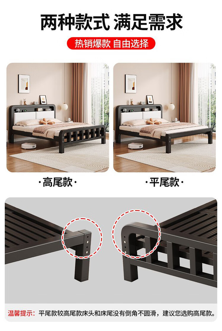 科虎床铁艺床双人床1.5x2米铁架床家用铁床架 白床架高尾+20cm床垫【白软包】 1.35*1.9/2.0【默认2.0】