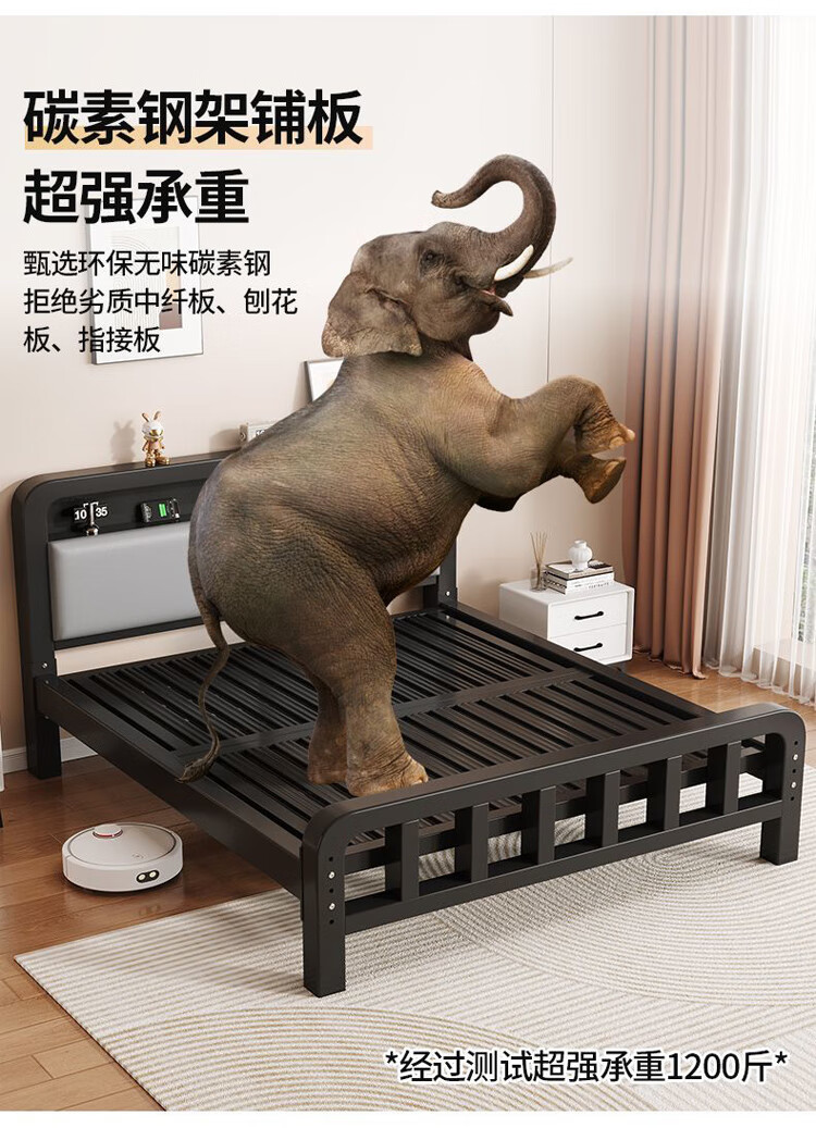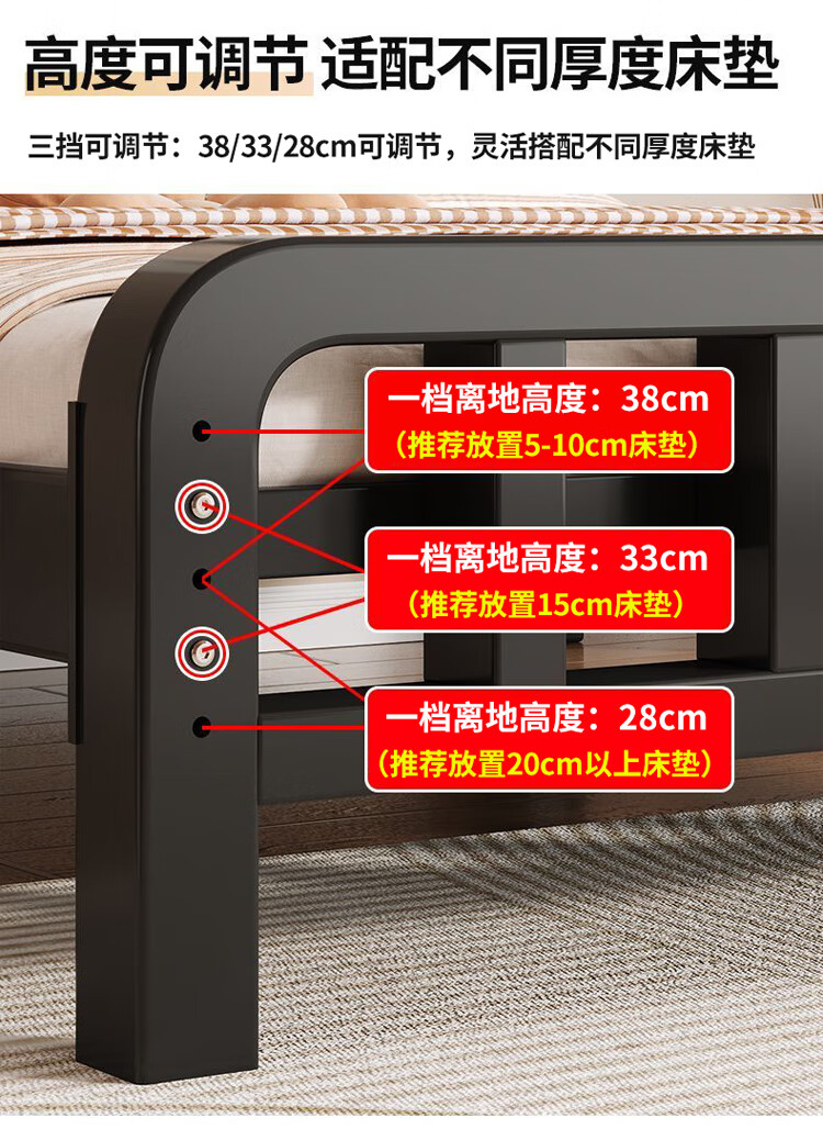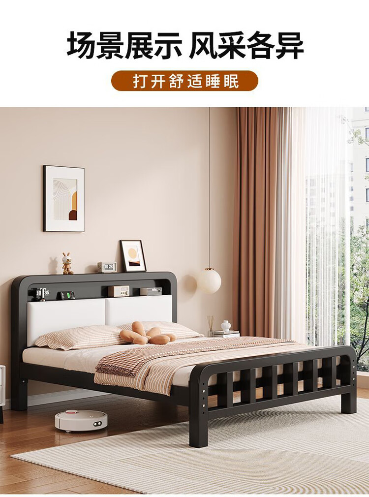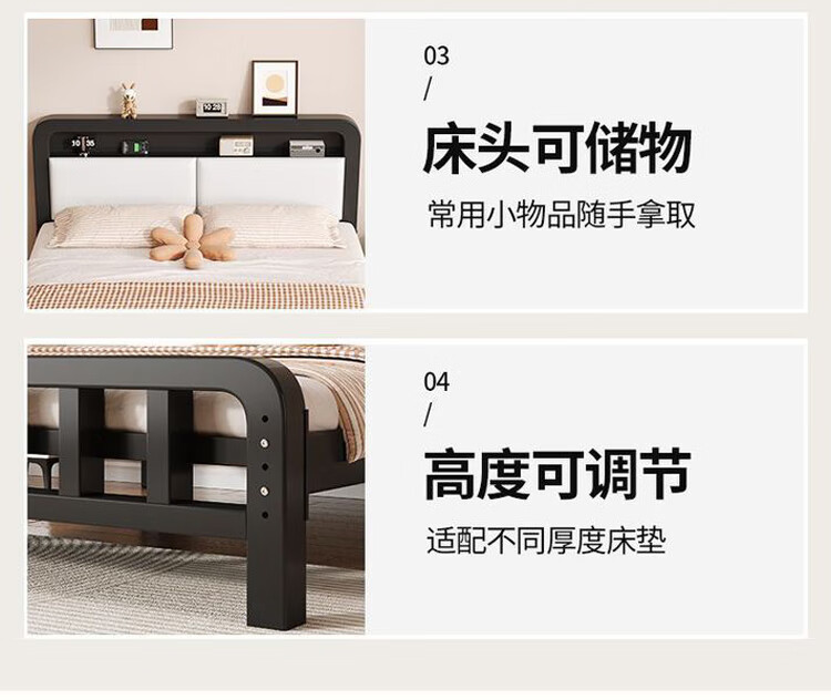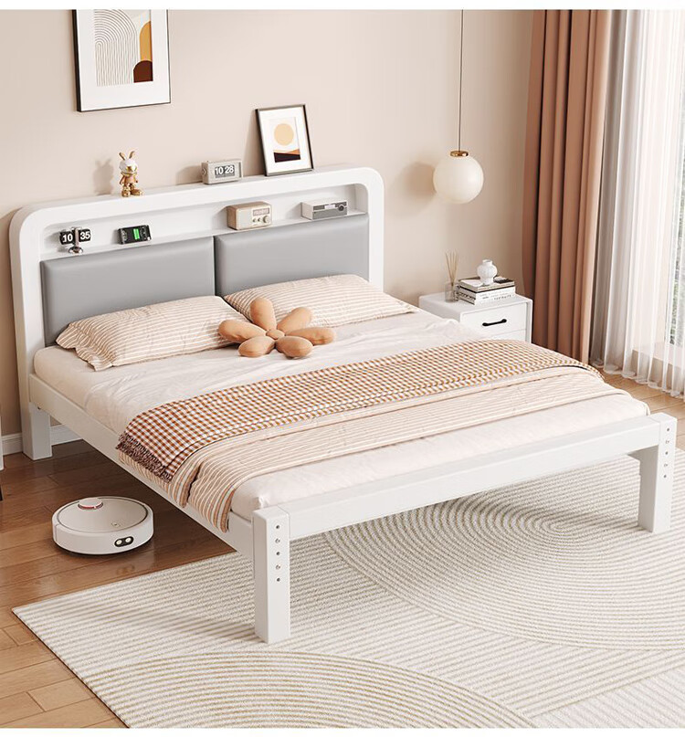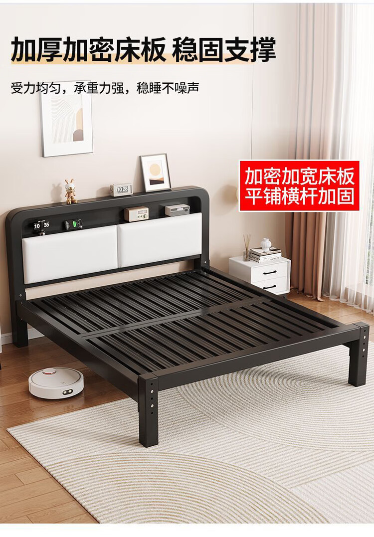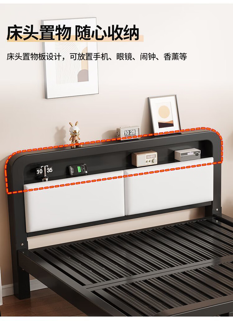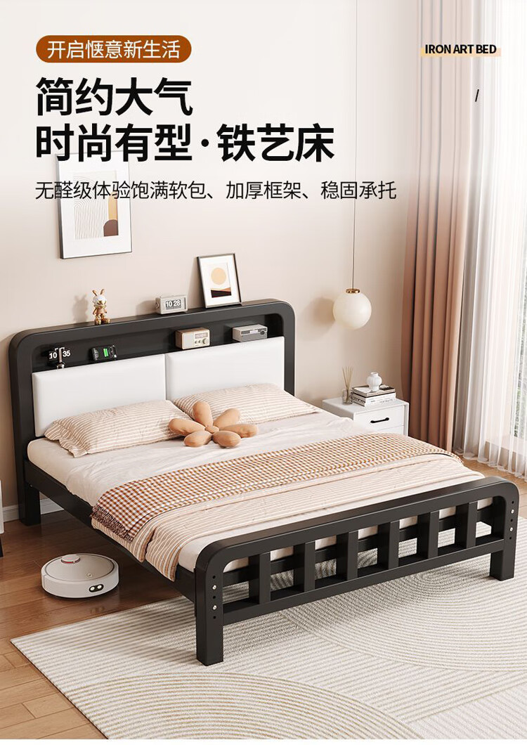 科虎床铁艺床双人床1.5x2米铁架床家用铁床架 白床架高尾+20cm床垫【白软包】 1.35*1.9/2.0【默认2.0】