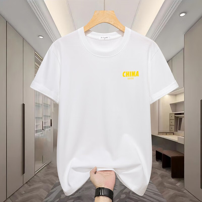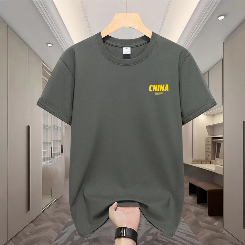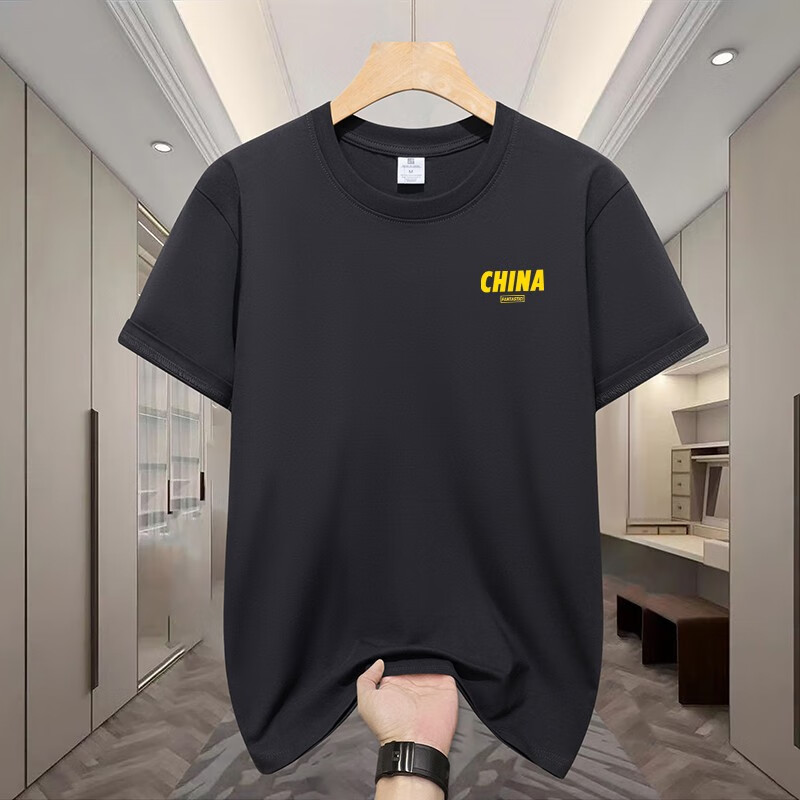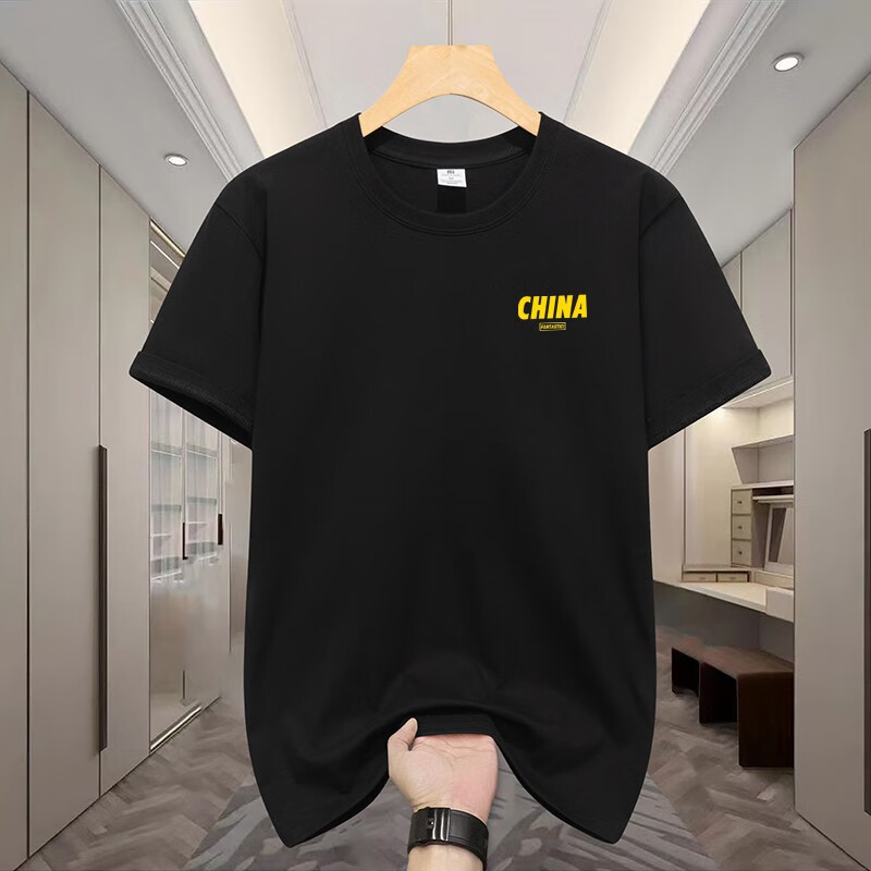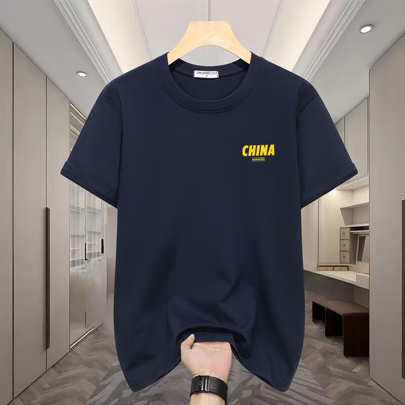 国庆国潮china印花大码纯棉短袖t恤男夏季宽松背心圆领半袖打底衫 藏青色 常规 8XL 250-270斤