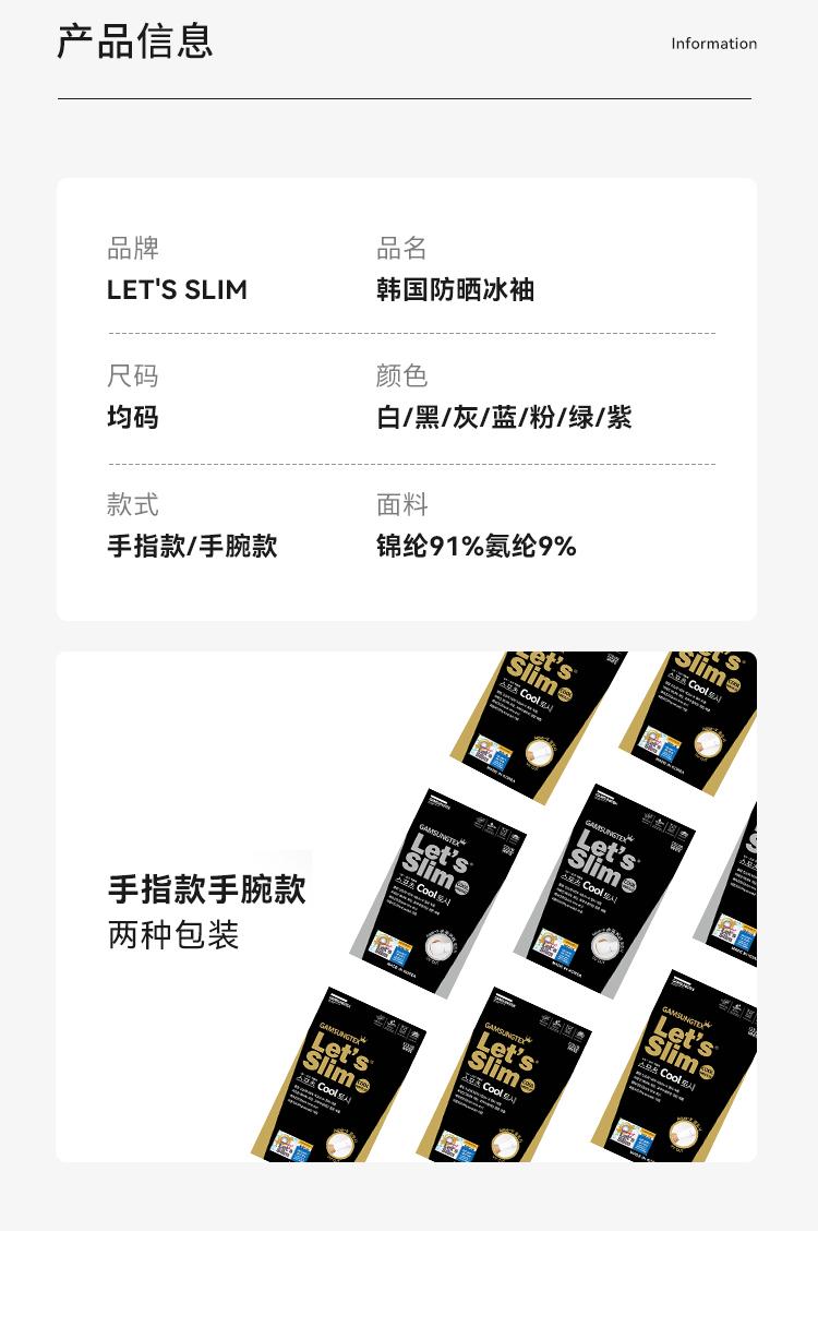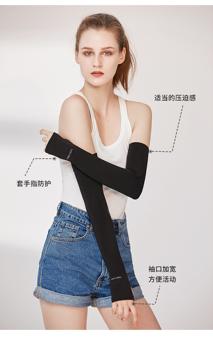 Let's slim韩国冰袖夏季冰丝防晒袖套腕男女防紫外线户外开车骑行护袖可折叠 手腕 黑色