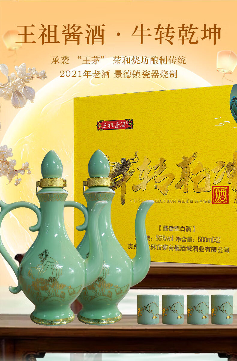 百年誉王祖酱酒 牛转乾坤 酱香白酒53度礼物纪念酒500ml 送礼 53度 500mL 2瓶 礼盒装