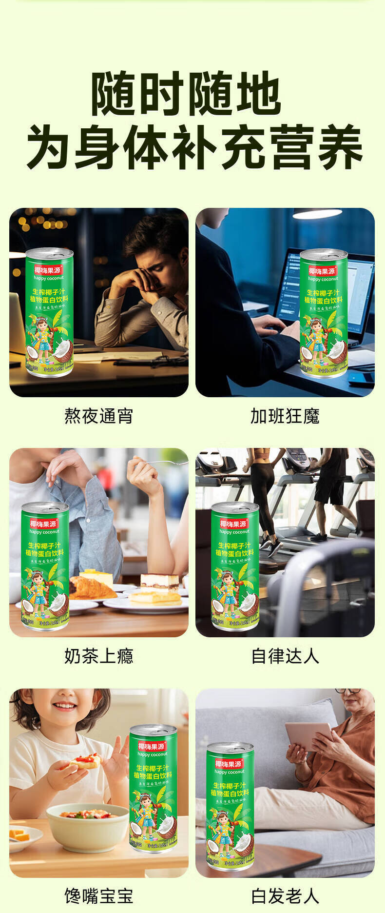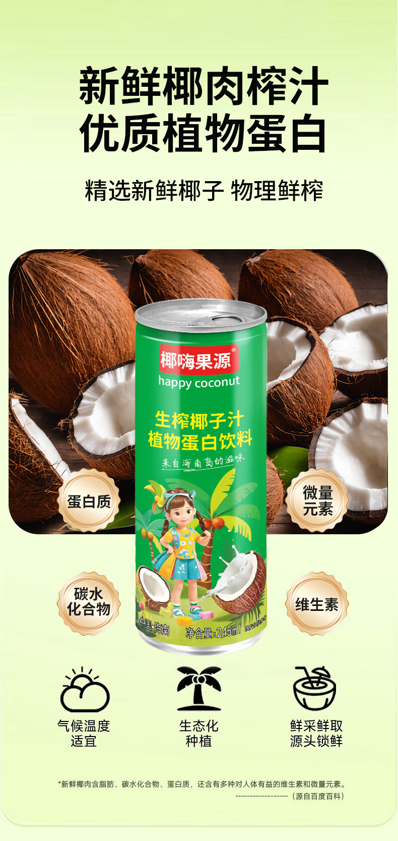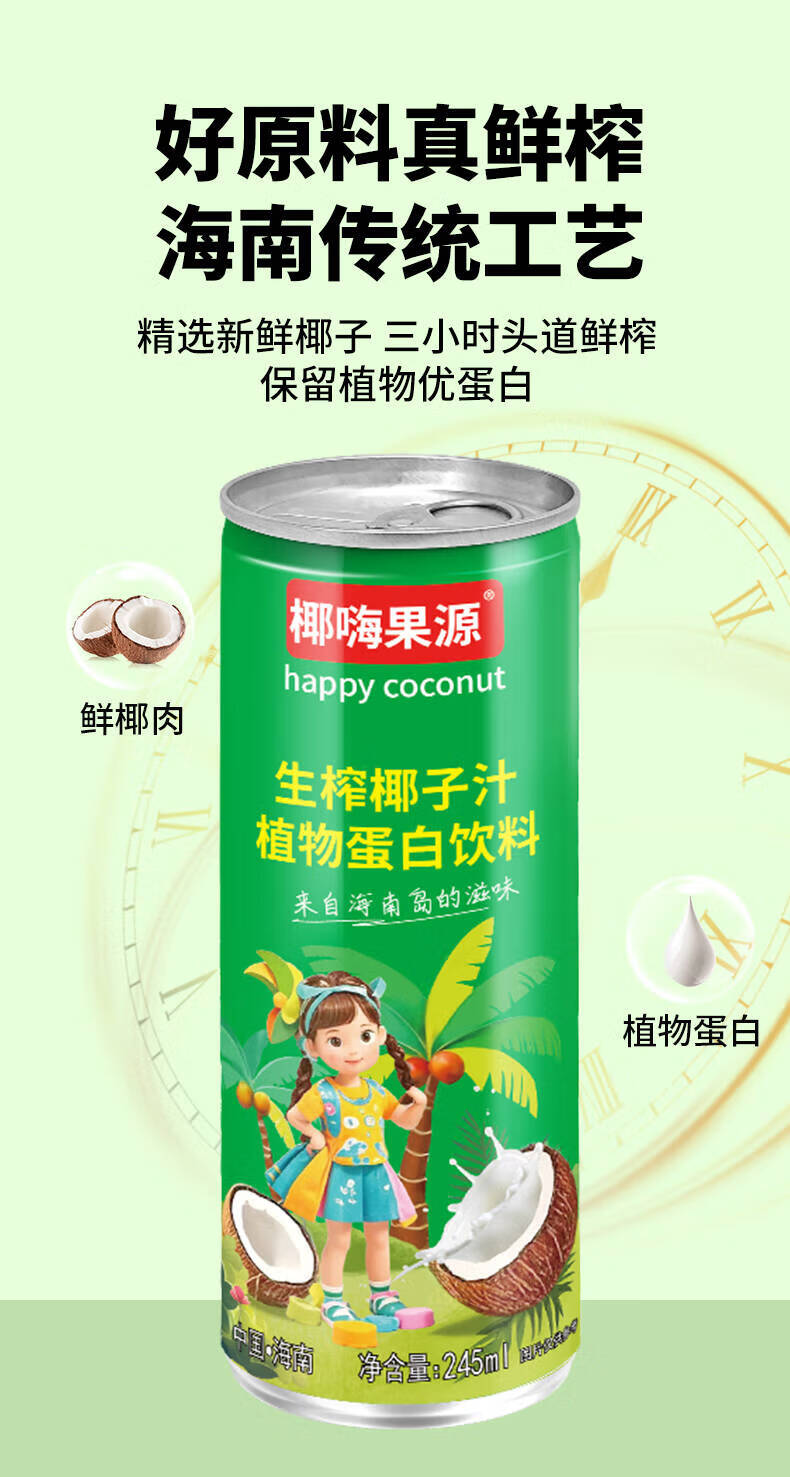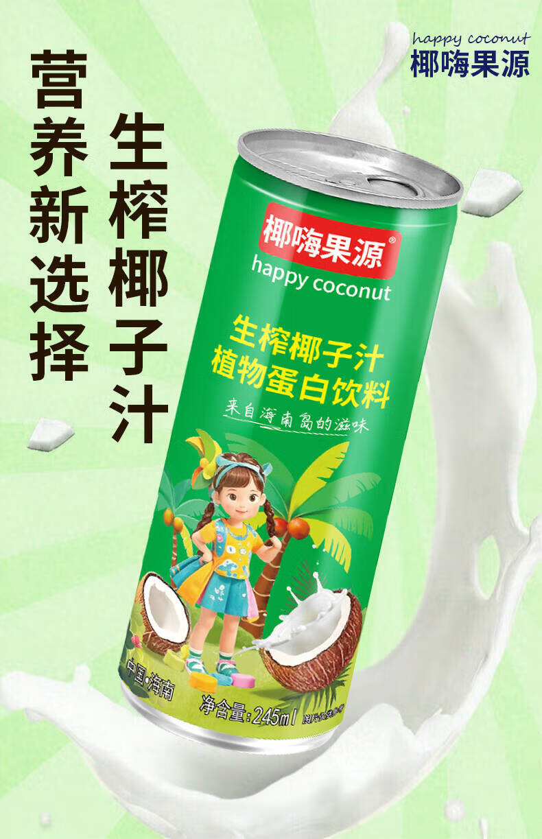 椰嗨果源生椰椰子汁植物蛋白饮料 果汁饮料245ml*24罐整箱装 中秋送礼 【家庭囤货】椰子汁1000ml