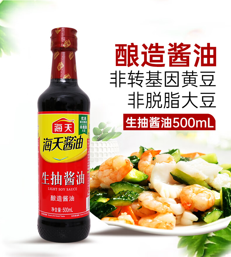 海天生抽酱油500ml 凉拌提鲜炒菜烹饪点蘸厨房调味料家用酿造酱油 生抽酱油500ml*1瓶