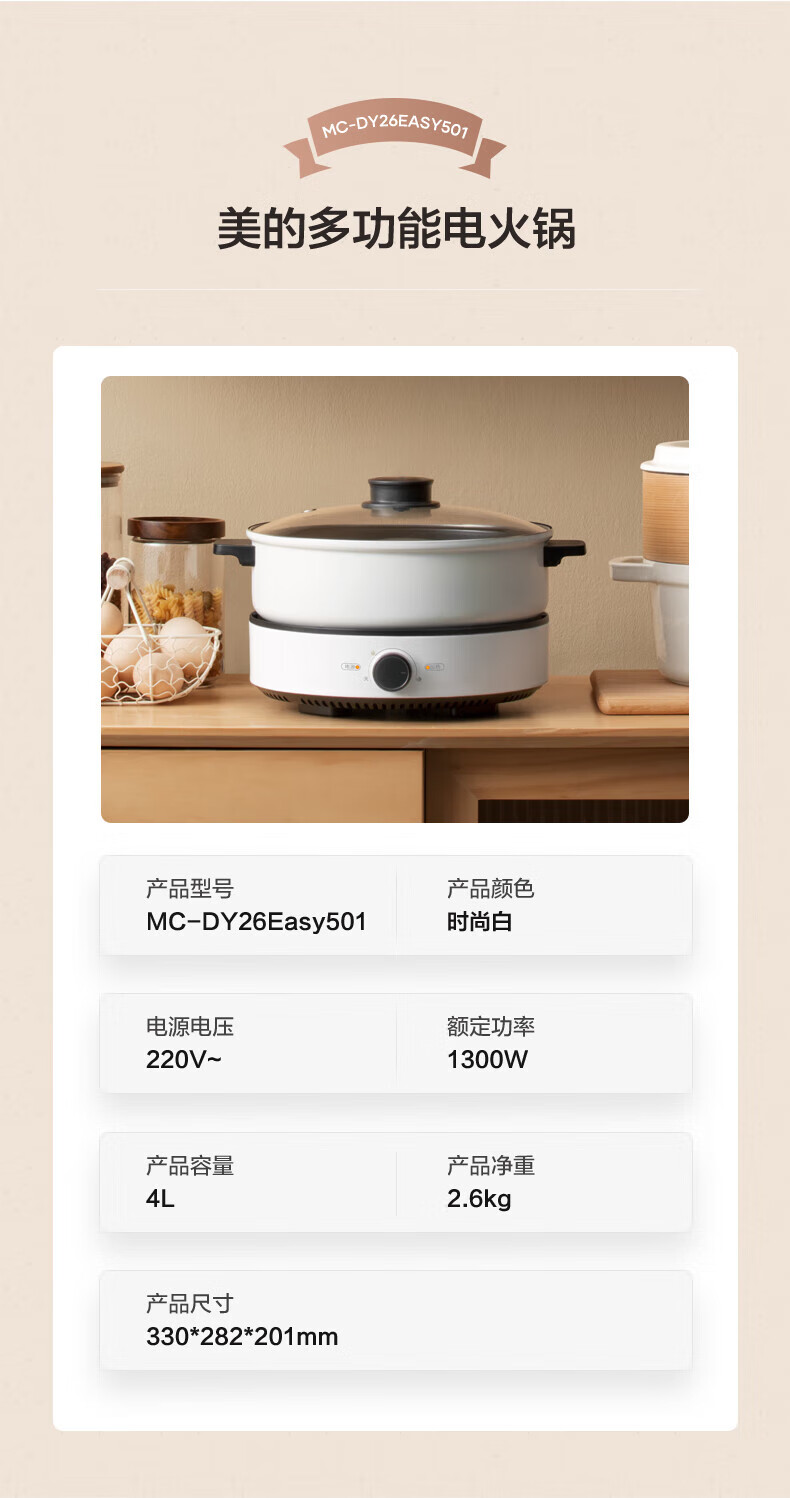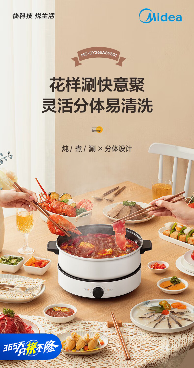 美的(Midea)电火锅 电炒锅4L家用多用途锅 火锅专用锅 宿舍 分体式火锅 电煮锅 电热锅 政府补贴 DY26Easy501