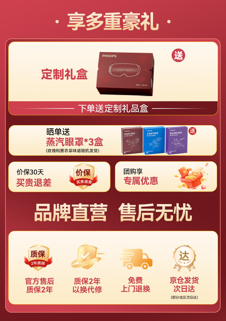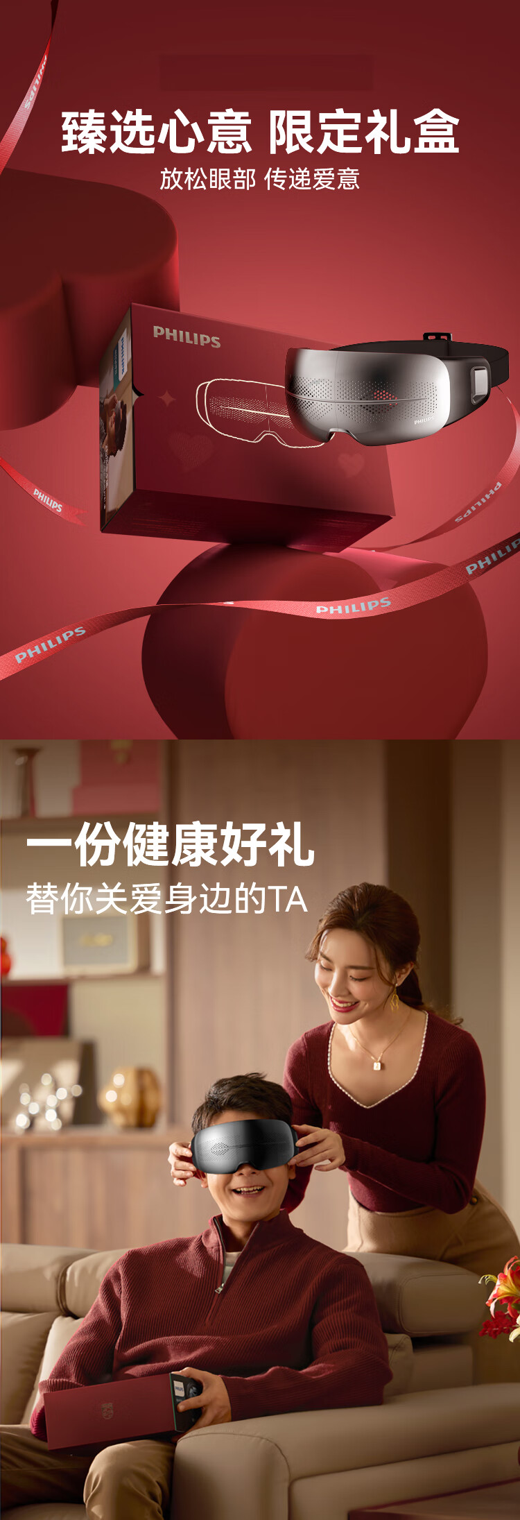 飞利浦(PHILIPS)眼部按摩仪【静音午睡宝】按摩眼罩眼睛按摩器热敷护眼仪疲劳舒缓男女友父母中秋节生日礼物3104E