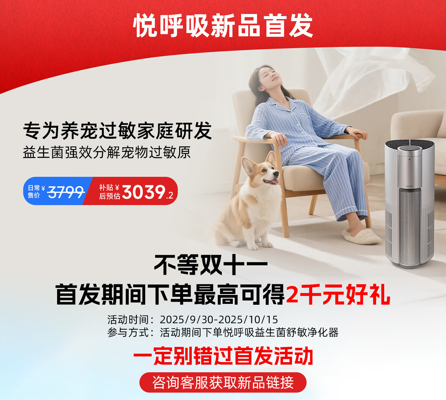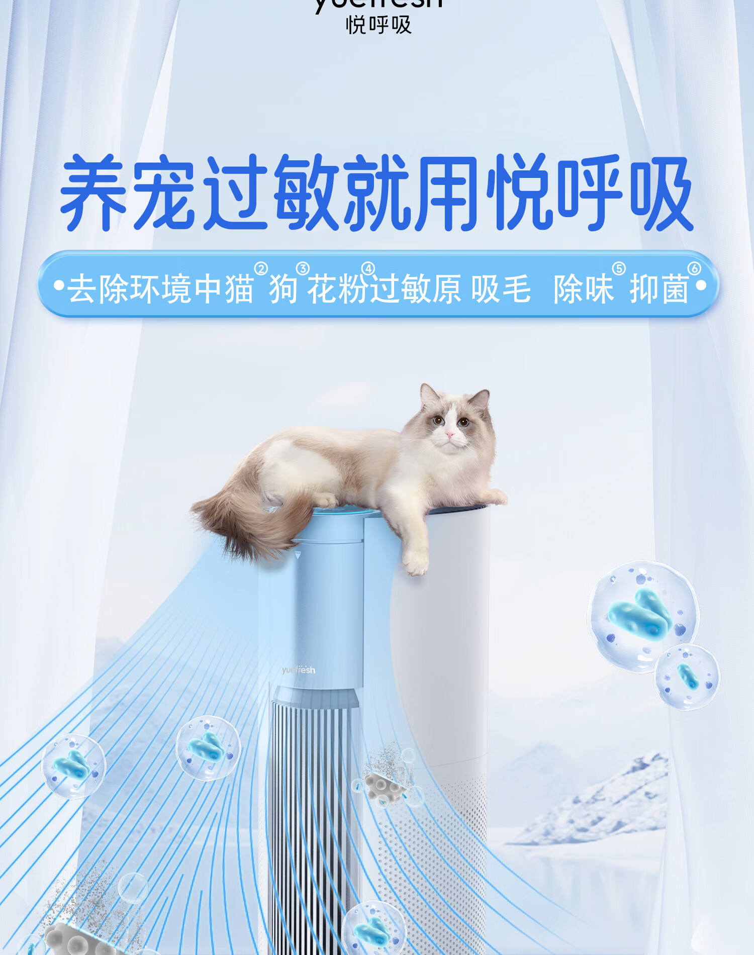 悦呼吸yuefresh空气净化器宠物过敏微生物全净器家用除猫毛过敏原除狗毛过敏原甲醛除异味 米白色(配养猫过敏专用菌盒)