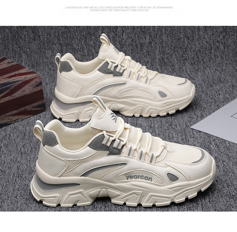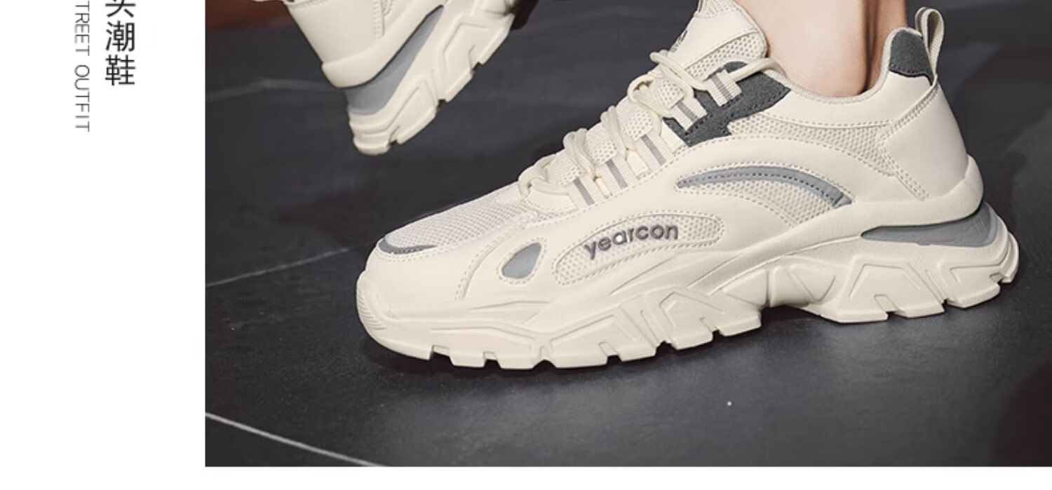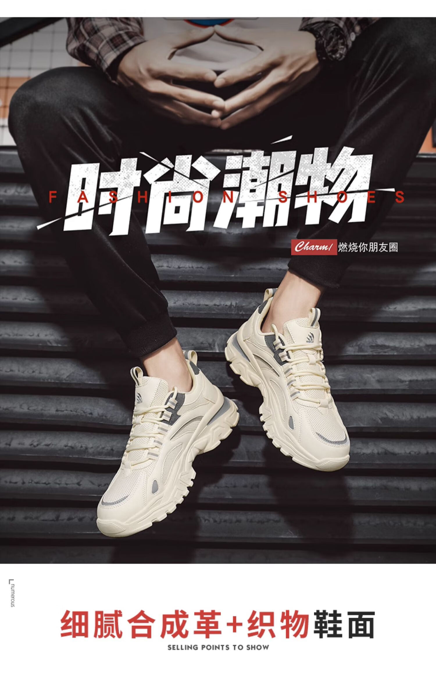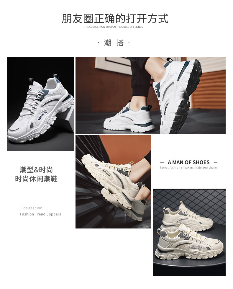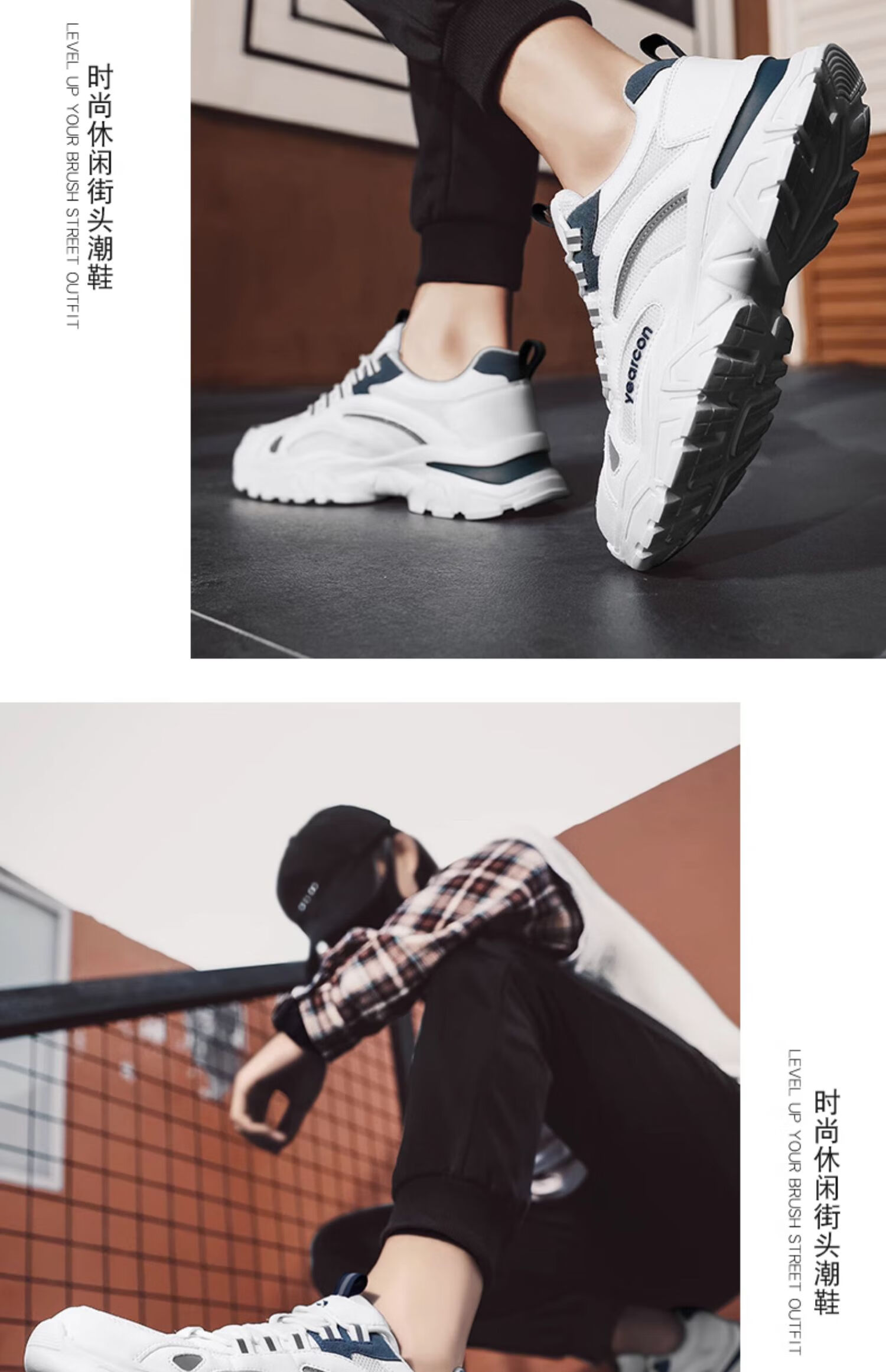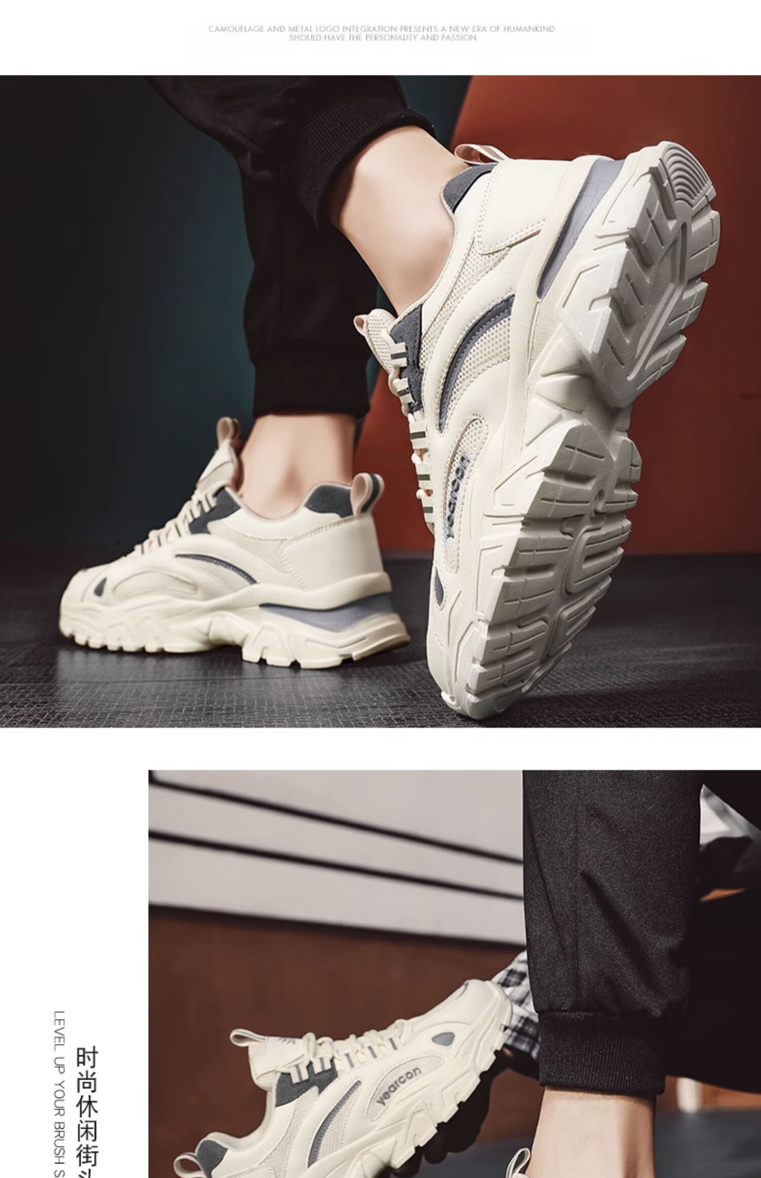 意尔康秋冬男鞋休闲鞋网面新款厚底增高百搭运动青年学生鞋子 玛瑙黑 43