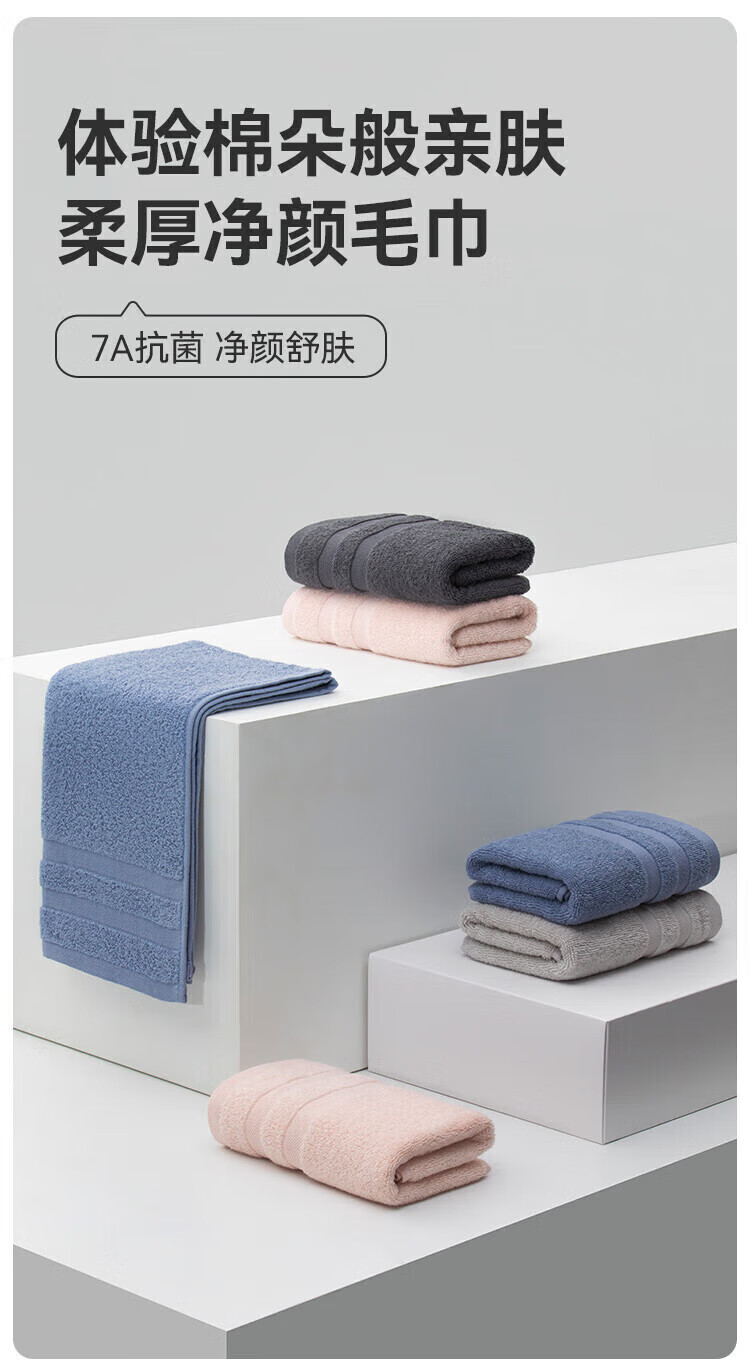 三利毛巾 7A纯棉抗菌毛巾加厚柔软顺滑吸水速干成人男女家用擦脸巾 深灰+浅灰 2条