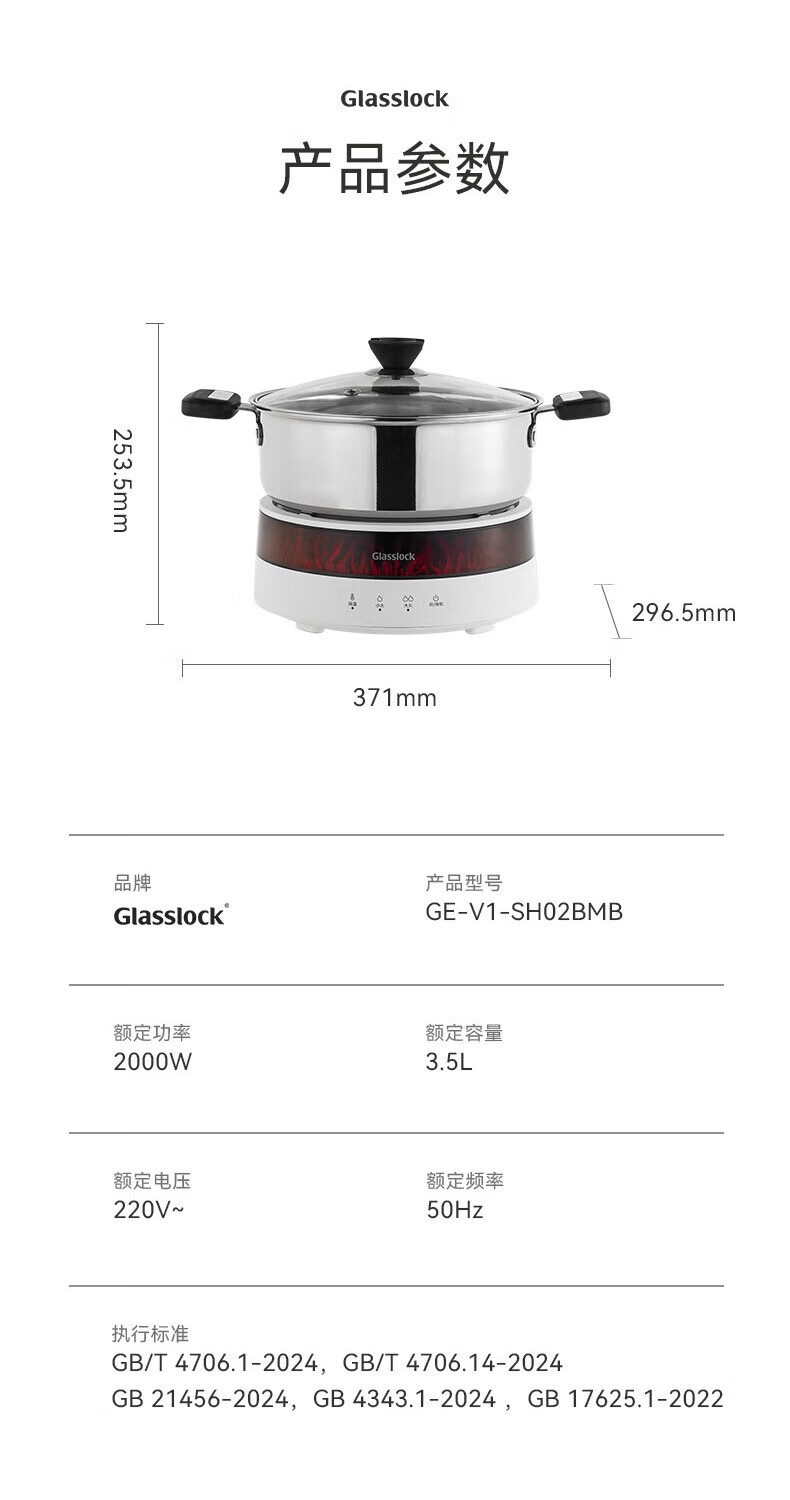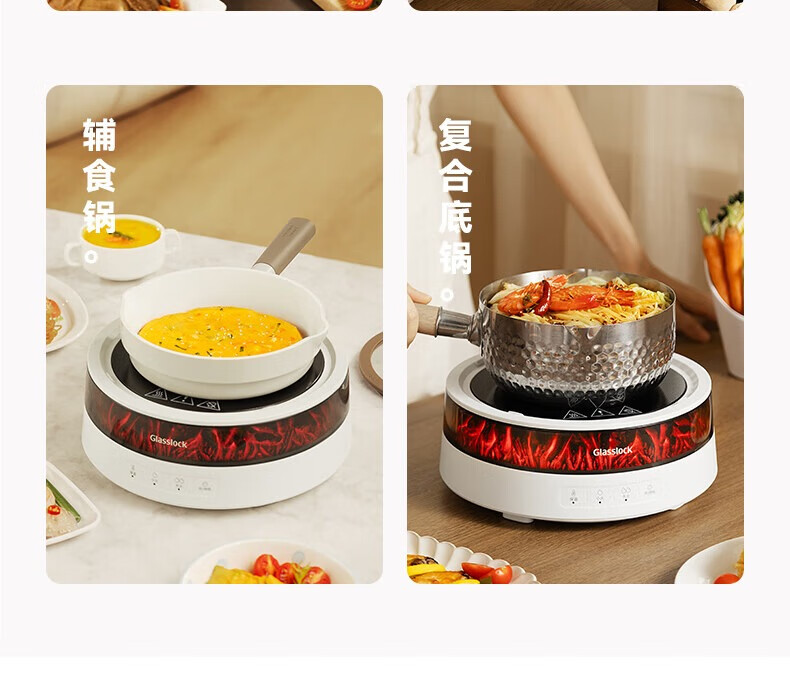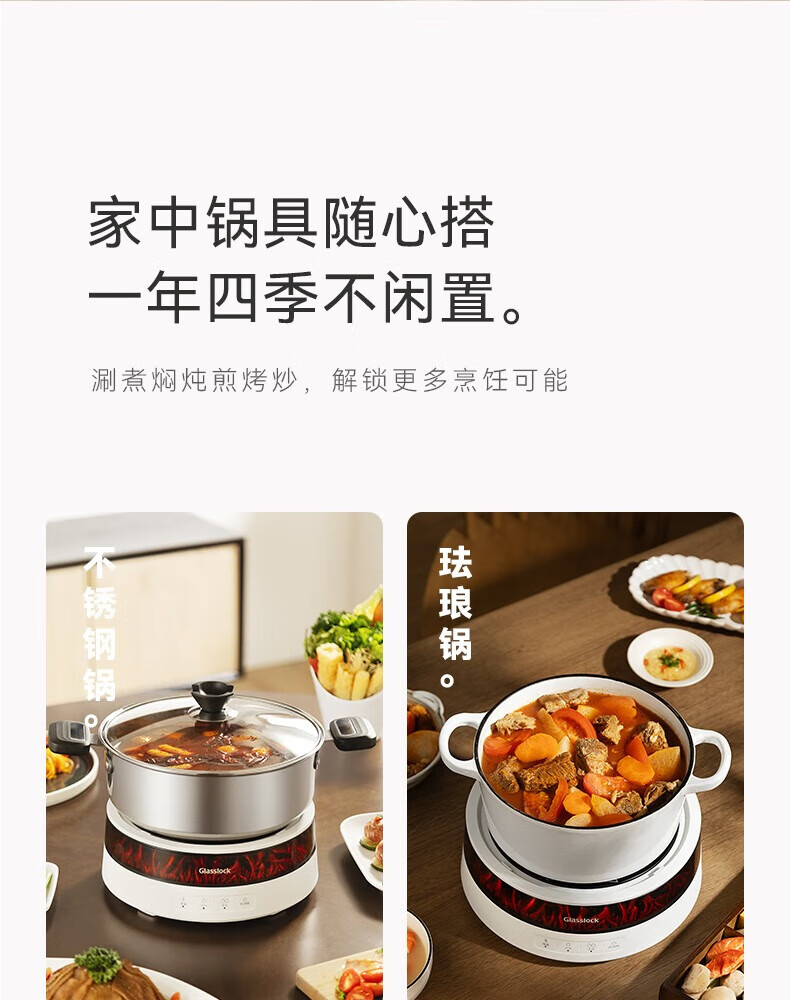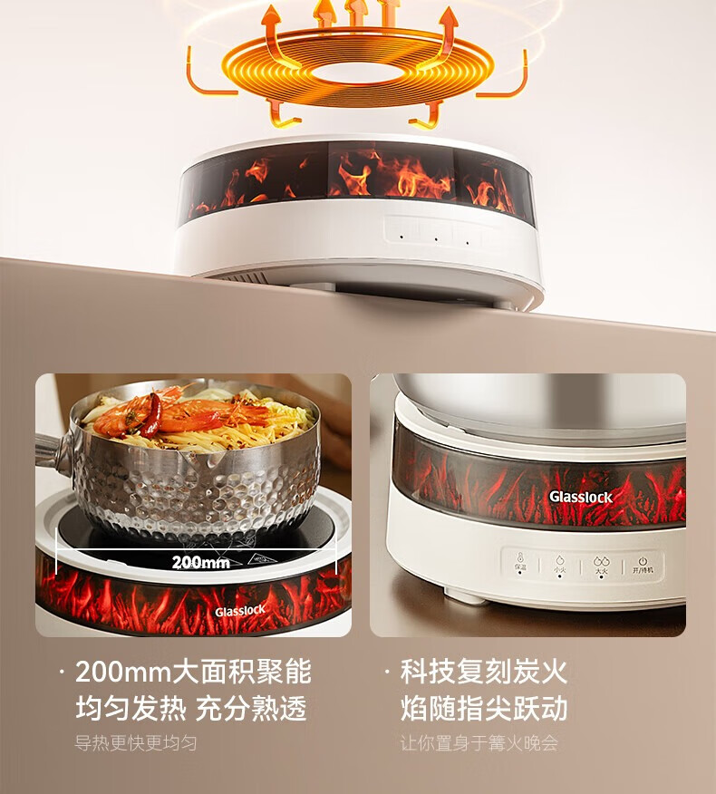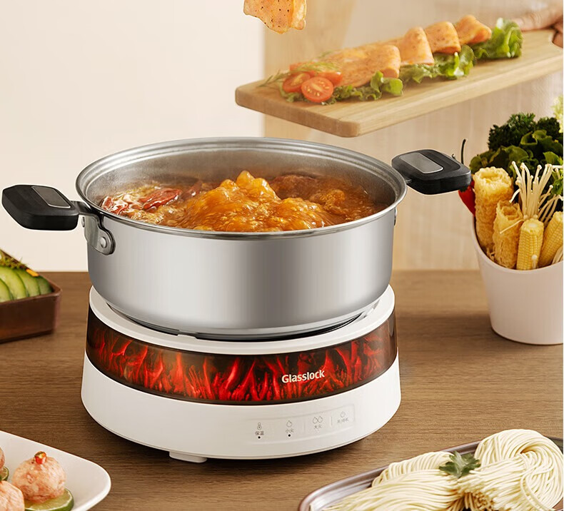 GLASSLOCK盖朗围炉煮茶电陶炉器具套装电火锅不锈钢家用多功能电磁炉大功率办公室全玻璃养生壶仿真火焰新款 1300W围炉煮茶套装