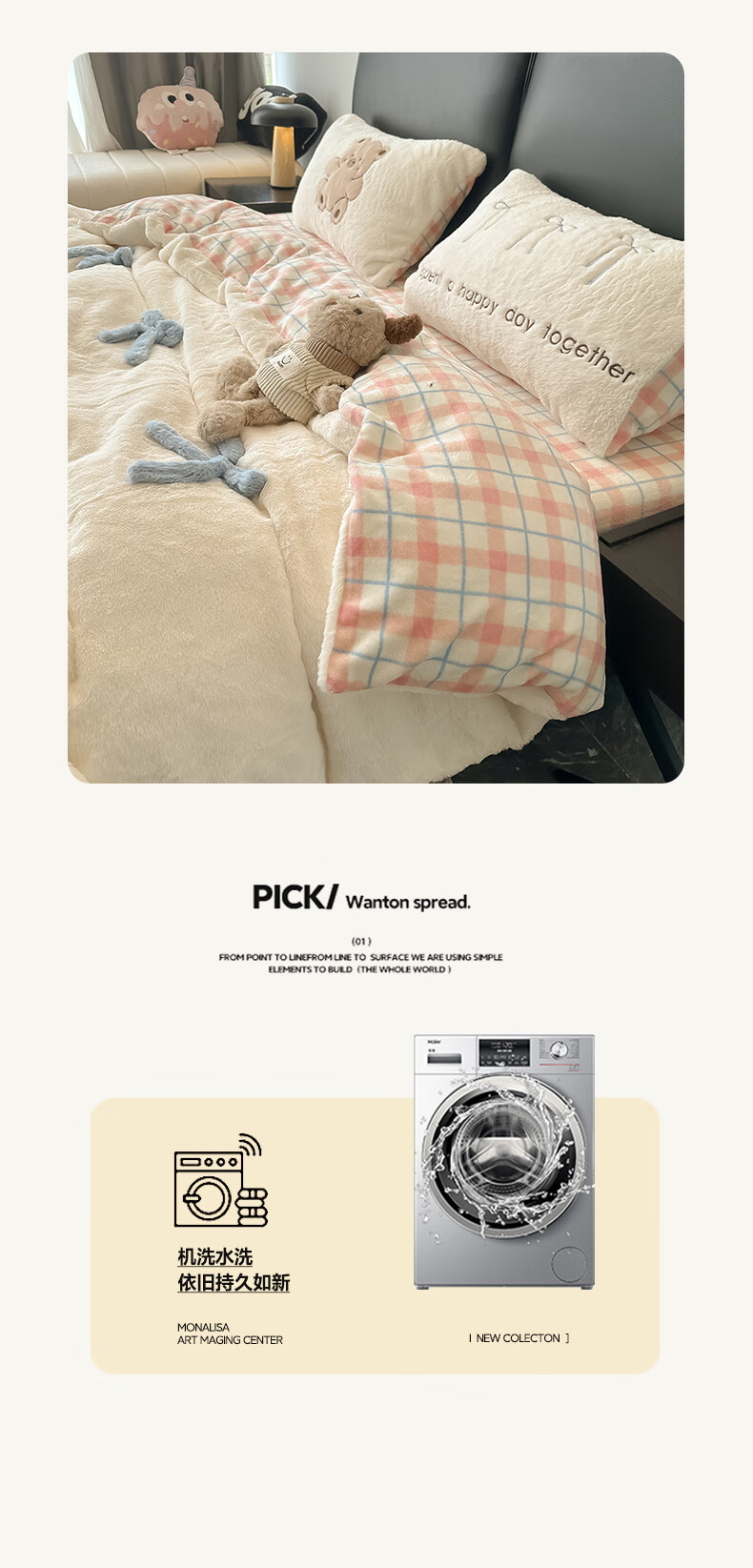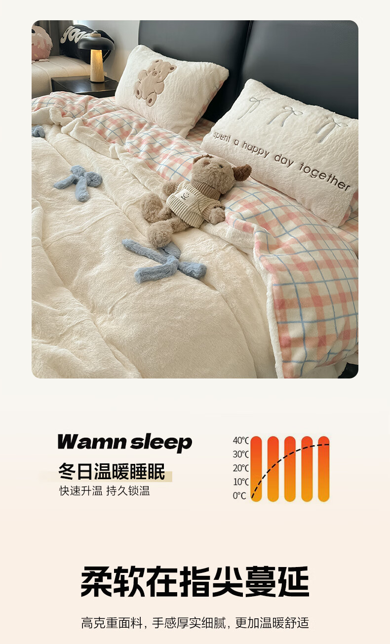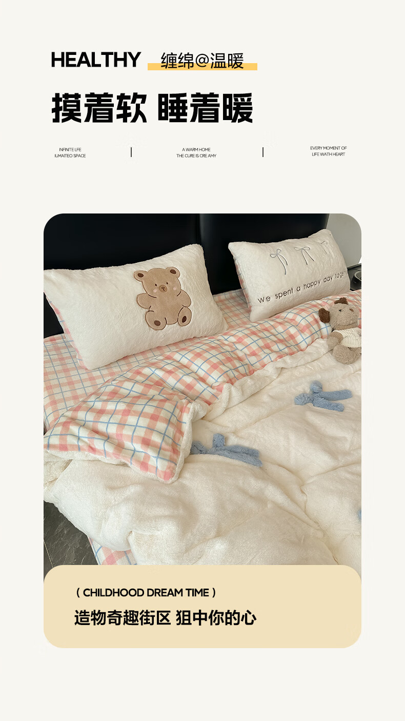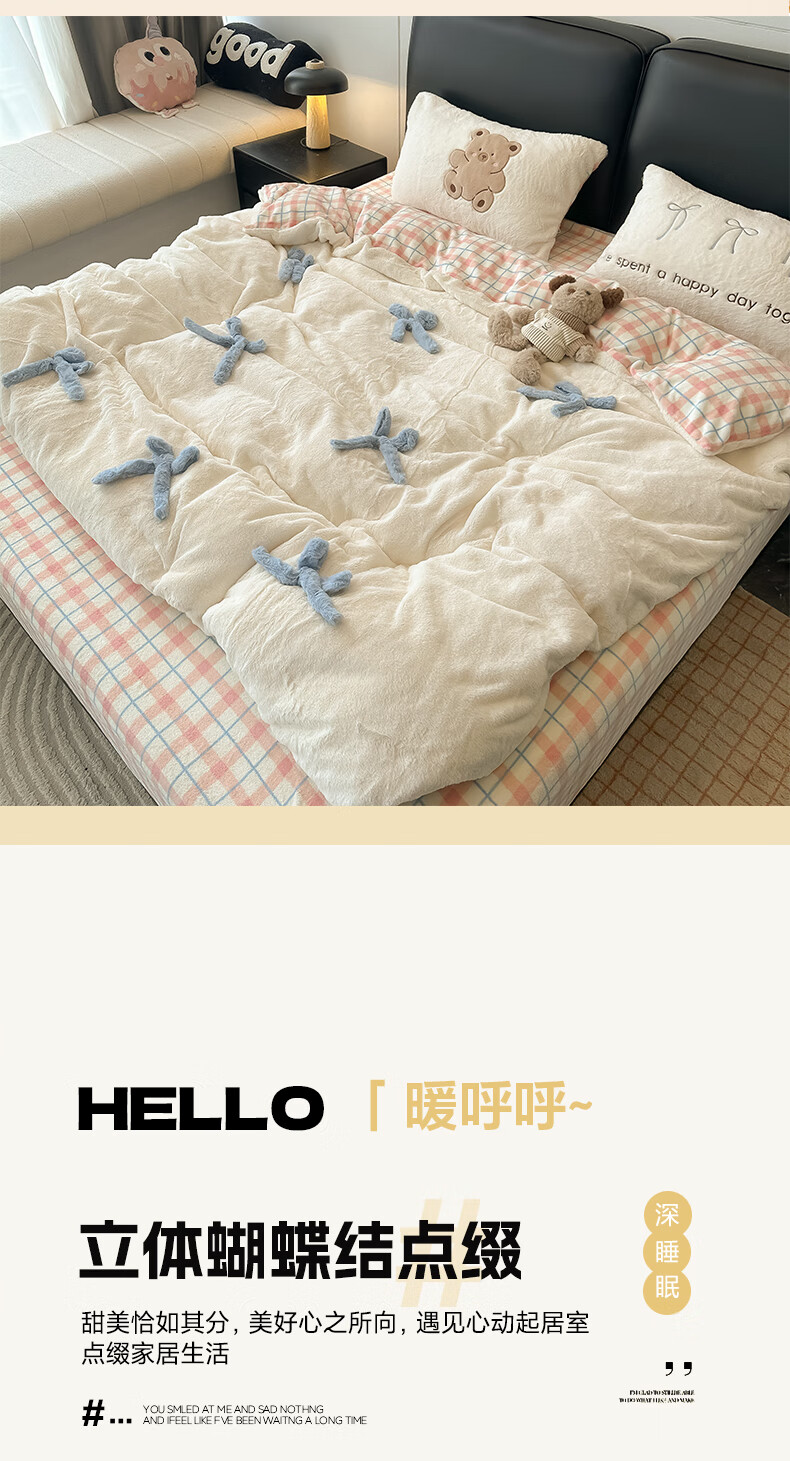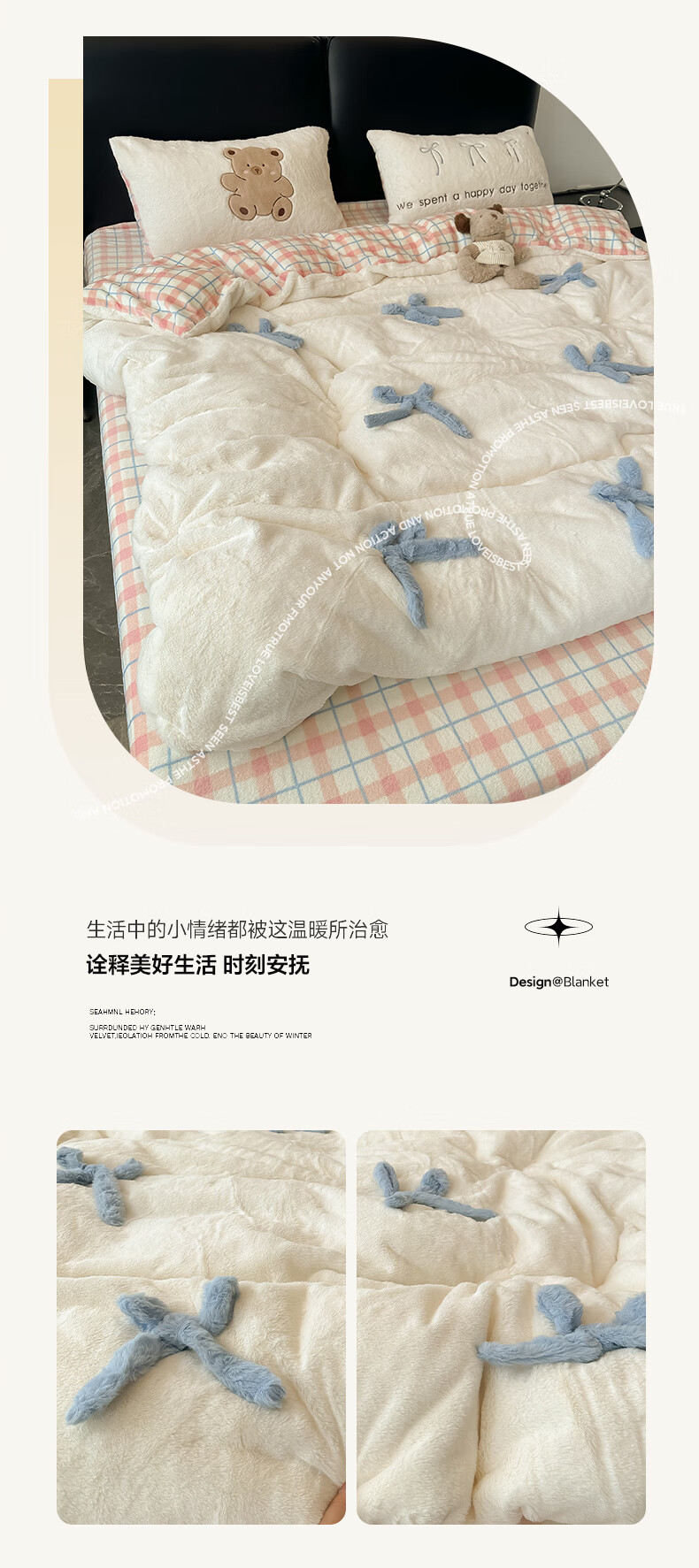 苏萱ins立体蝴蝶结牛奶绒床上四件套冬季加厚珊瑚法兰绒少女被套床单4 蝴蝶结-芝士小熊 1.8m 床单款 四件套-被套200x230cm
