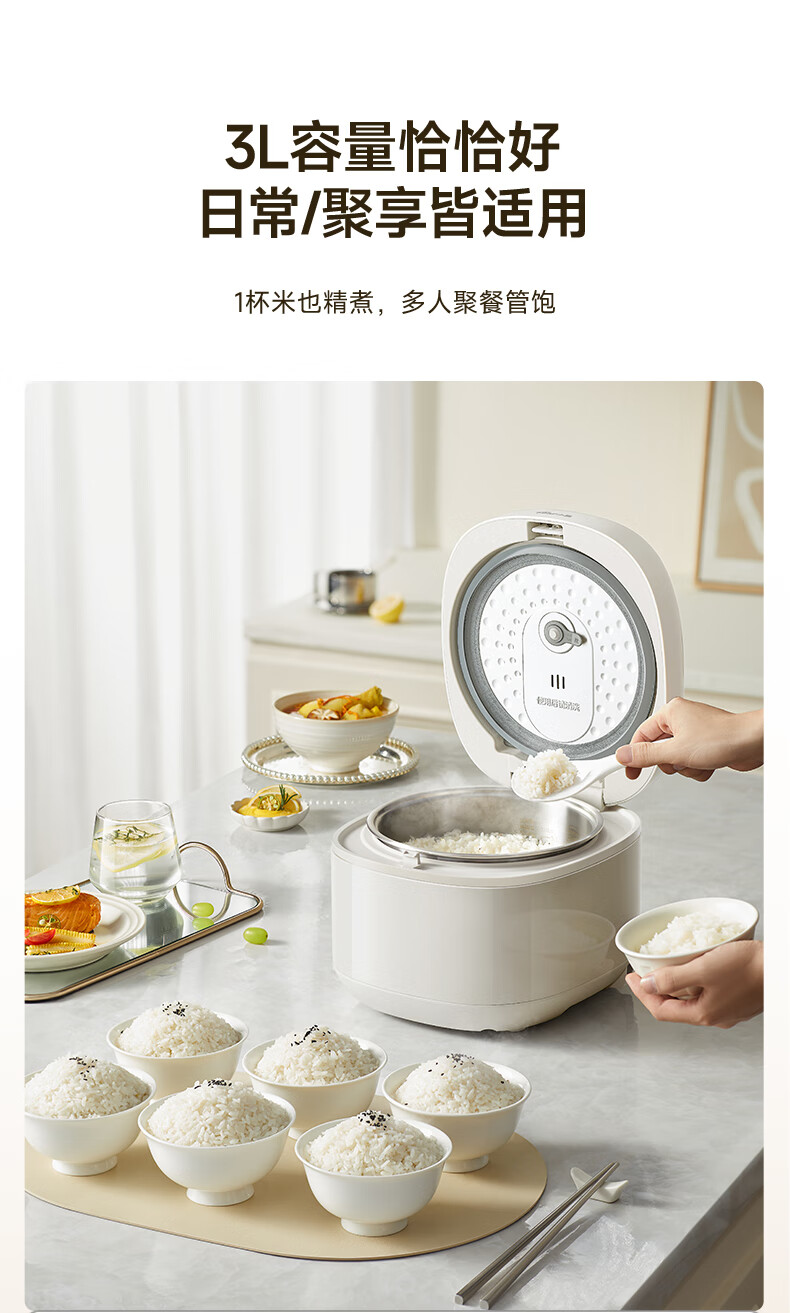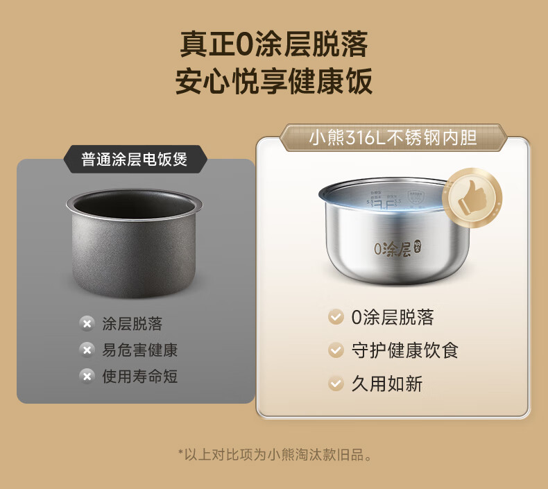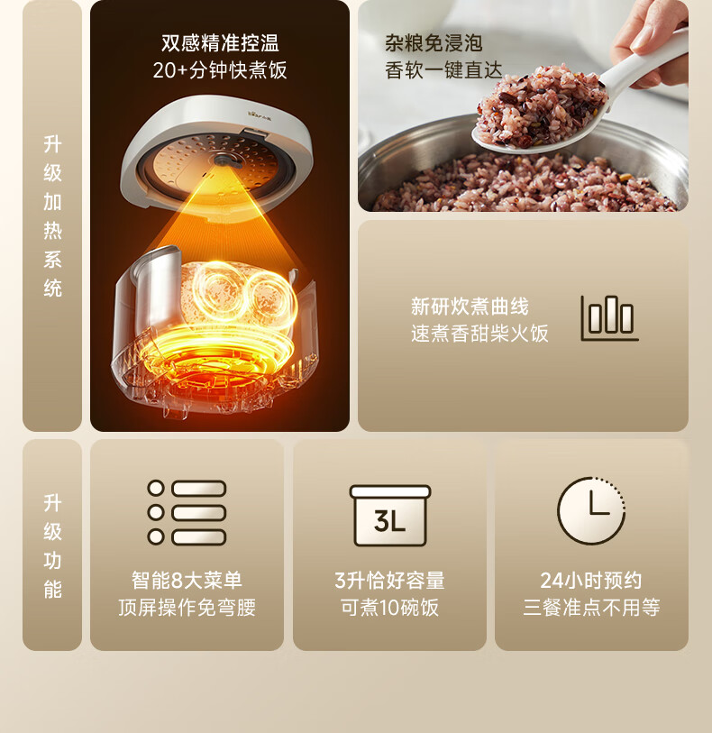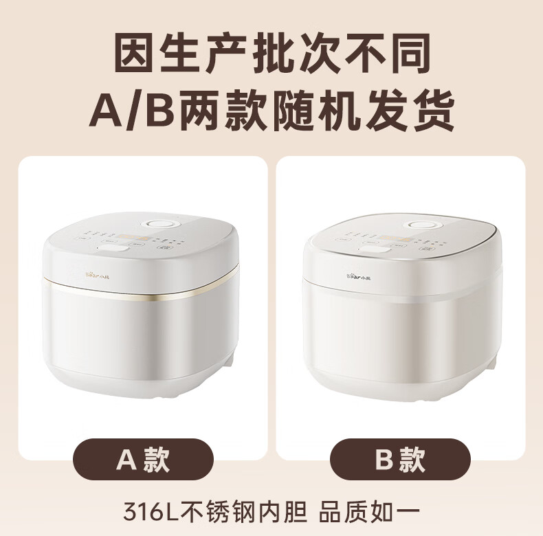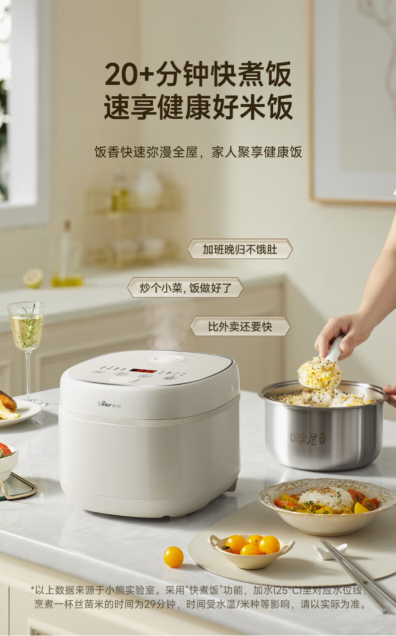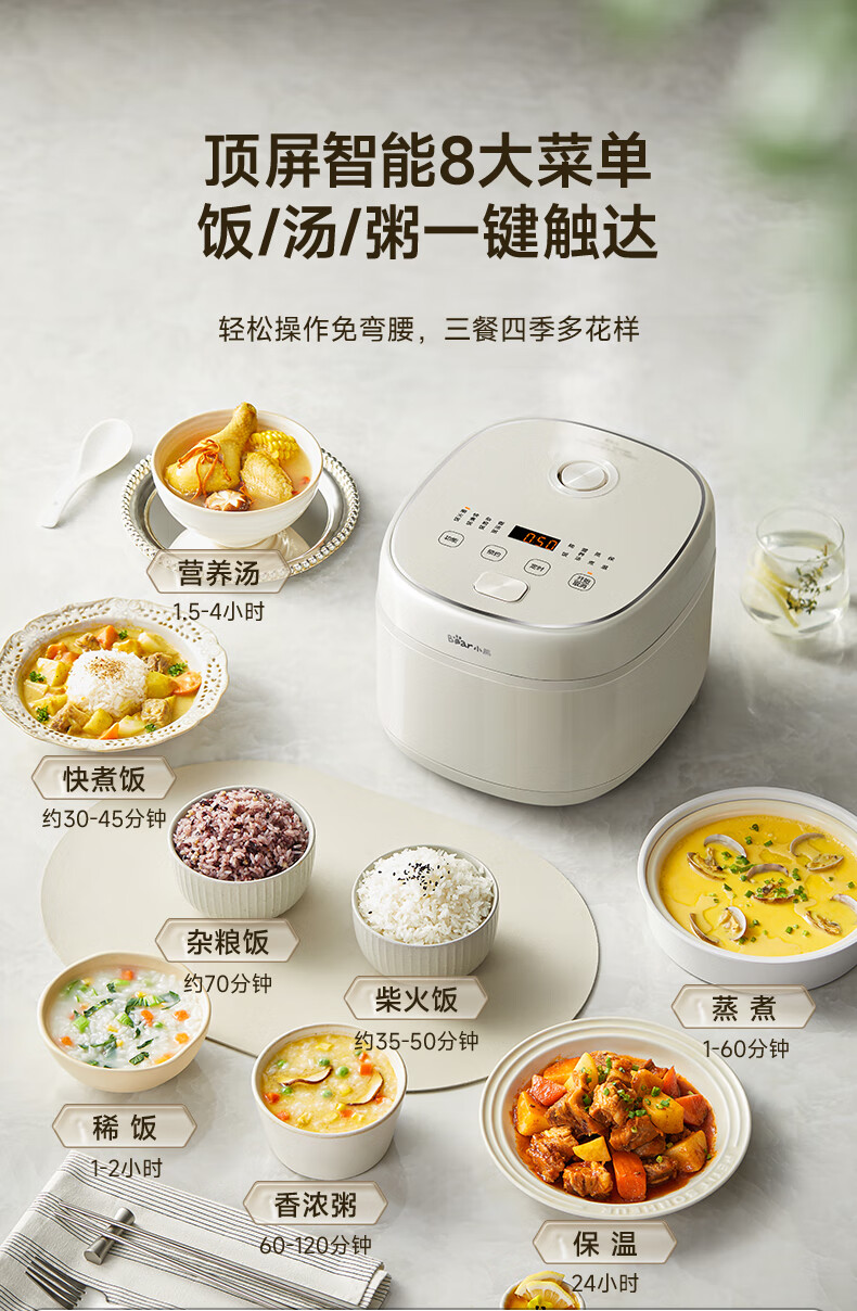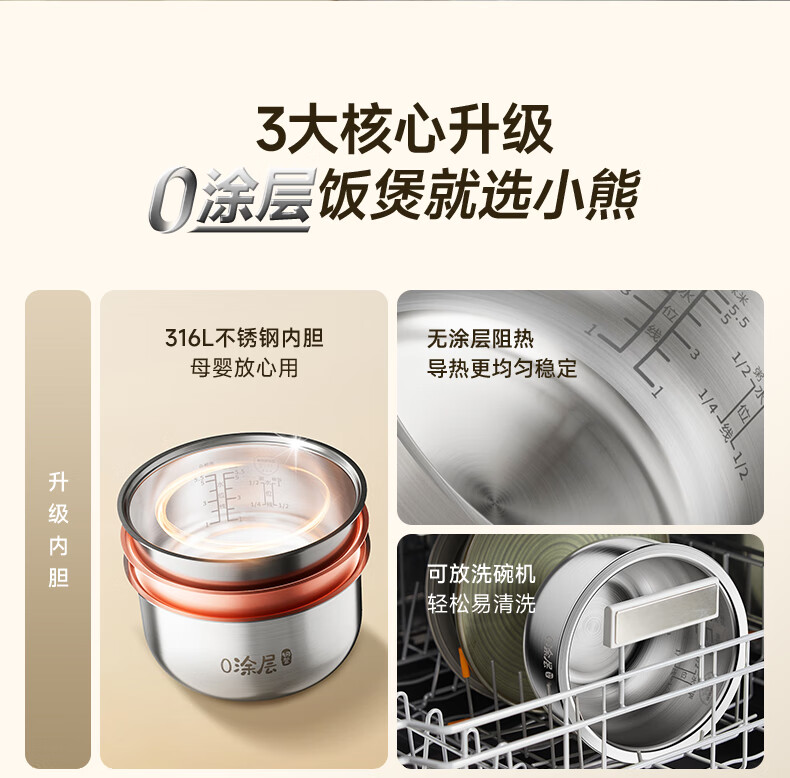 小熊(Bear)电饭煲0涂层 4-5人不锈钢内胆电饭锅 家用智能微压柴火饭杂粮饭多功能3L米黄 DFB-E30V5