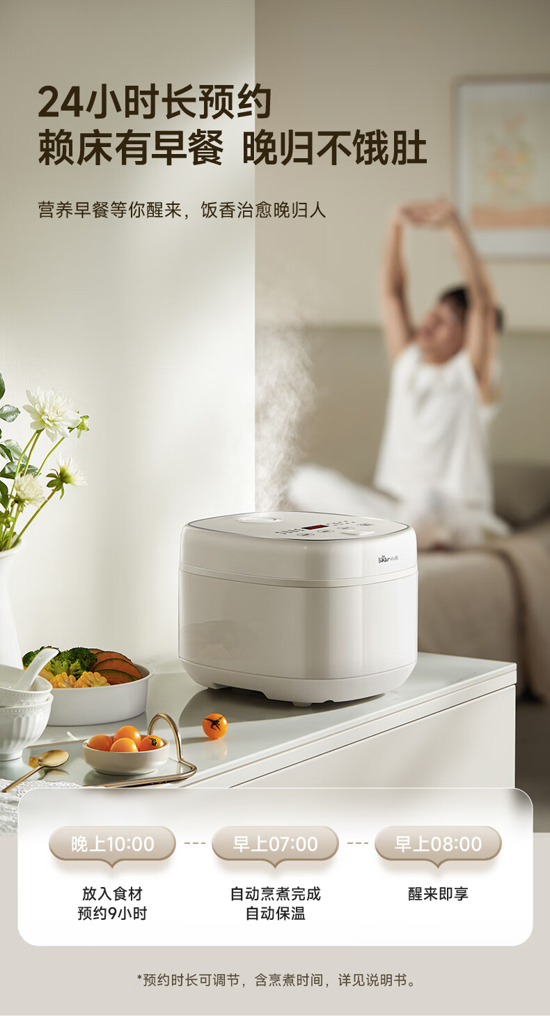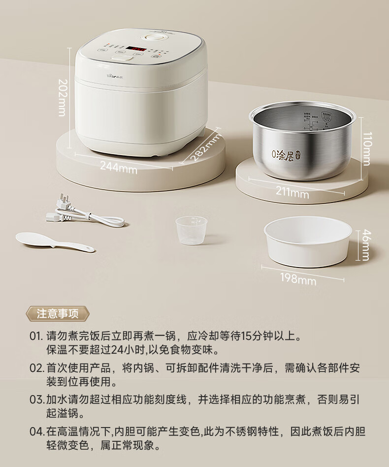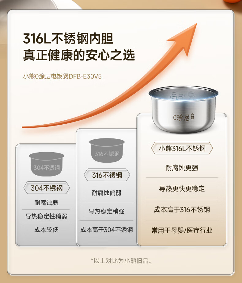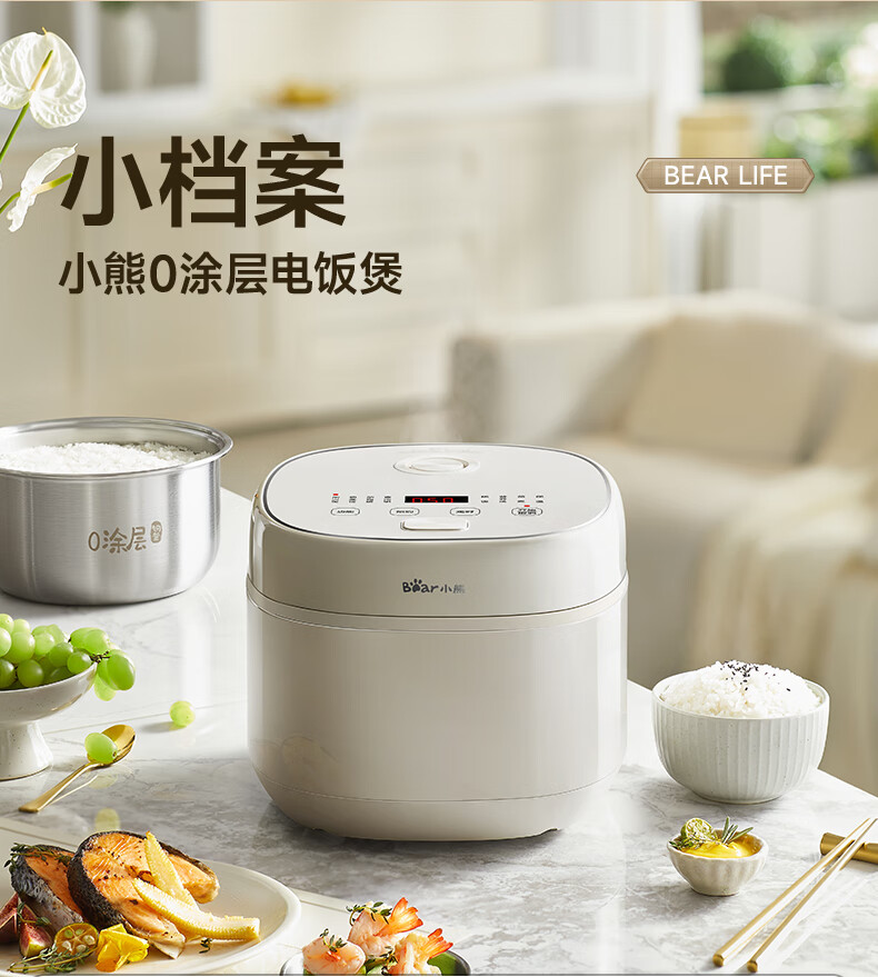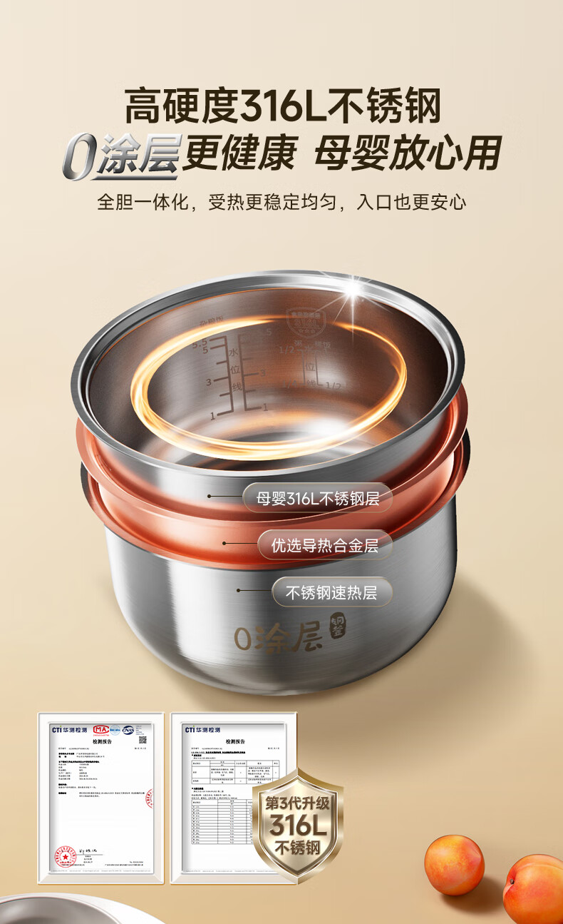 小熊(Bear)电饭煲0涂层 4-5人不锈钢内胆电饭锅 家用智能微压柴火饭杂粮饭多功能3L米黄 DFB-E30V5