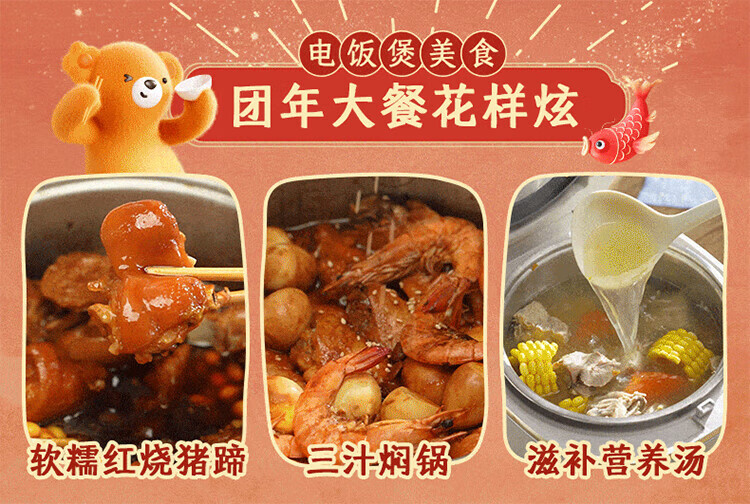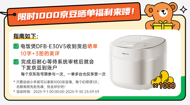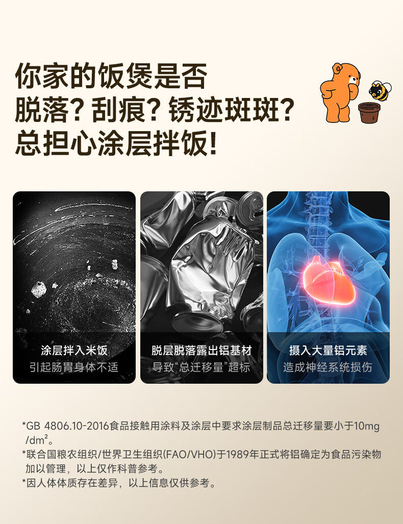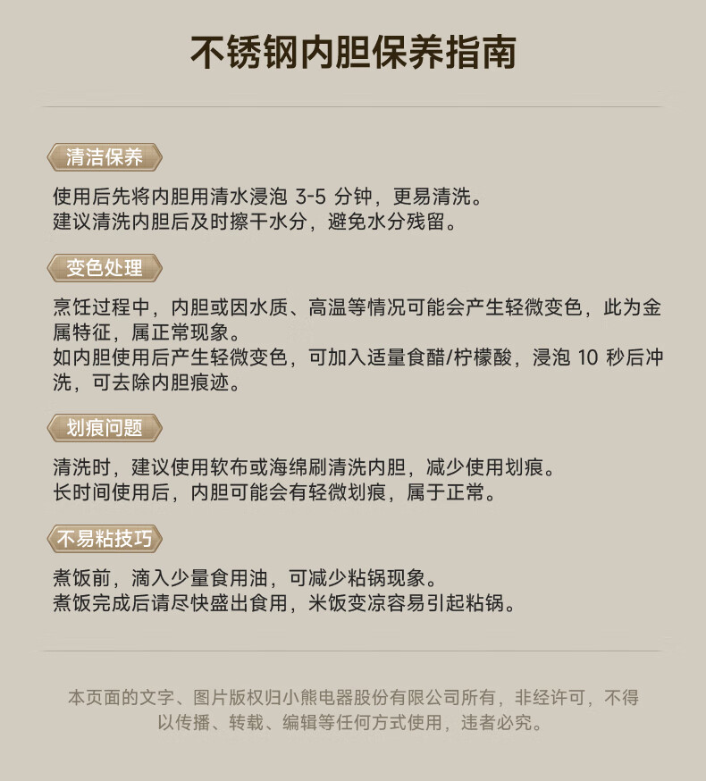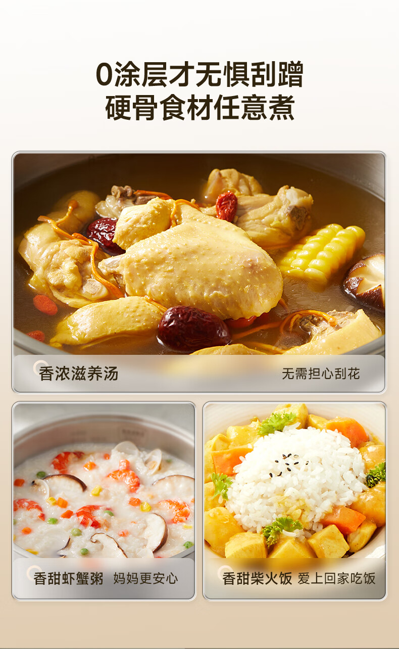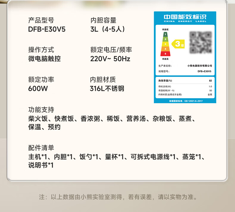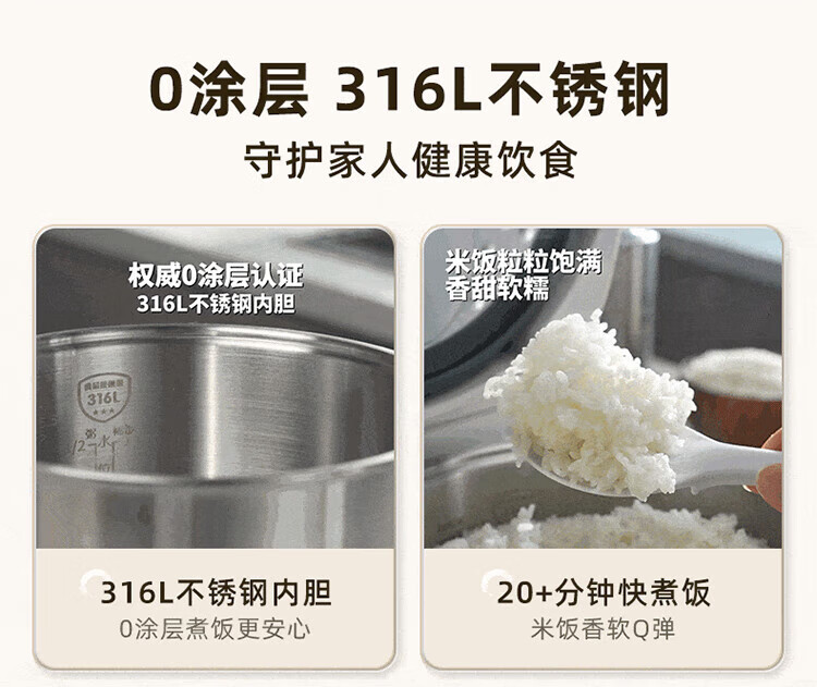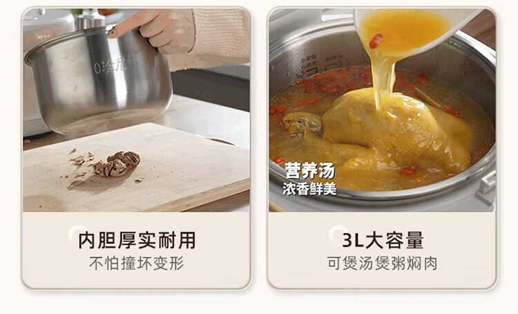 小熊(Bear)电饭煲0涂层 4-5人不锈钢内胆电饭锅 家用智能微压柴火饭杂粮饭多功能3L米黄 DFB-E30V5