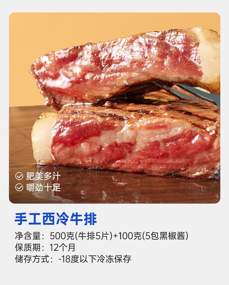 小牛凯西牛排原肉整切儿童牛肉家庭非拼接不合成 菲力牛排650g10片+2鸡排+1意面