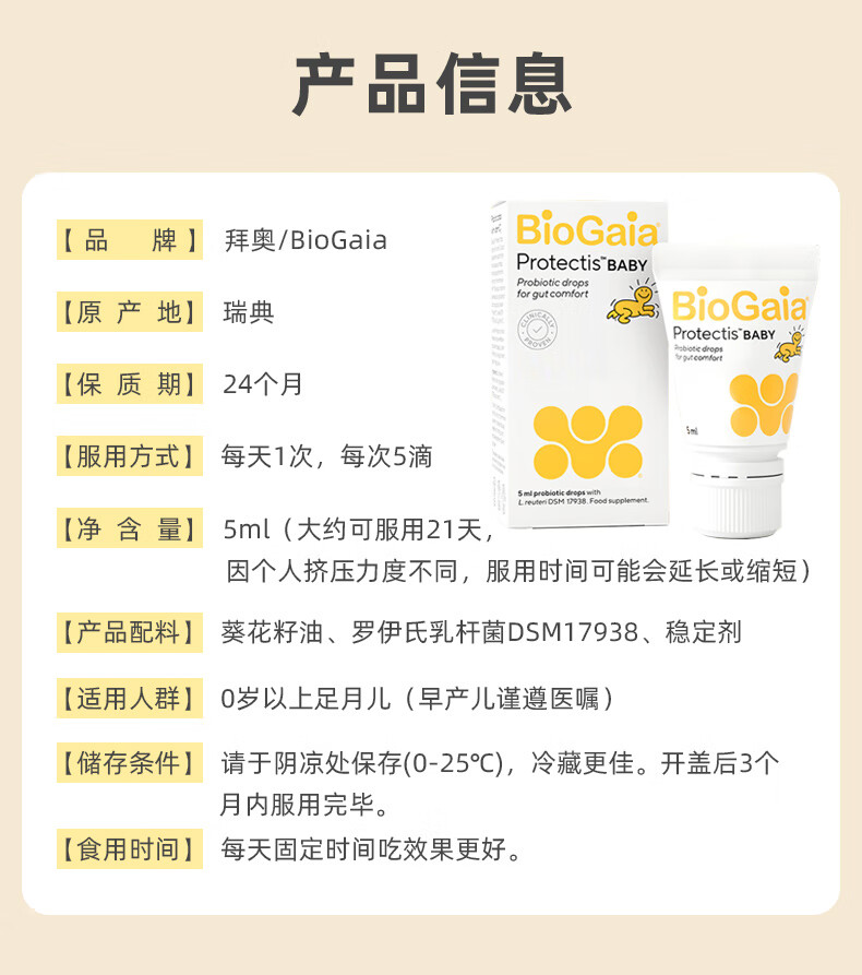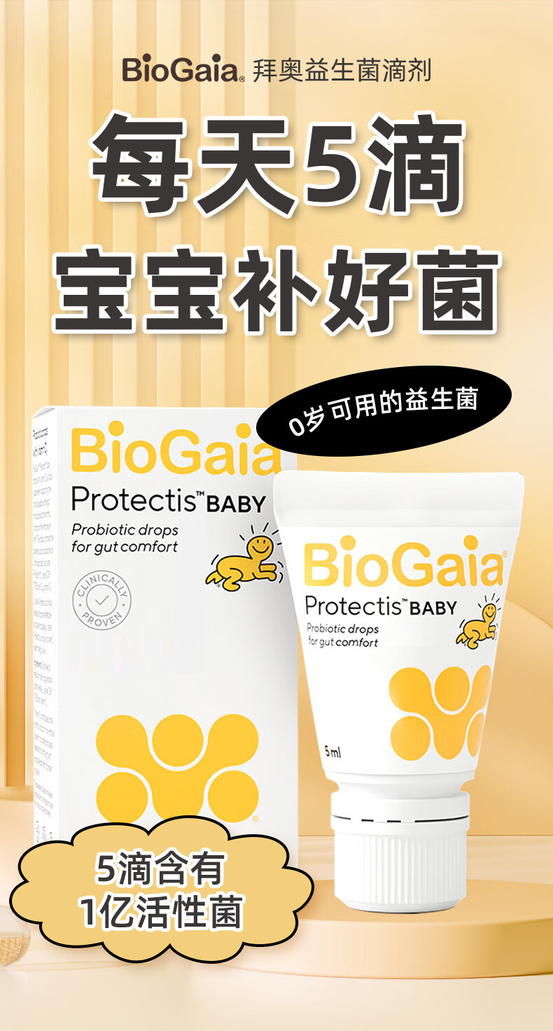 拜奥BioGaia瑞典进口婴幼儿益生菌滴剂5ml罗伊氏乳杆菌0-3岁软管装