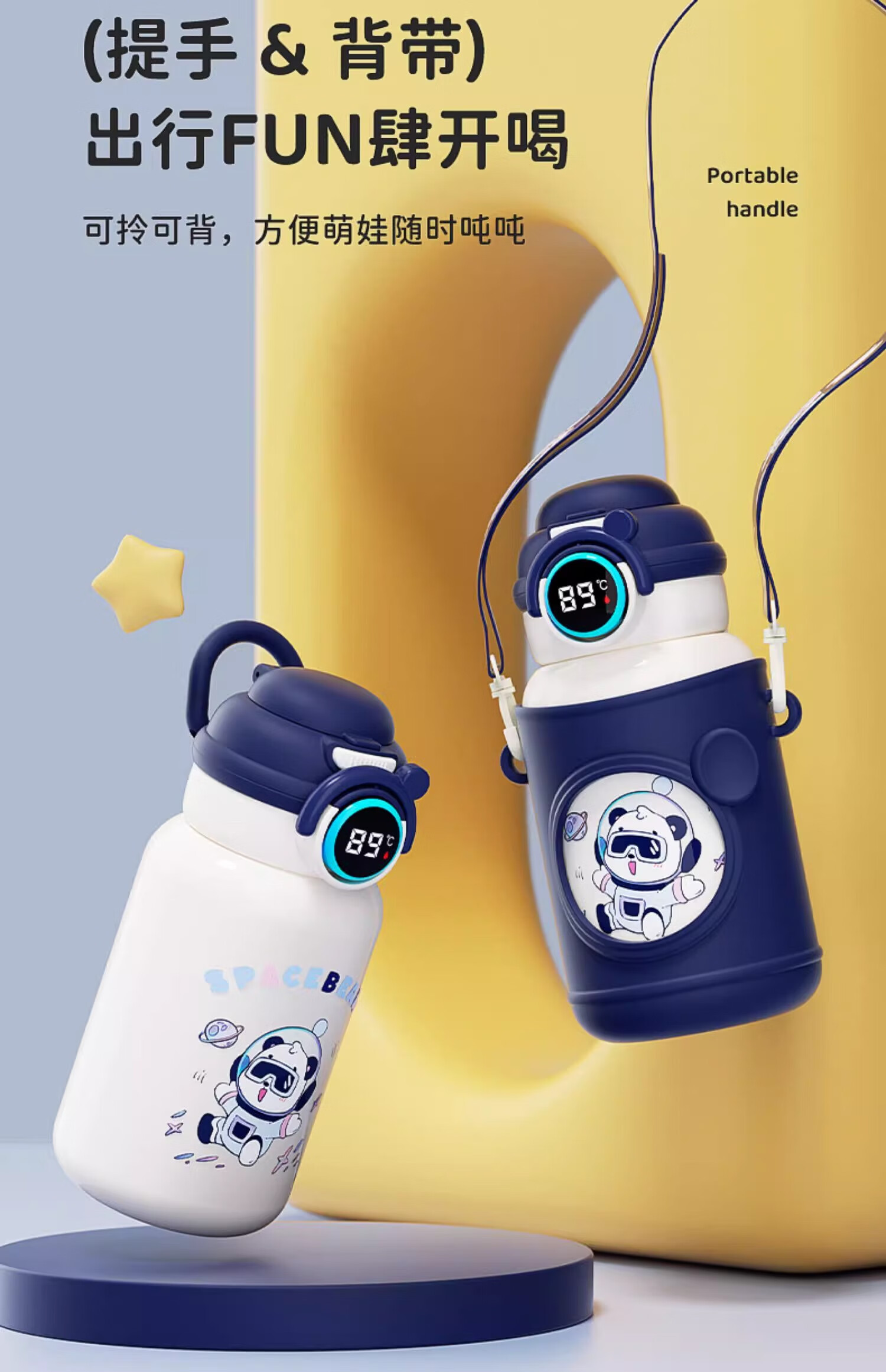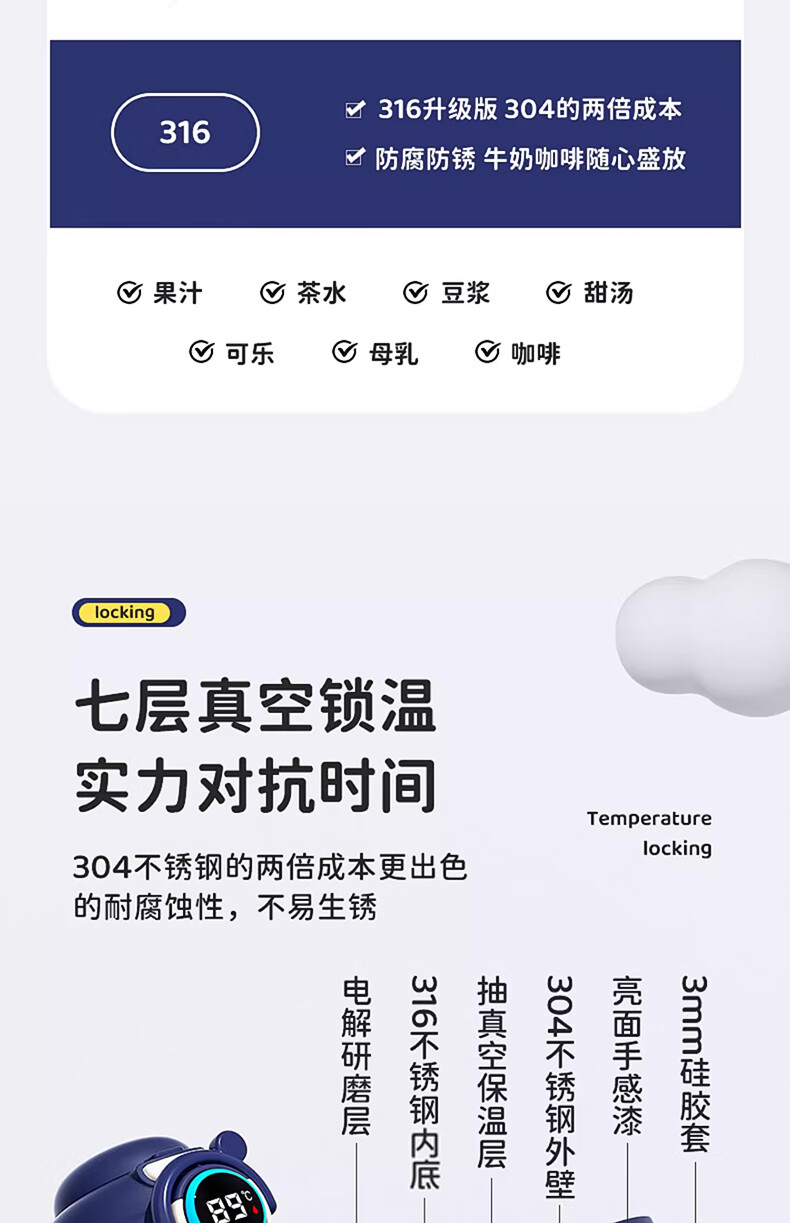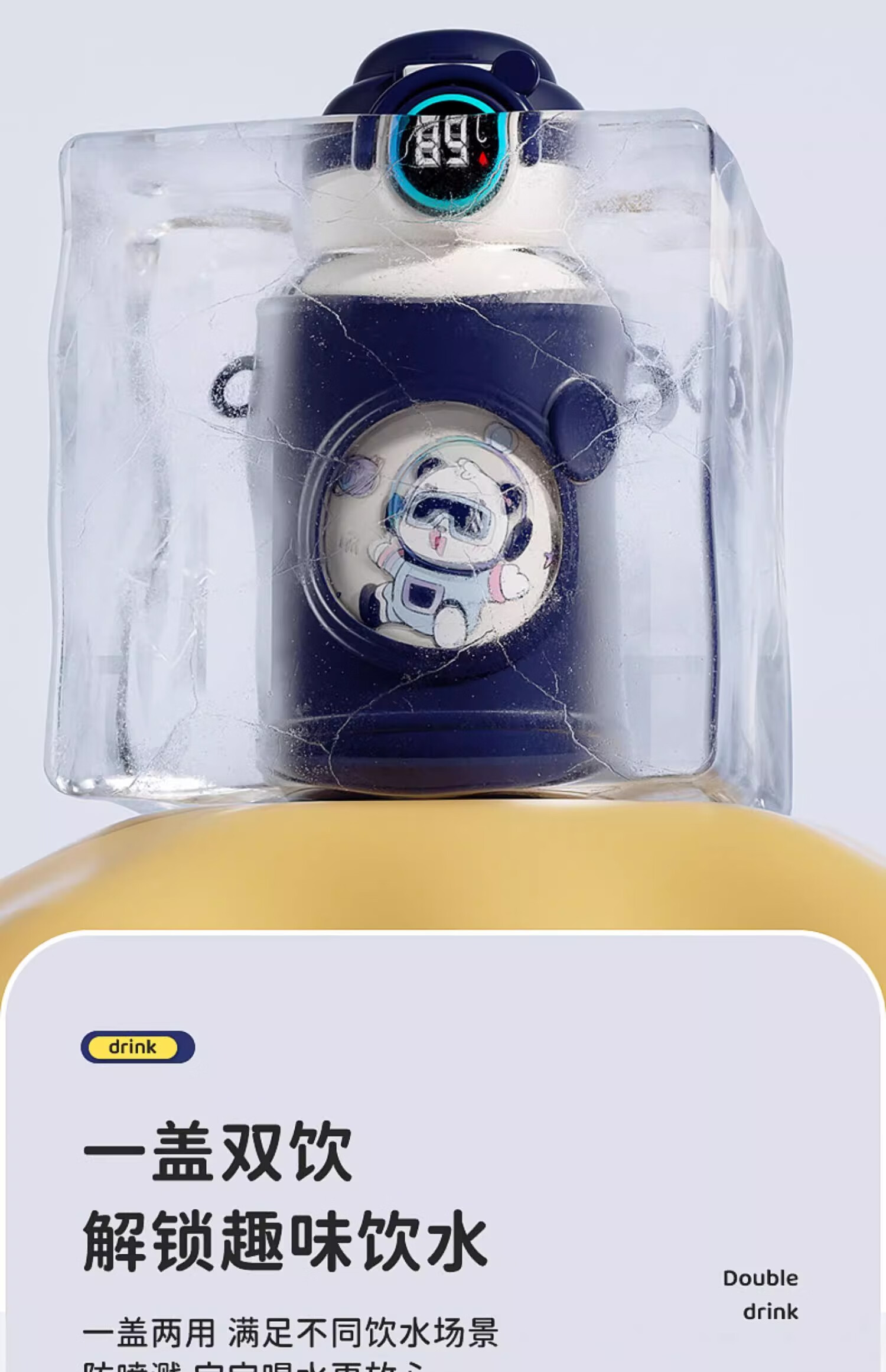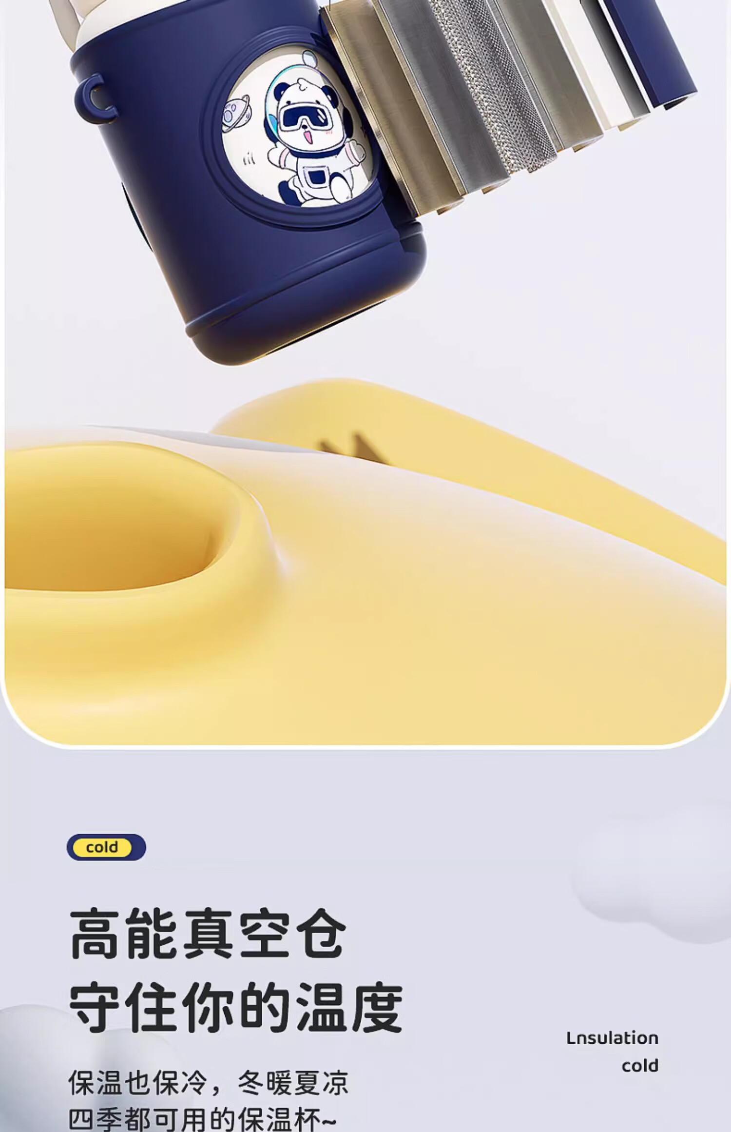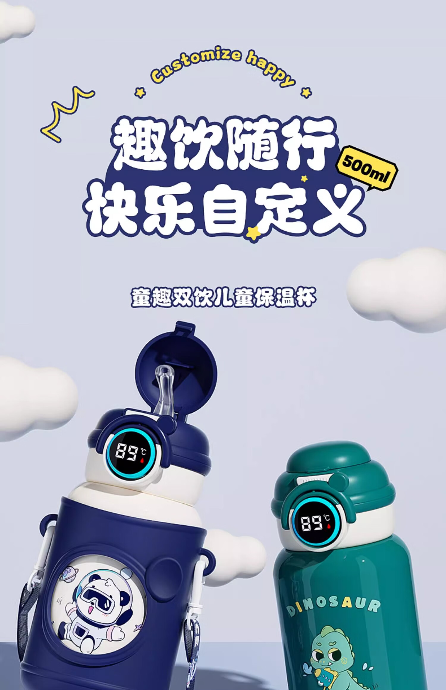 皇家洛克 ROYALLOCKE儿童保温杯智能大容量水杯子吸管316不锈钢便携小学生幼儿园水壶 【双饮盖+便携杯套】小熊猫500ML