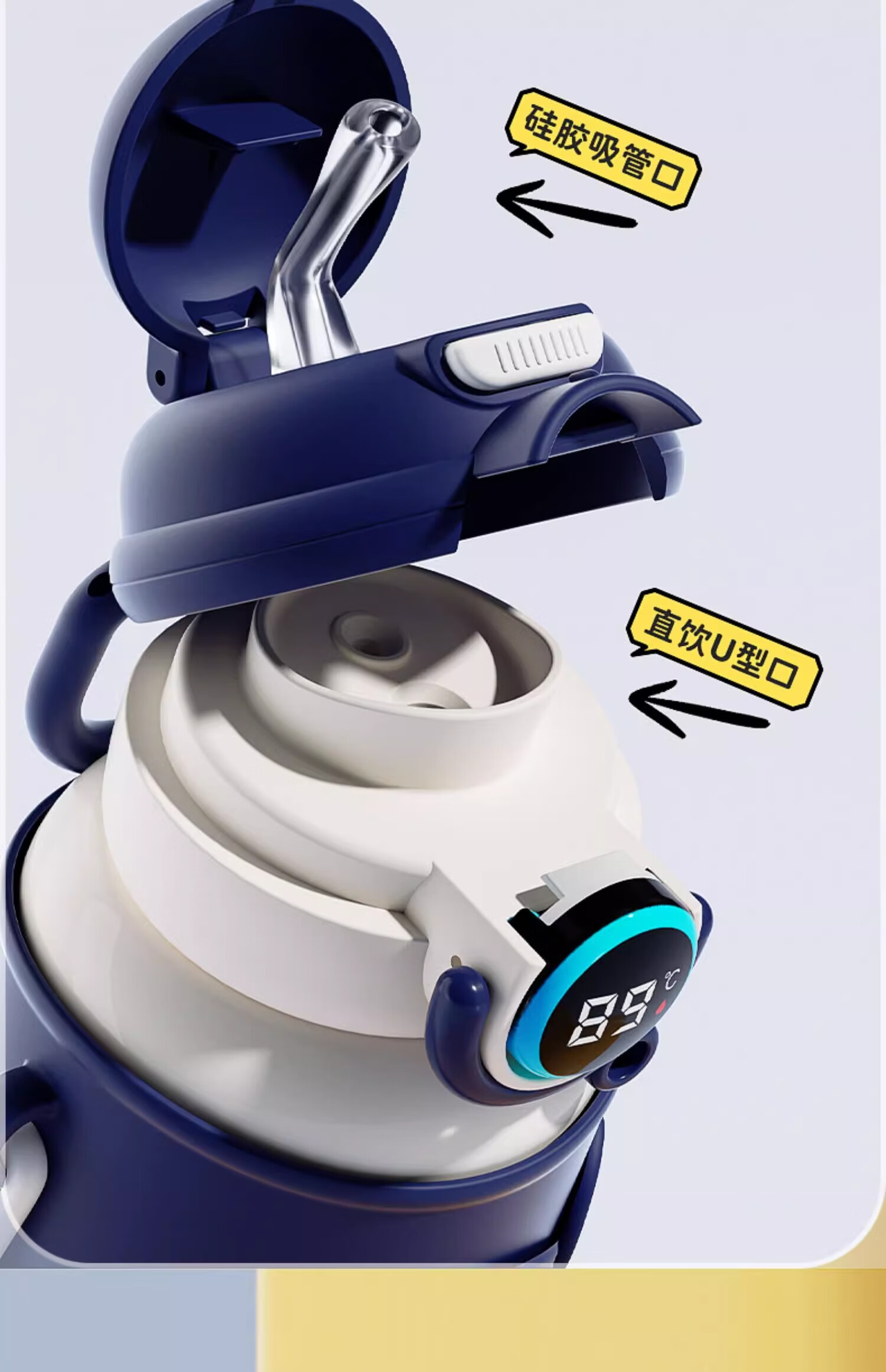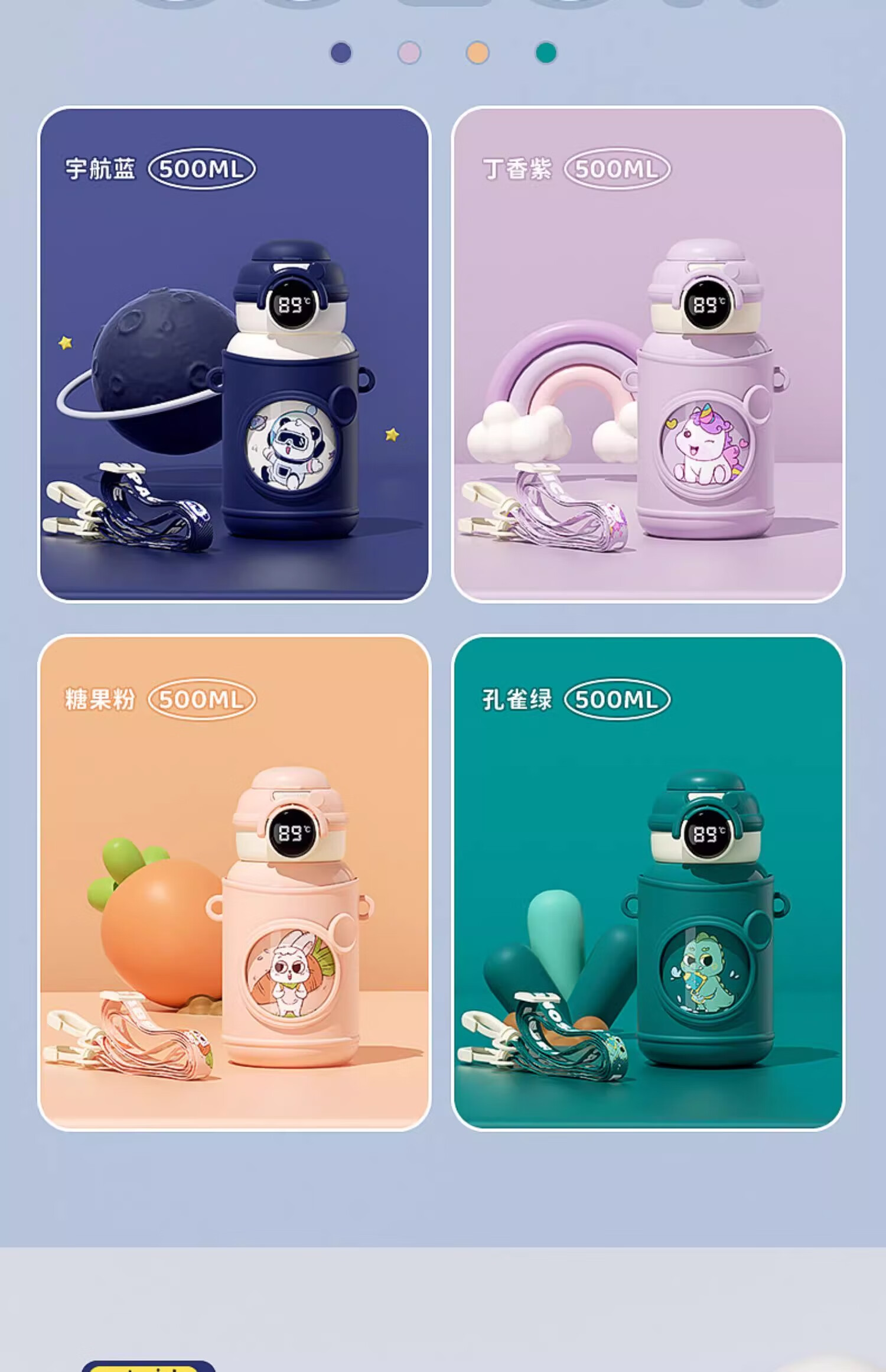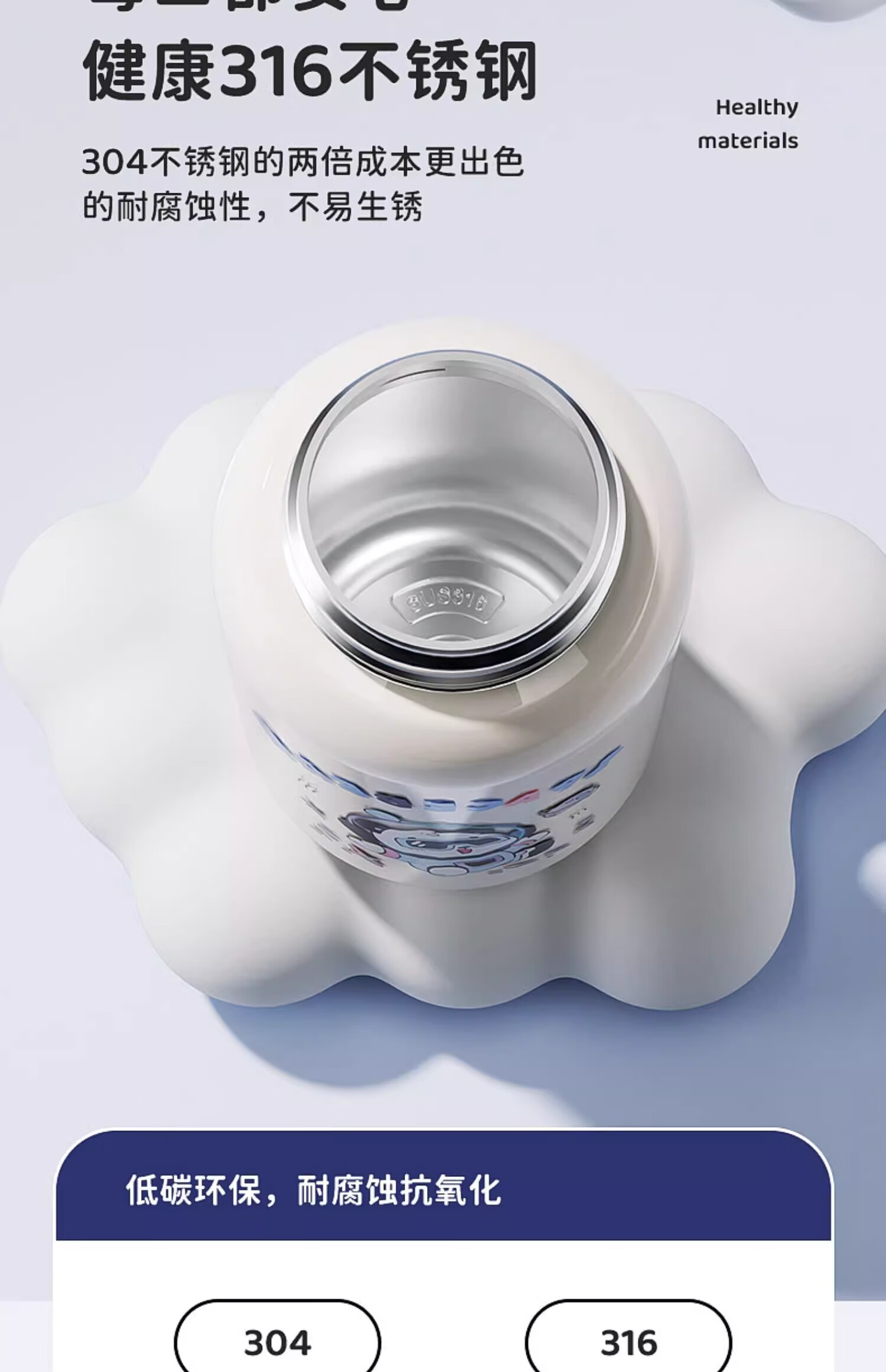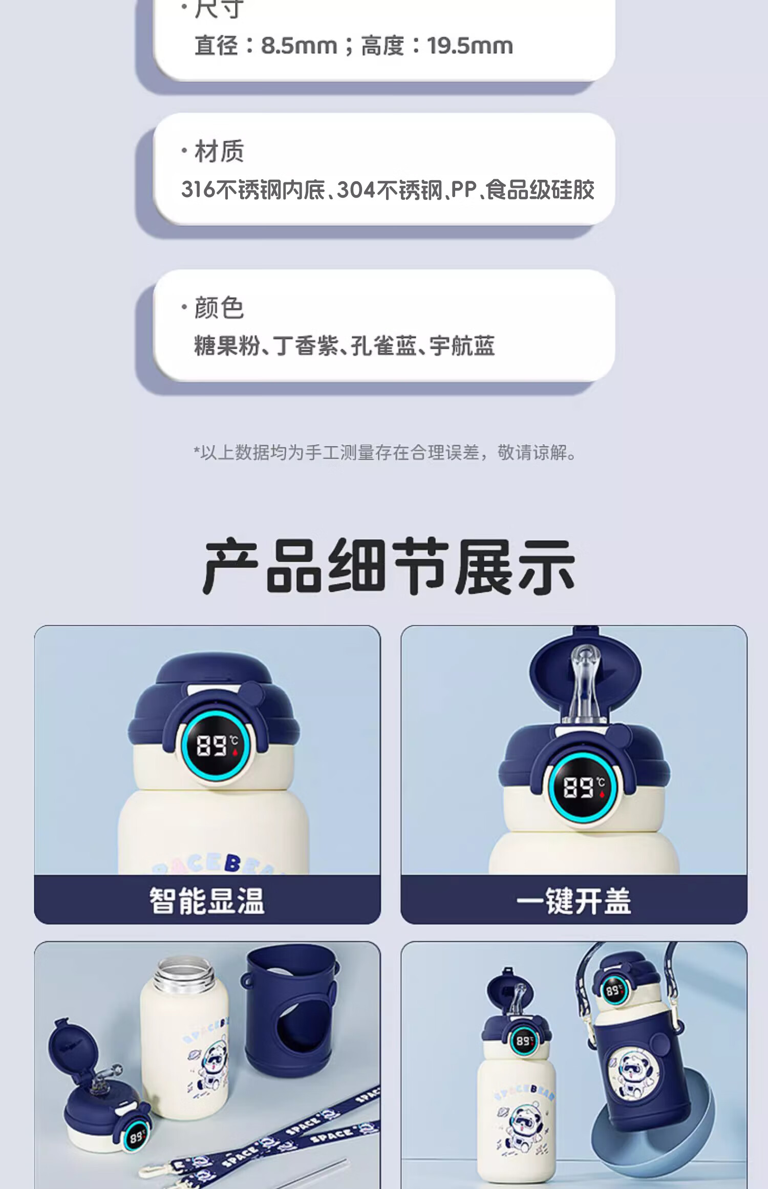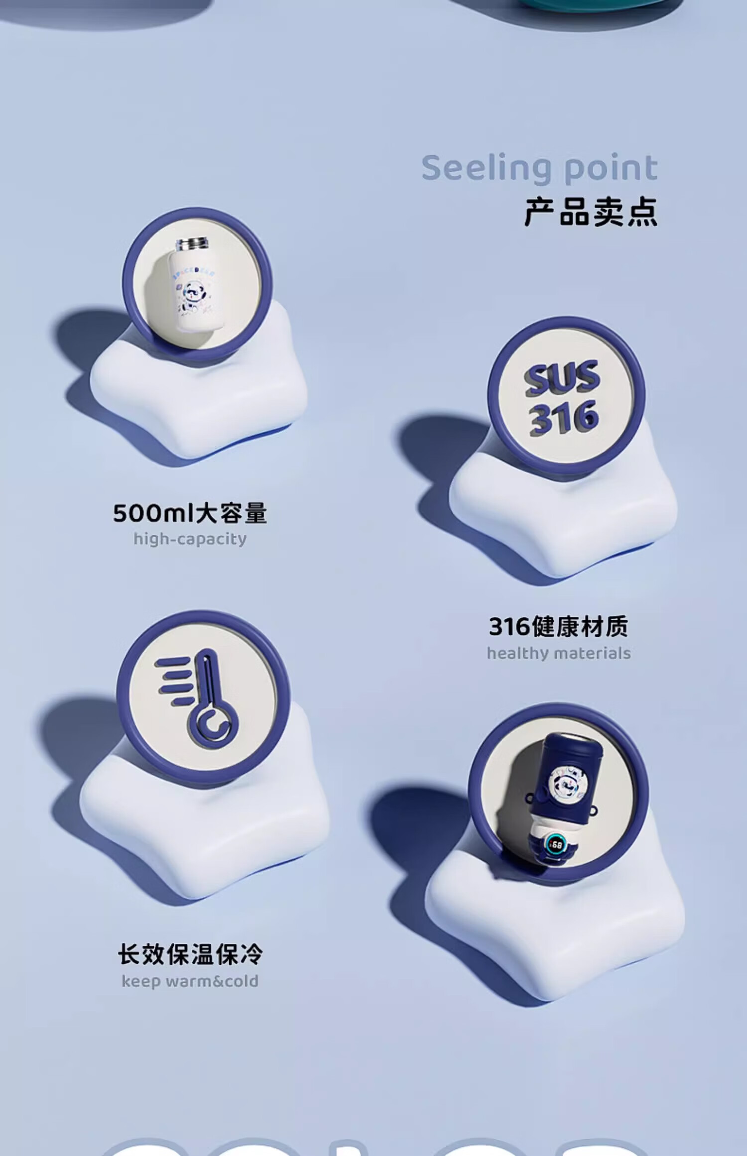 皇家洛克 ROYALLOCKE儿童保温杯智能大容量水杯子吸管316不锈钢便携小学生幼儿园水壶 【双饮盖+便携杯套】小熊猫500ML