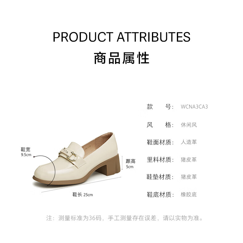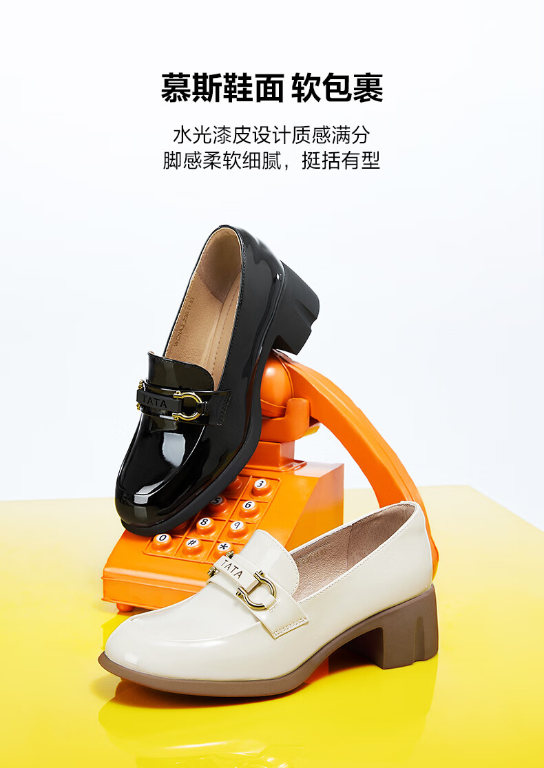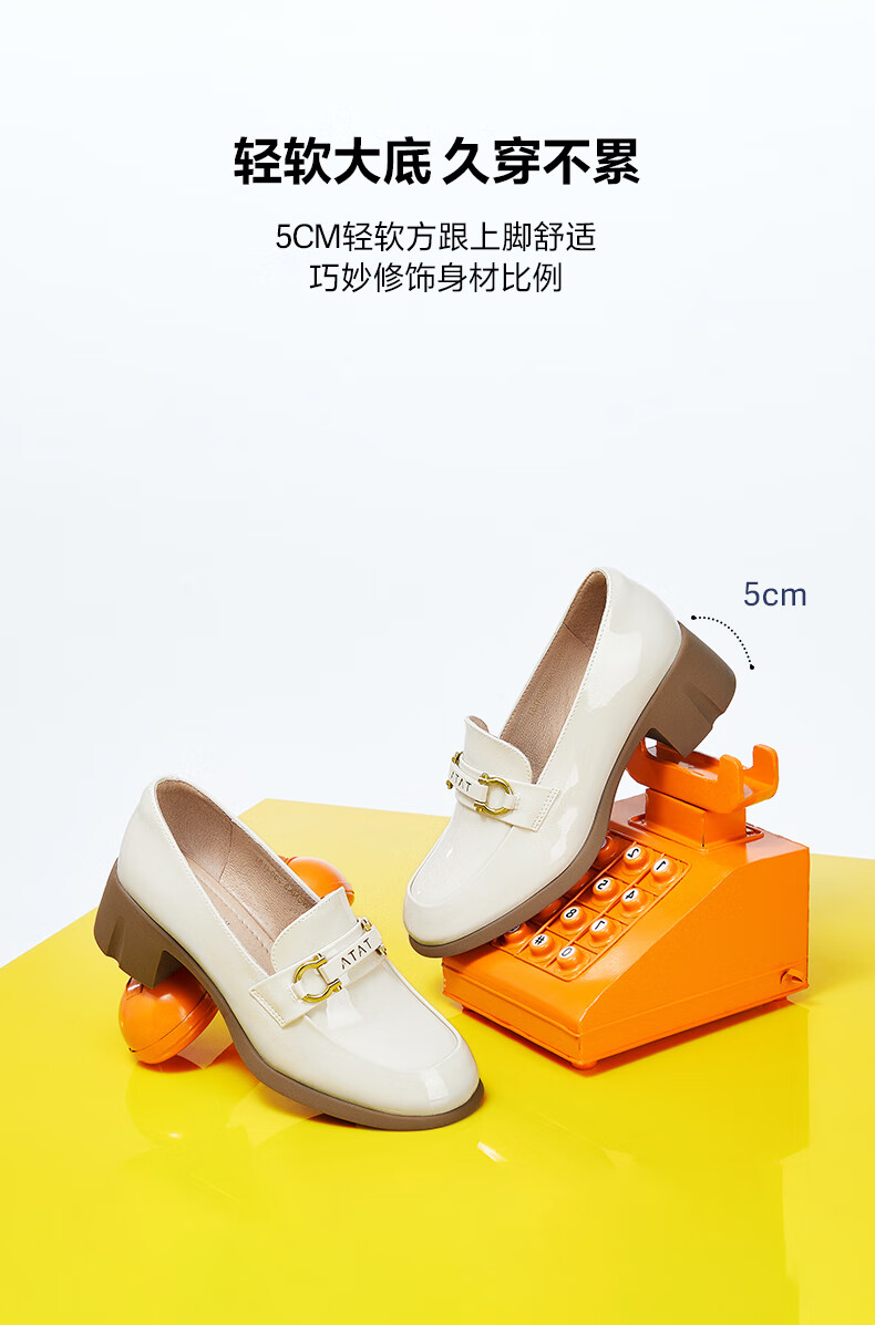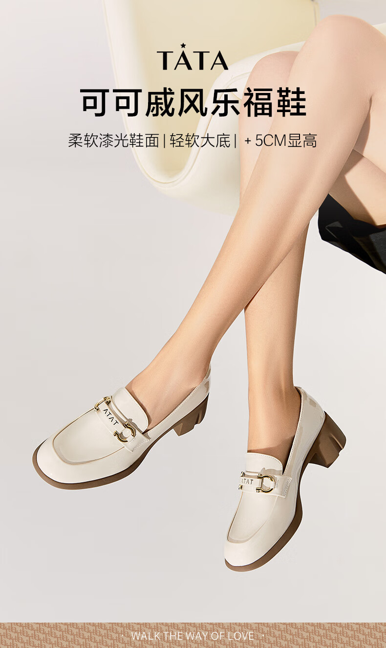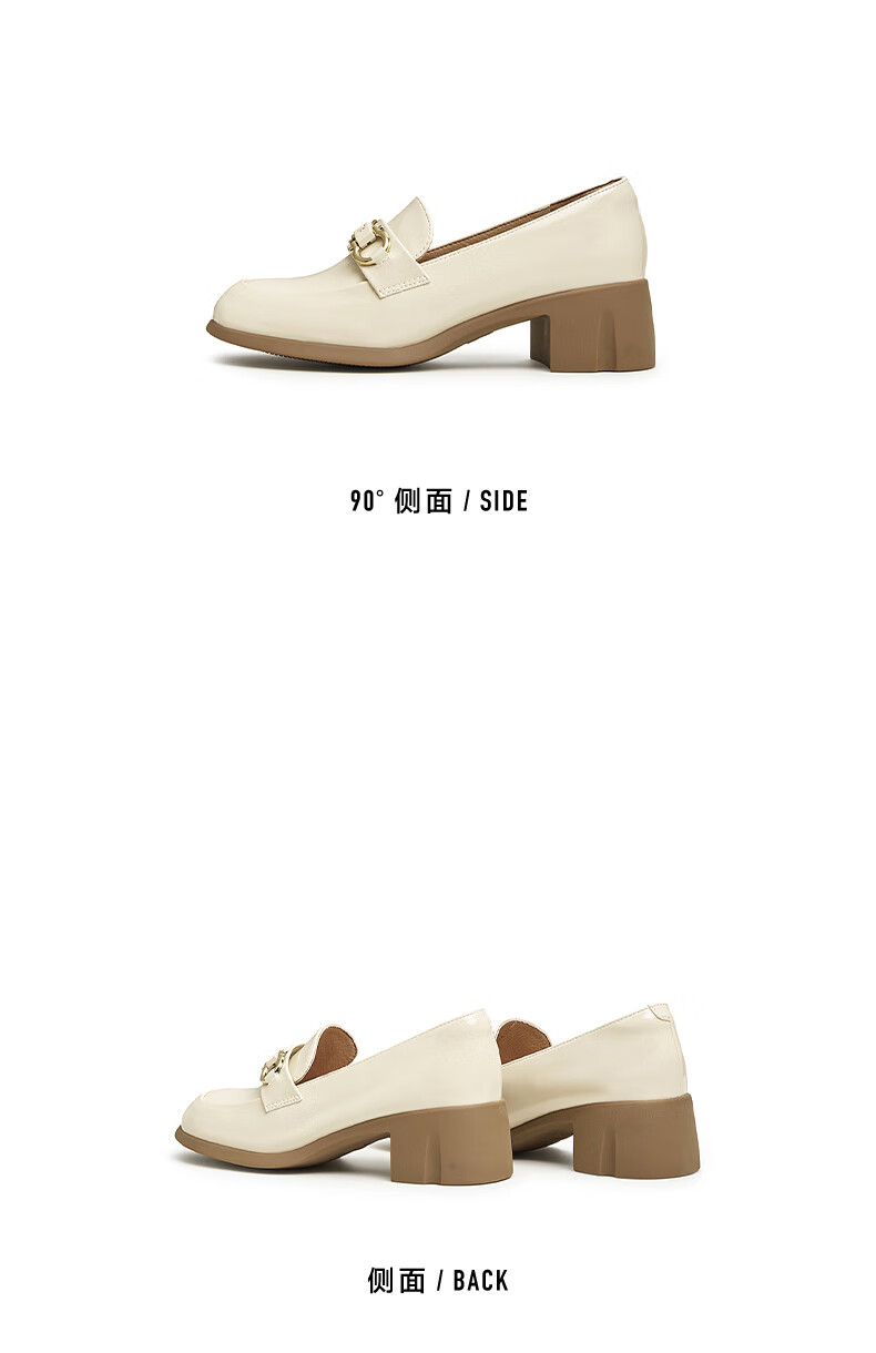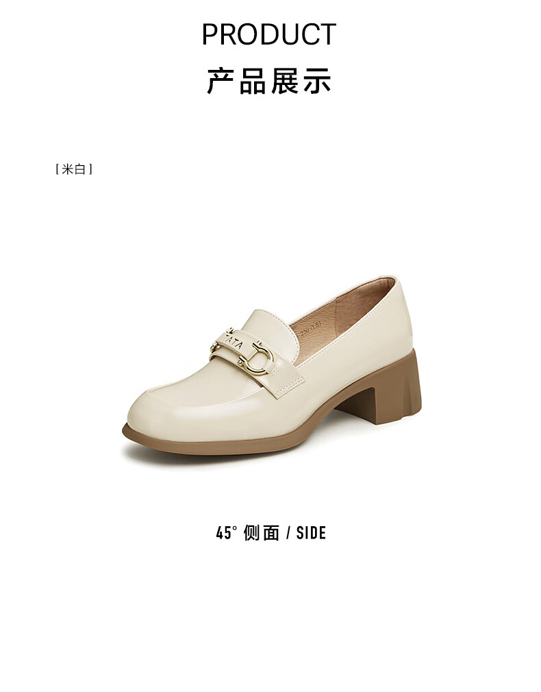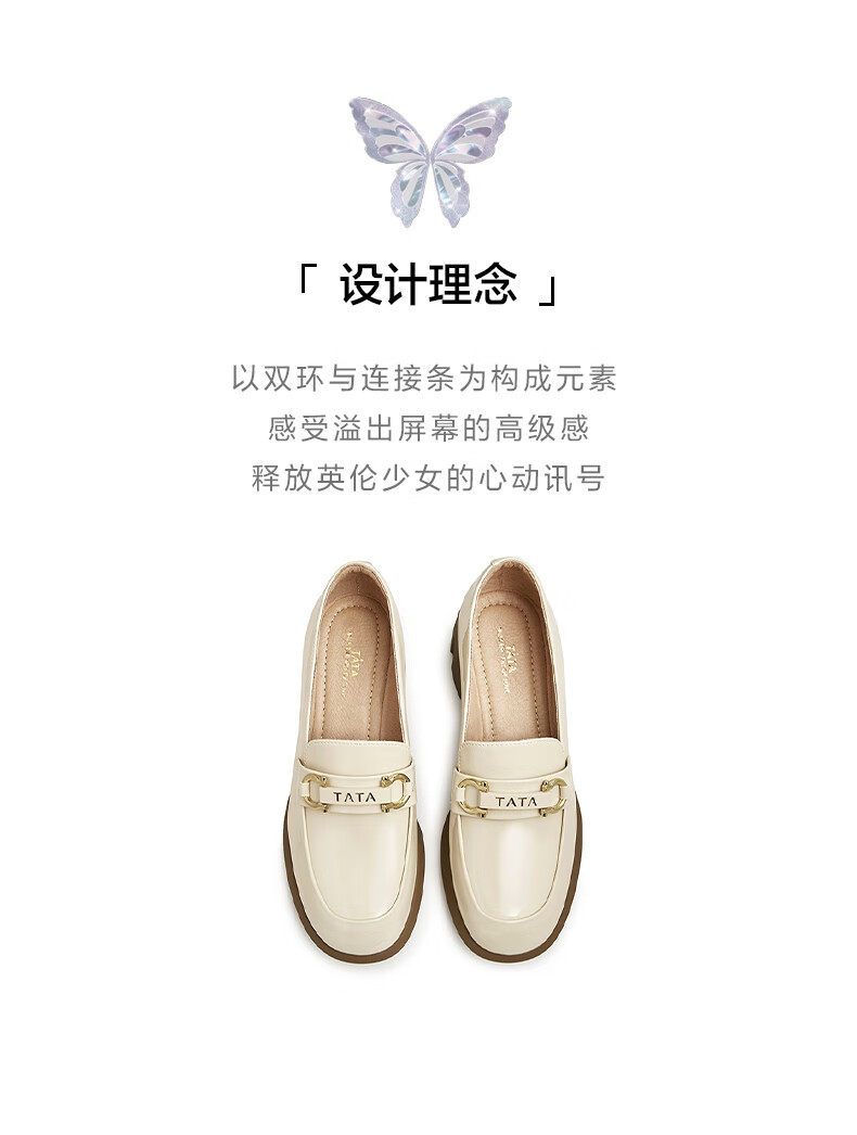他她英伦风乐福鞋女一脚蹬粗跟小皮鞋单鞋秋新款WCNA3CA3米白 38