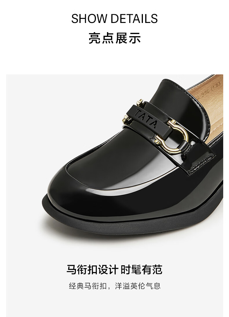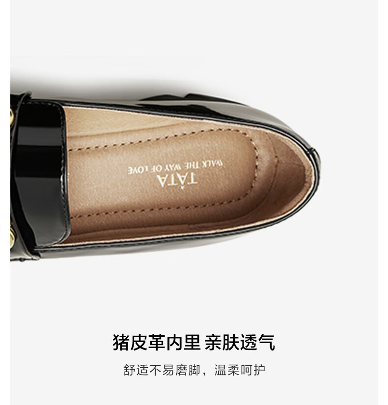 森达乐福鞋女鞋春秋新款商场同款通勤一脚蹬小皮鞋XCA01CA4 经典款-黑色 37