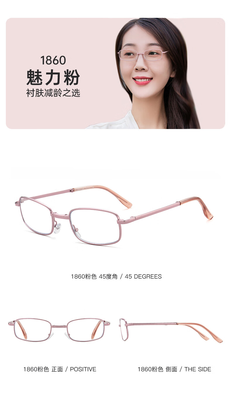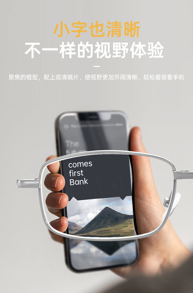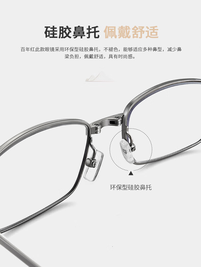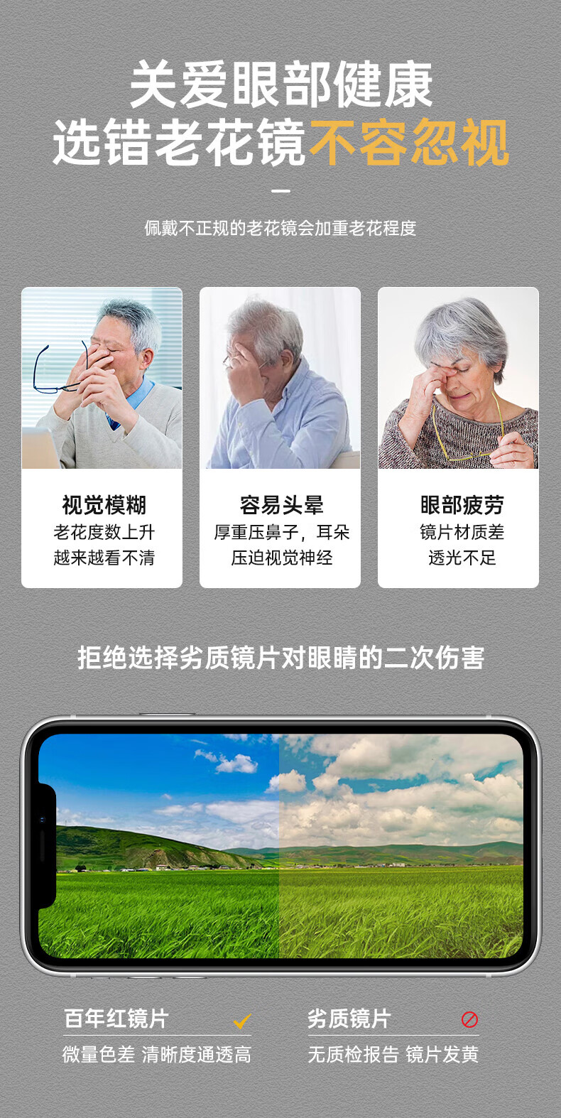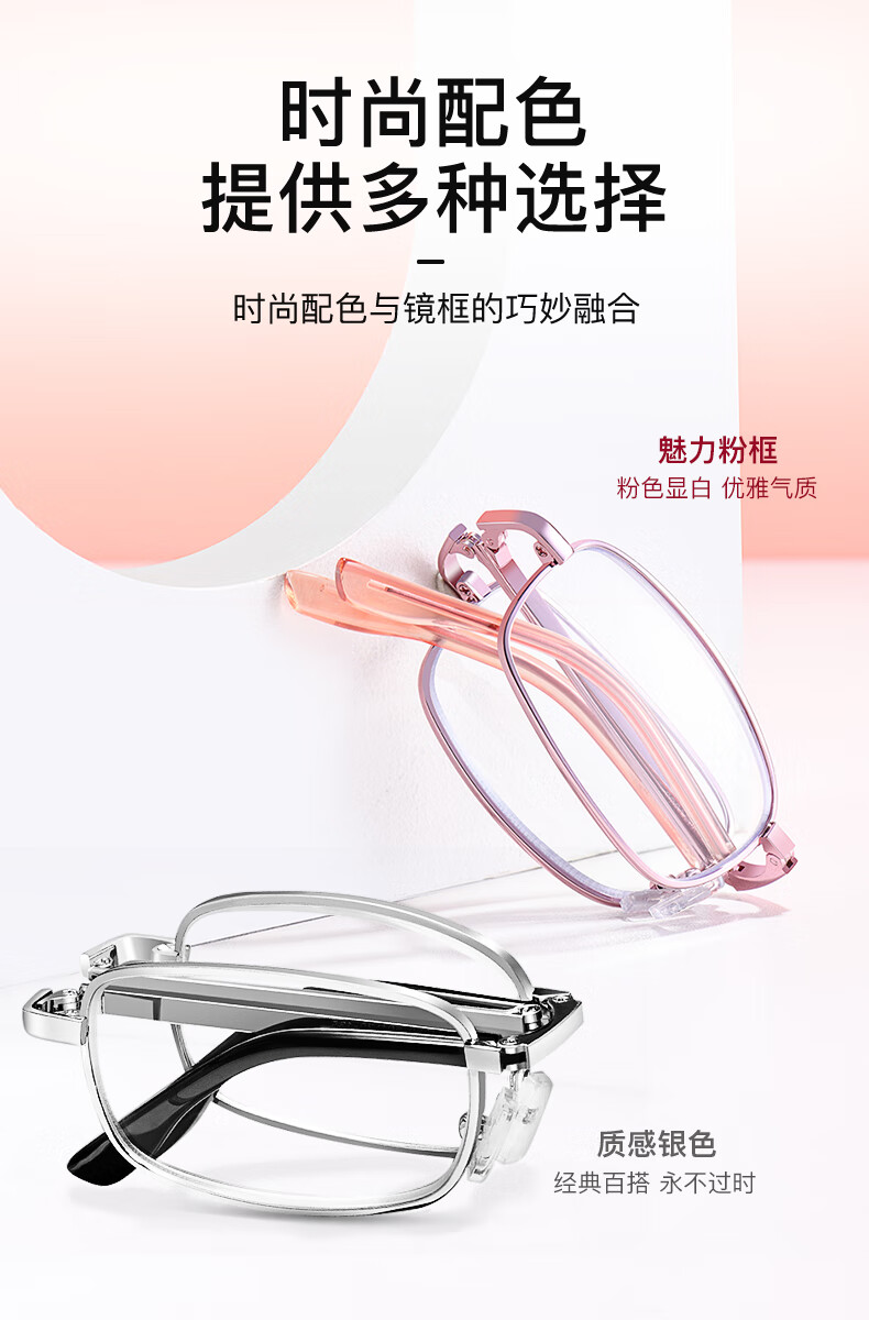 百年红折叠老花镜进口高清防蓝光老花镜正品高端老人眼镜1860银色-150