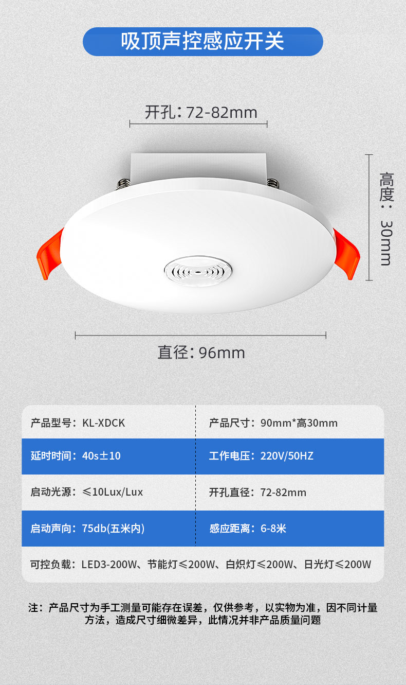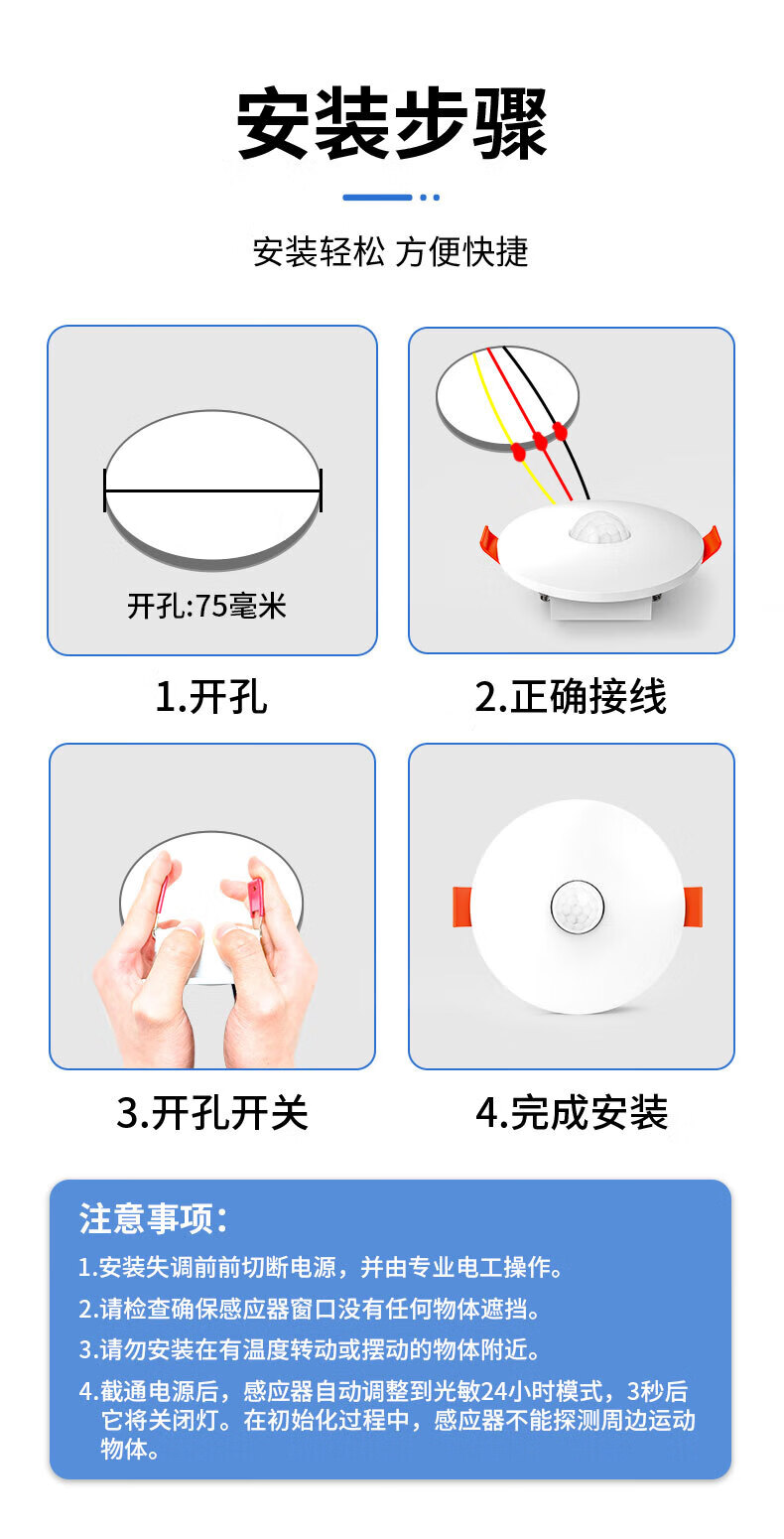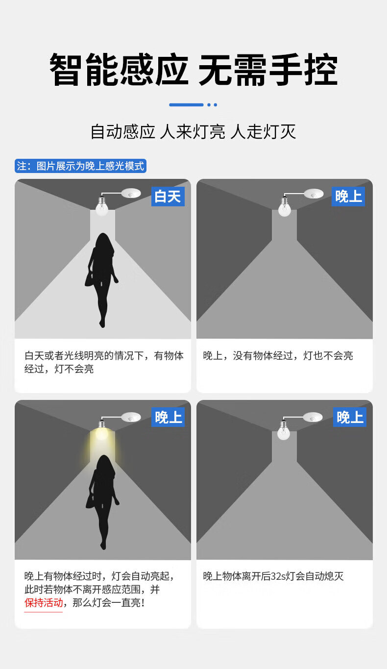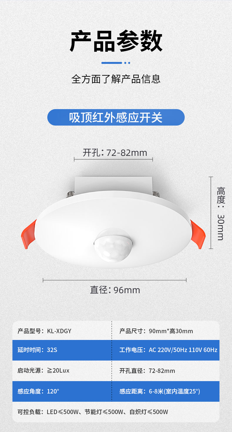 国际电工光感吸顶灯家用嵌入式人体感应开关大功率LED灯节能延时声控感应 150W-人体感应【二线制】