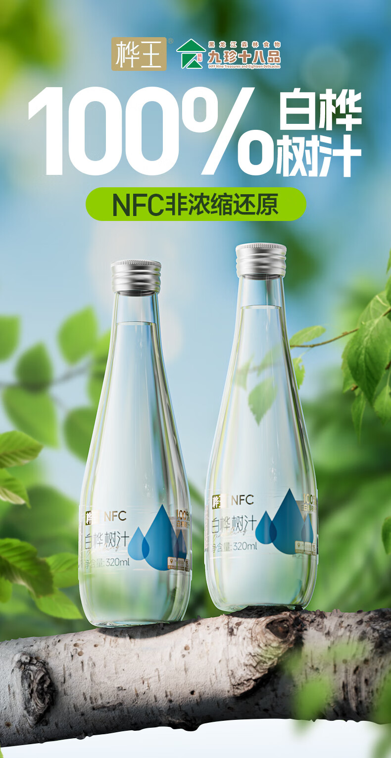 桦王白桦树汁100%NFC天然白桦树原液植物饮料320ml*6瓶/箱礼盒装