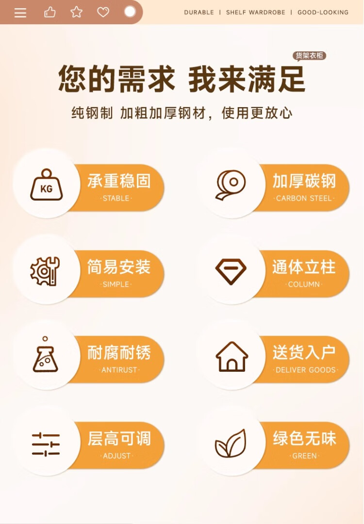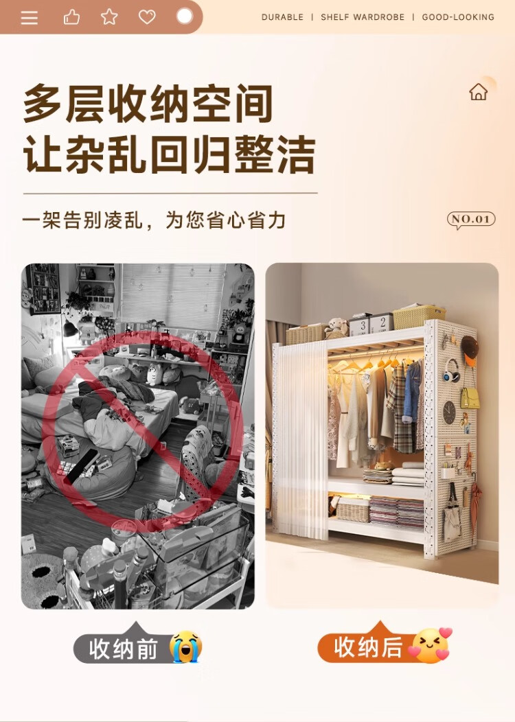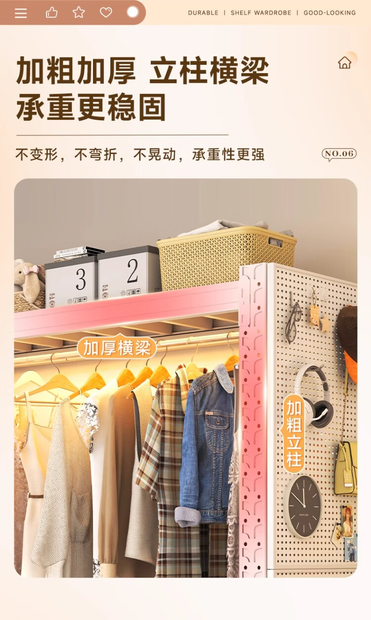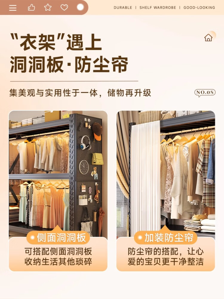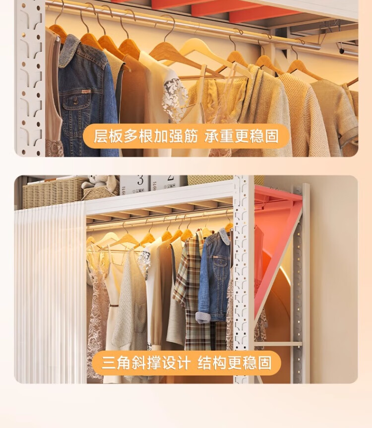 昭简简易衣柜钢架结构置物架开放式卧室收纳柜出租房衣帽架货架衣柜 黑黄三层【送正面帘+挂衣杆*2】 组合款长300*宽60*高200