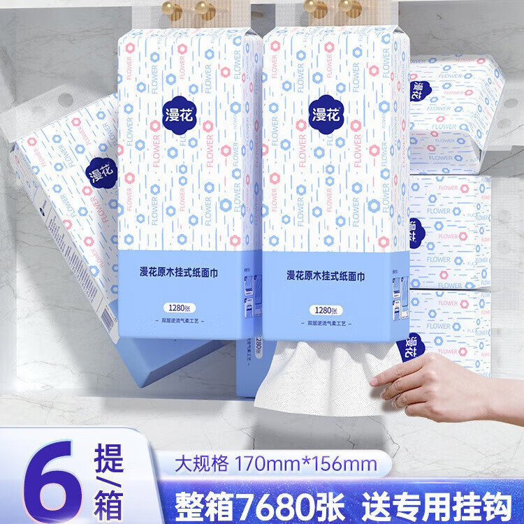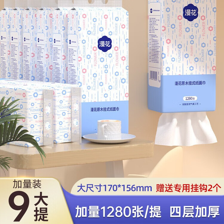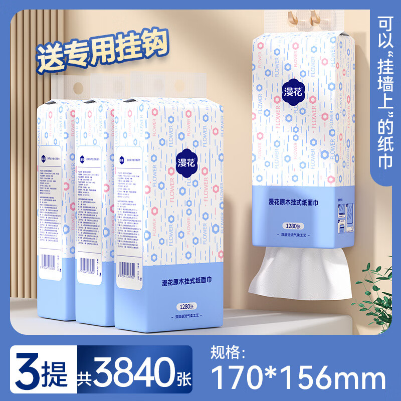 漫花挂式抽纸家用整箱纸巾1280张实惠装餐巾纸原木面巾纸厕用卫生纸 【单提装】体验装 无挂钩