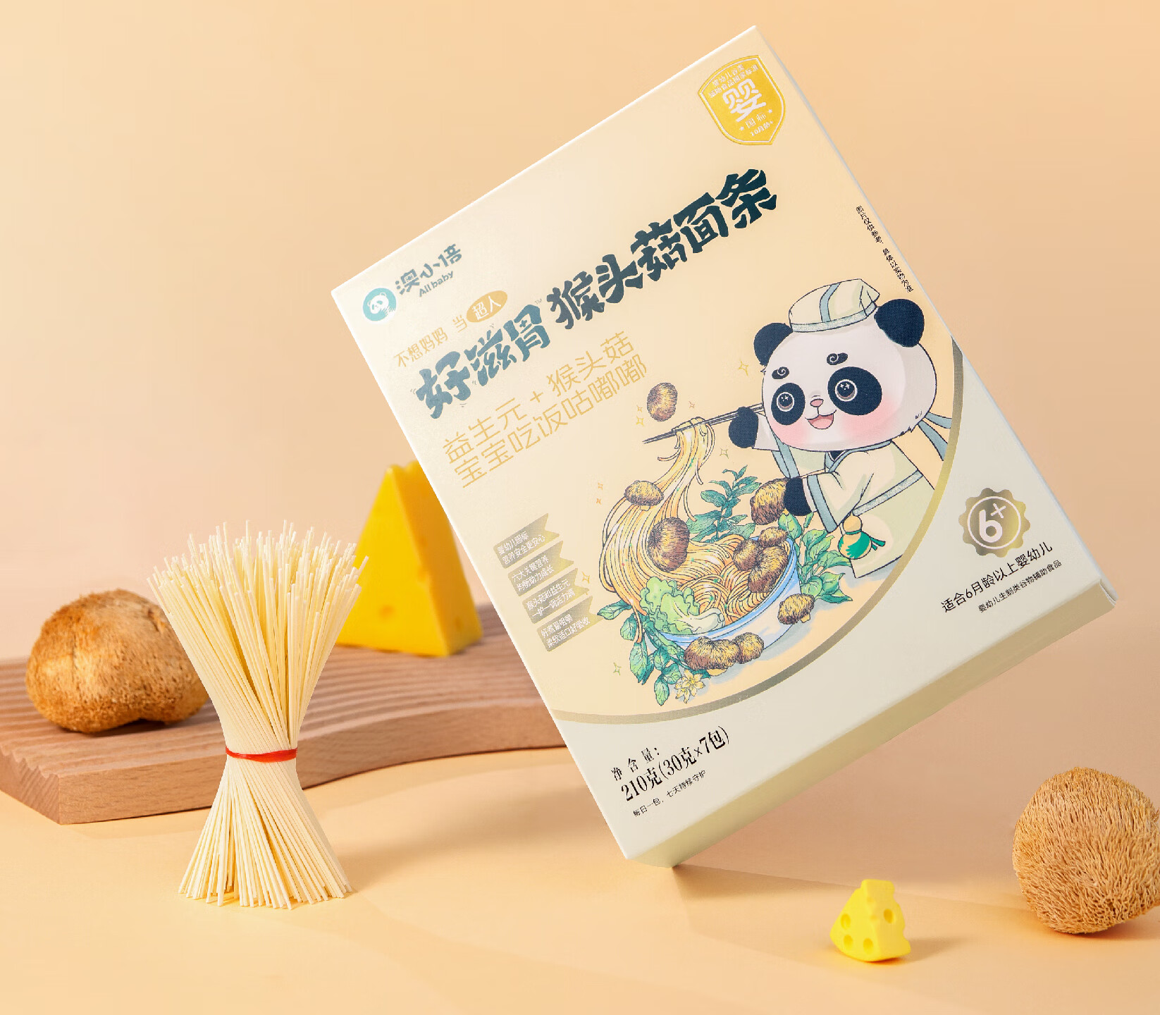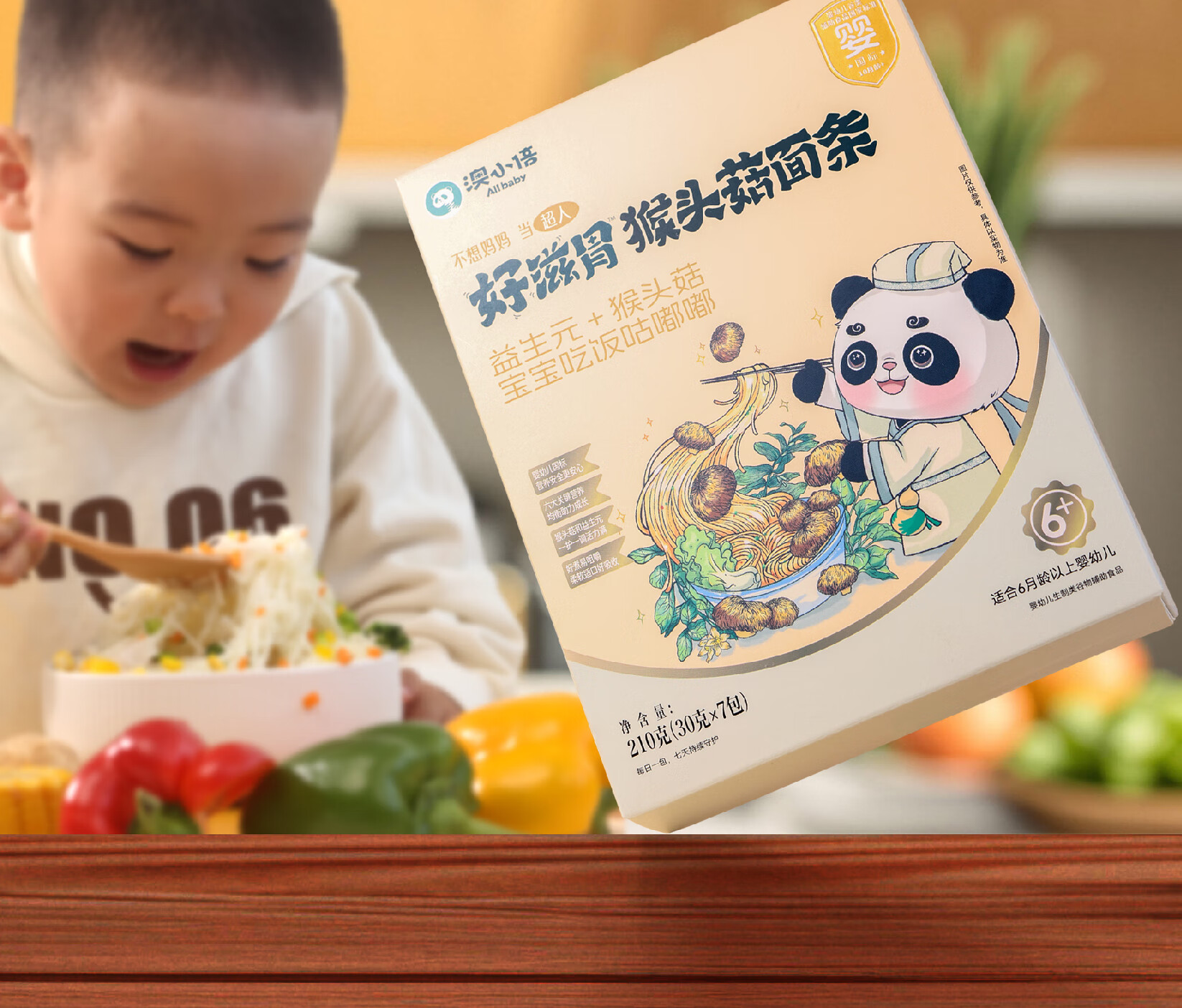 澳小倍婴幼儿猴头菇益生元加钙面条210g 宝宝辅食挂面儿童线面无添加盐 猴头菇益生元面条4盒 无添加盐