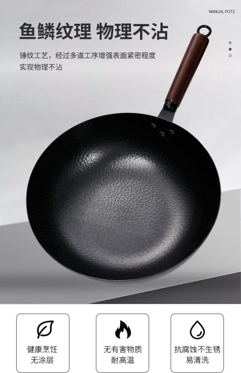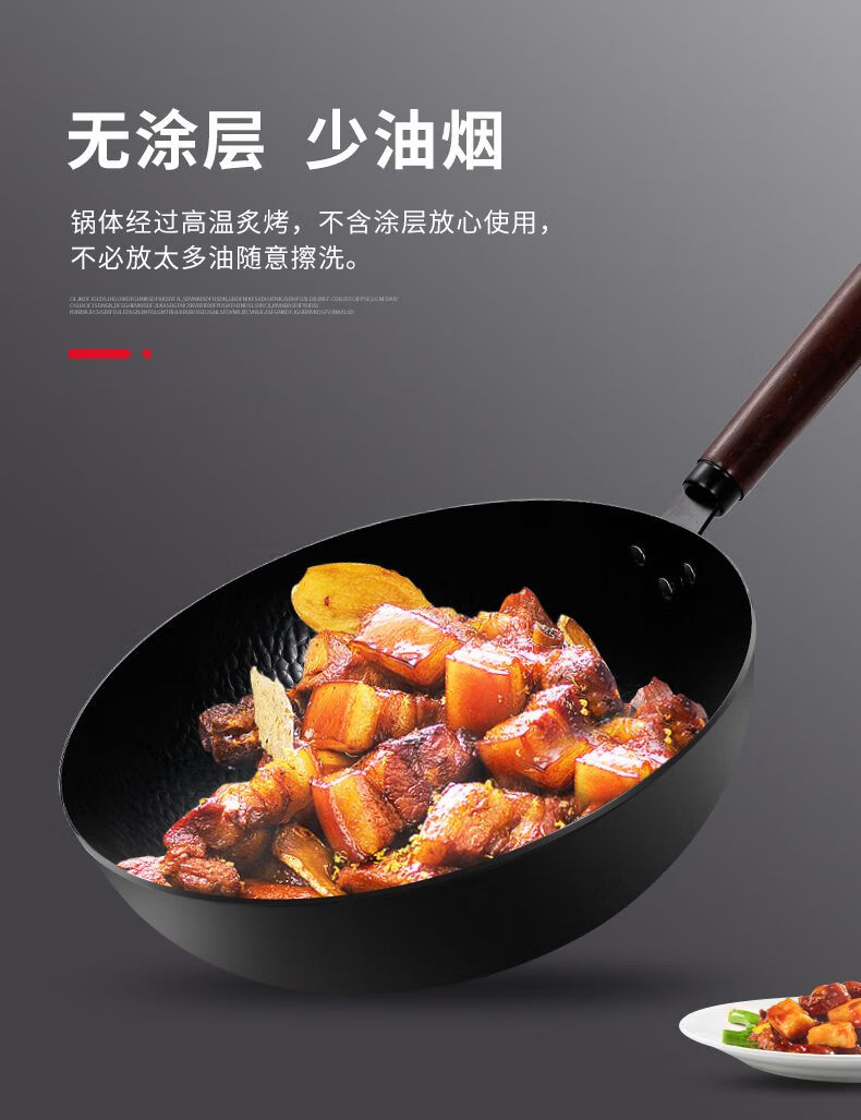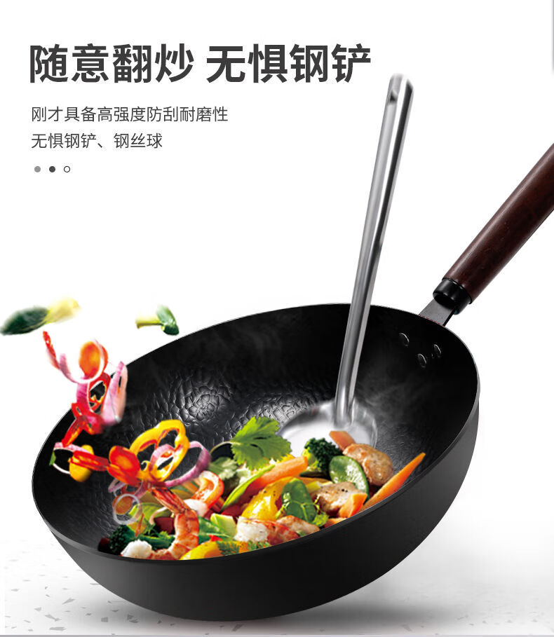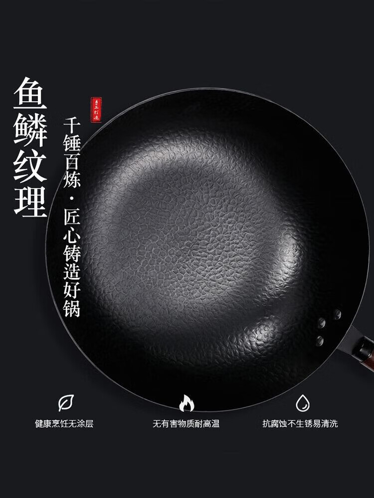 章丘炒菜锅传统老式炒锅家用锤花纹不粘铁锅无涂层锅燃气灶适用 鱼鳞款豪华铲子+ 锅盖(电磁炉燃气灶通用 32cm