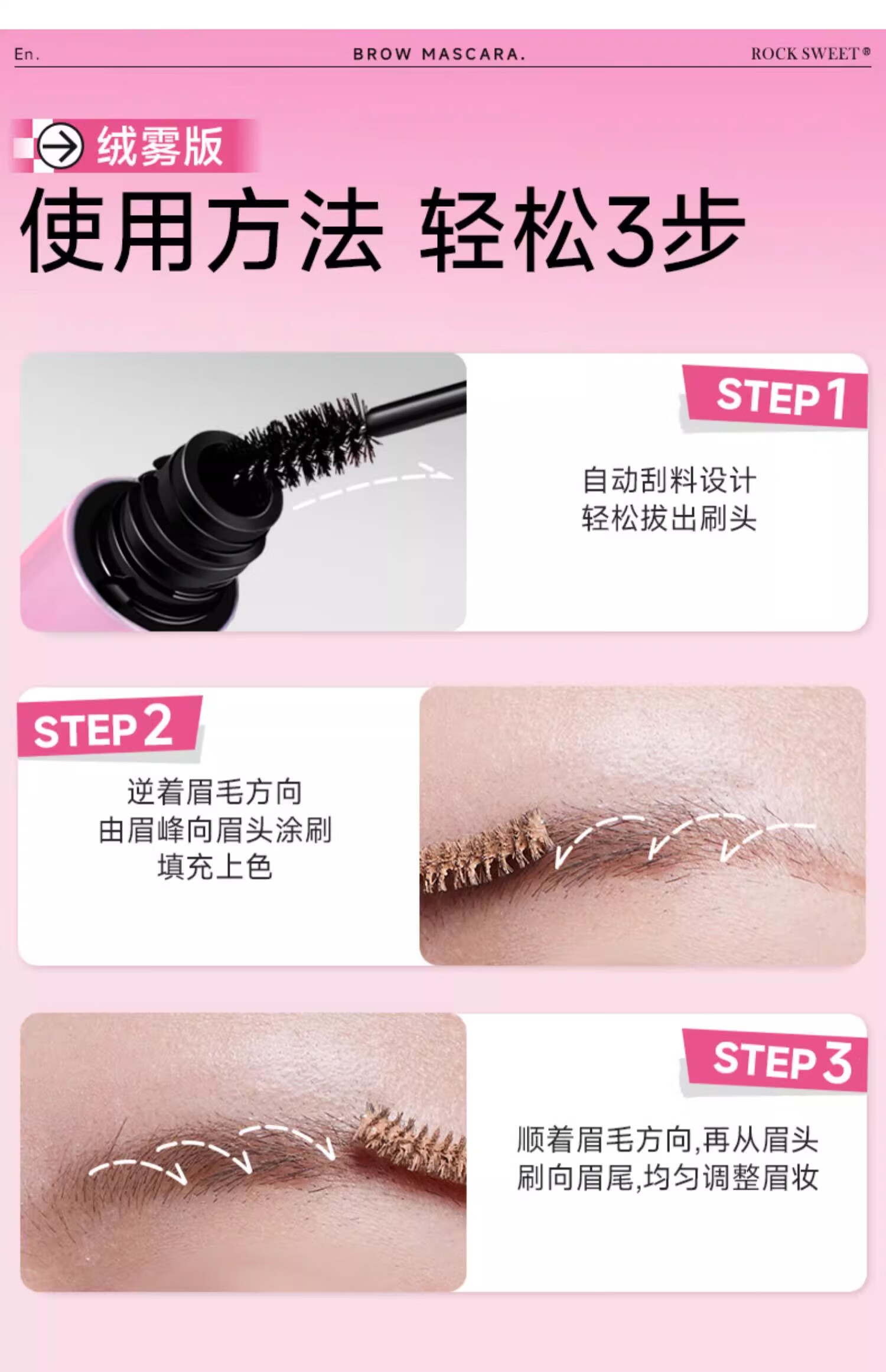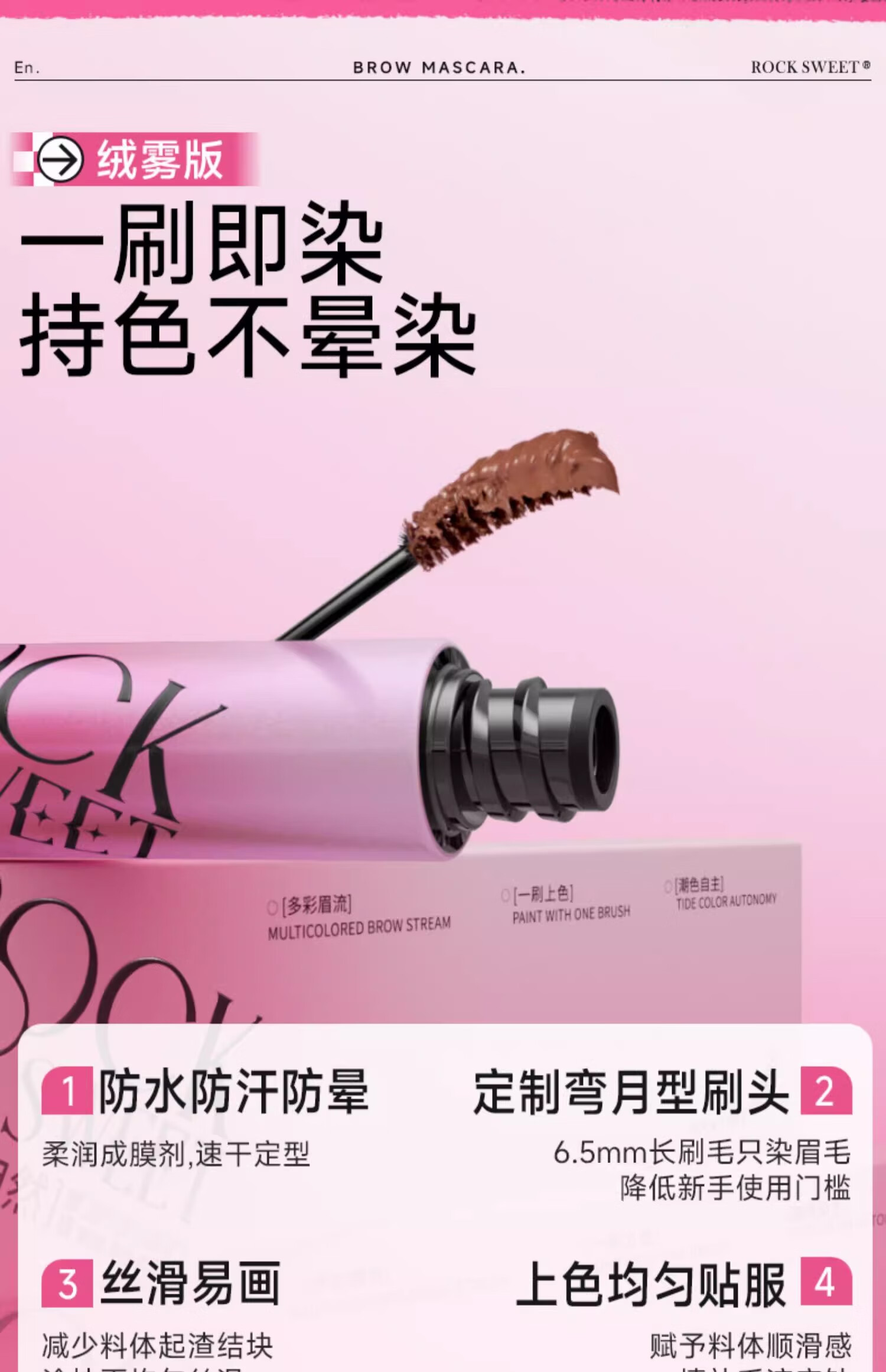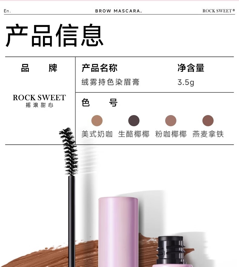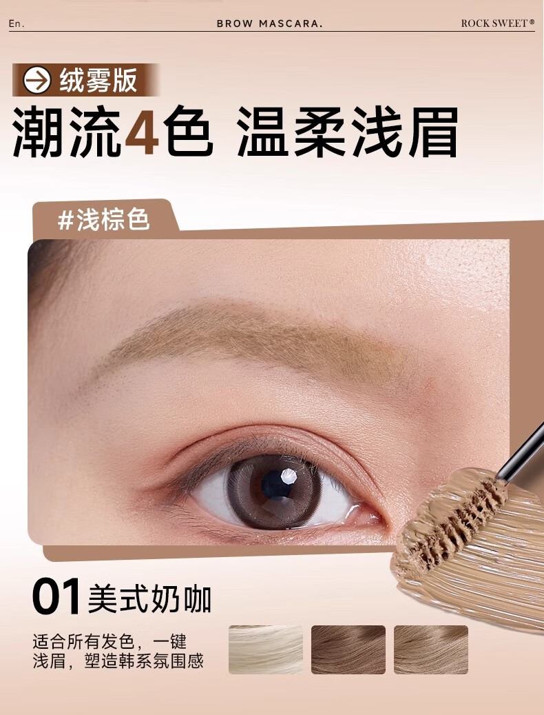 摇滚甜心 ROCK SWEET绒雾染眉膏防水持妆不脱色速干自然打底不晕染自然野生眉膏礼物 03粉咖椰椰【甜酷氛围感】