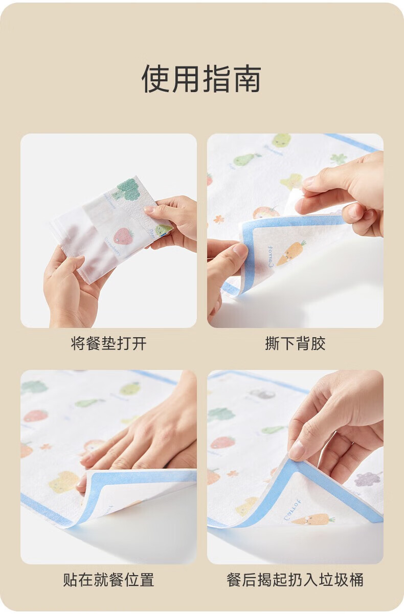 贝肽斯一次性餐垫宝宝便捷外出婴儿餐垫防油防水儿童吃饭餐椅桌布 【防油餐垫 独立装】水果乐园80片