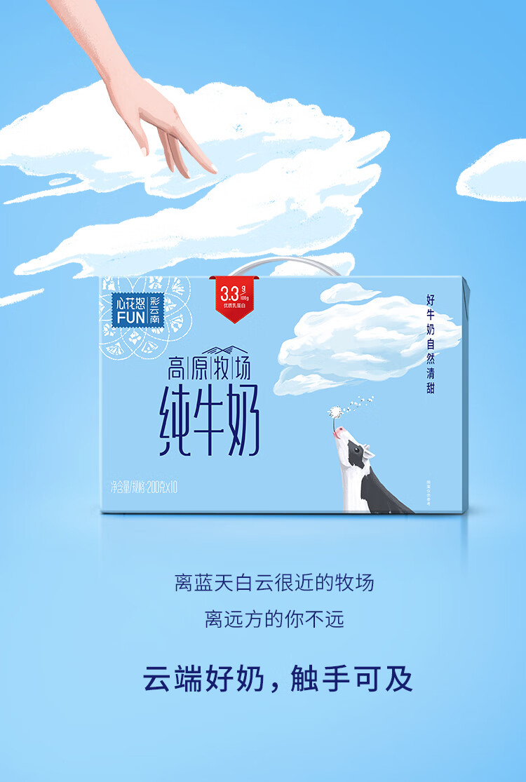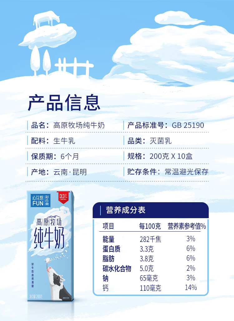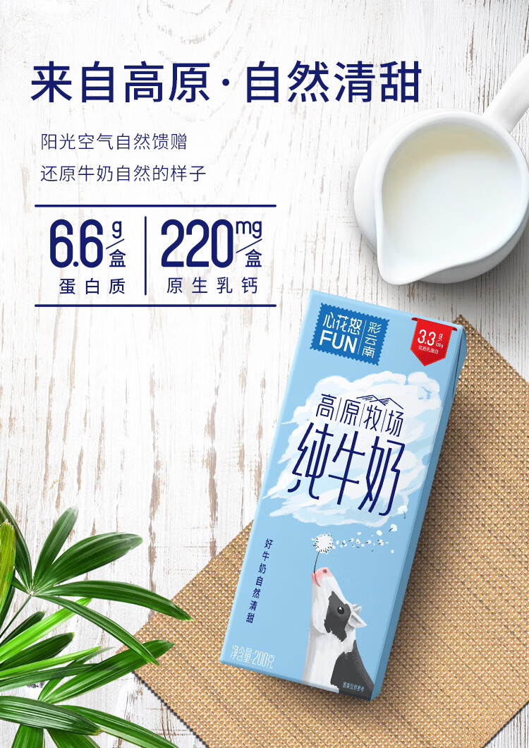 雪兰SS云南高原心花怒FUN纯牛奶3.3g乳蛋白200g*10盒*3箱 早餐搭档 200g*10盒*3箱