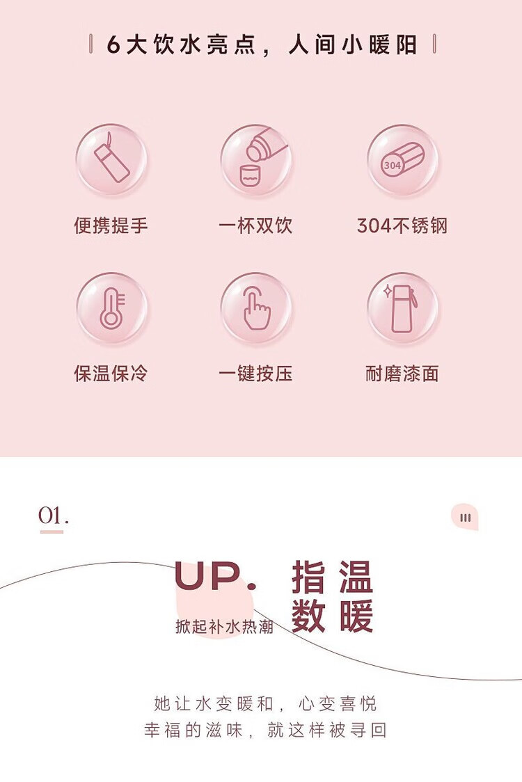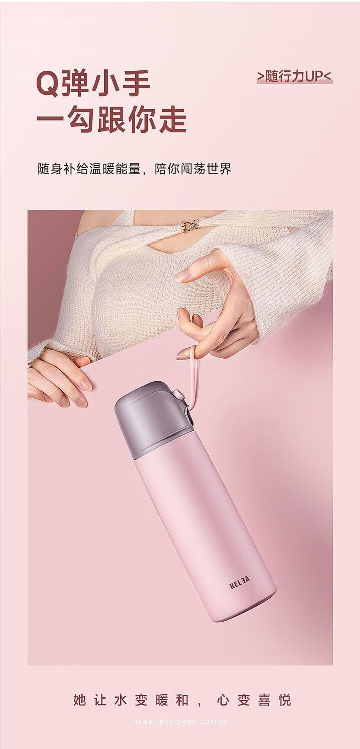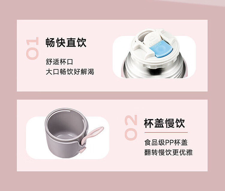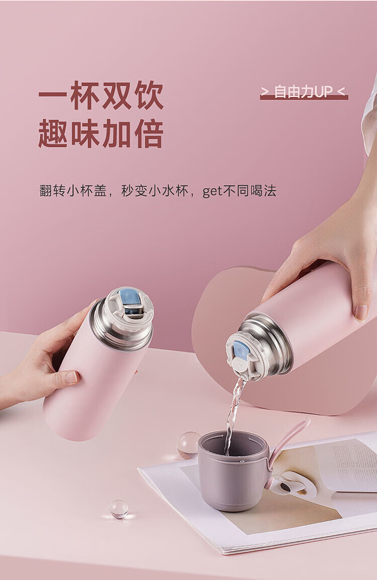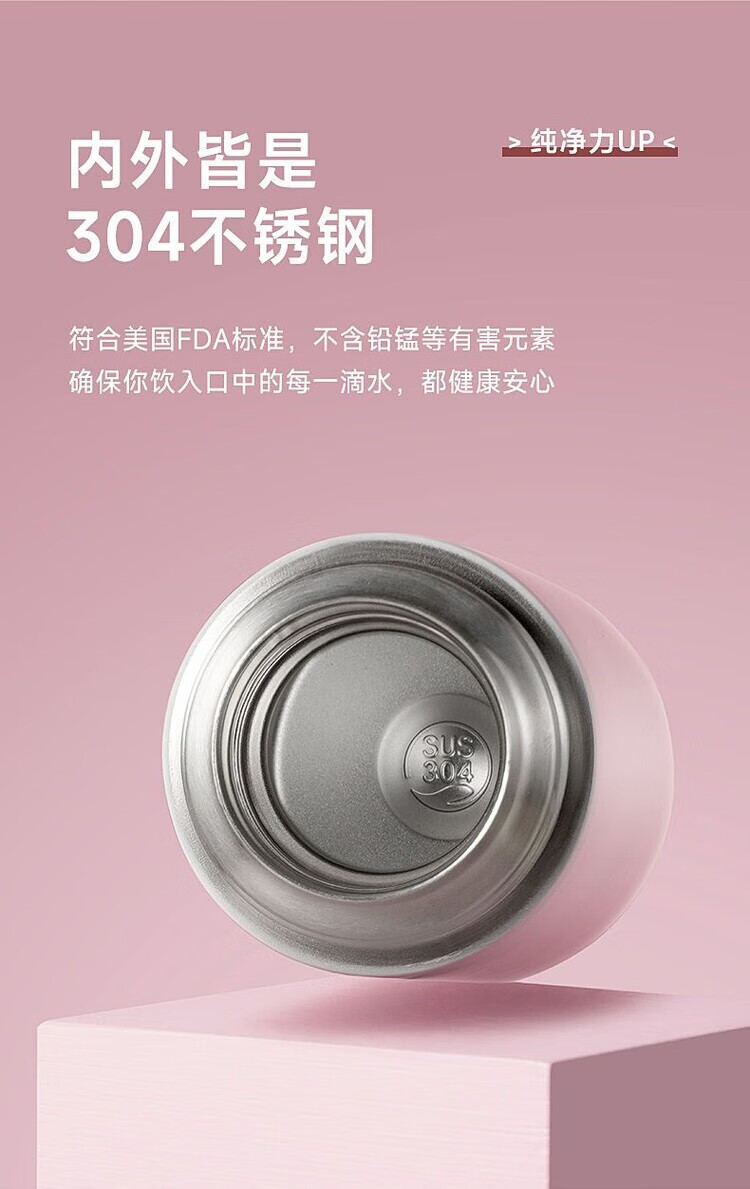 DEATKN304不锈钢保温杯女高颜值新款 户外便携水杯大容量学生杯子 甜心粉350ML 1ml 带提手清洁杯刷款