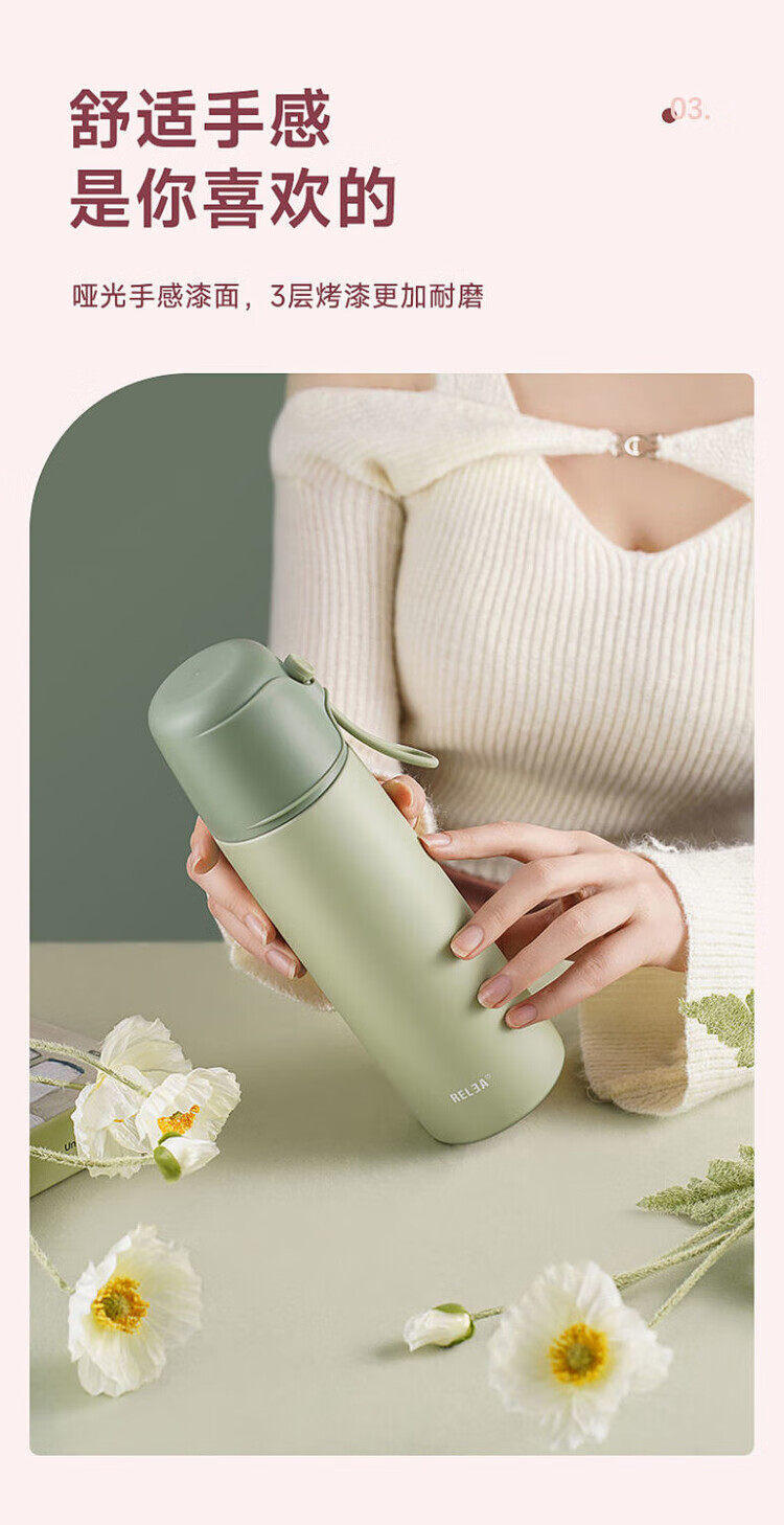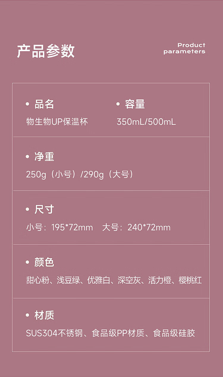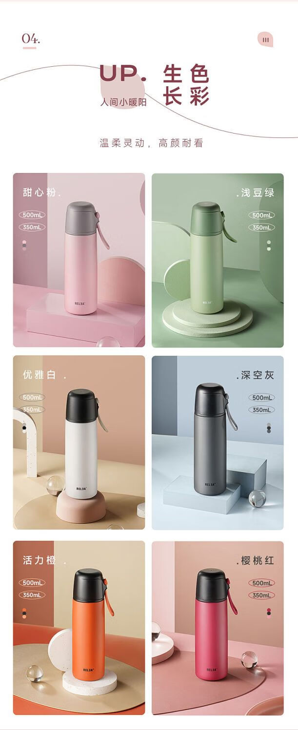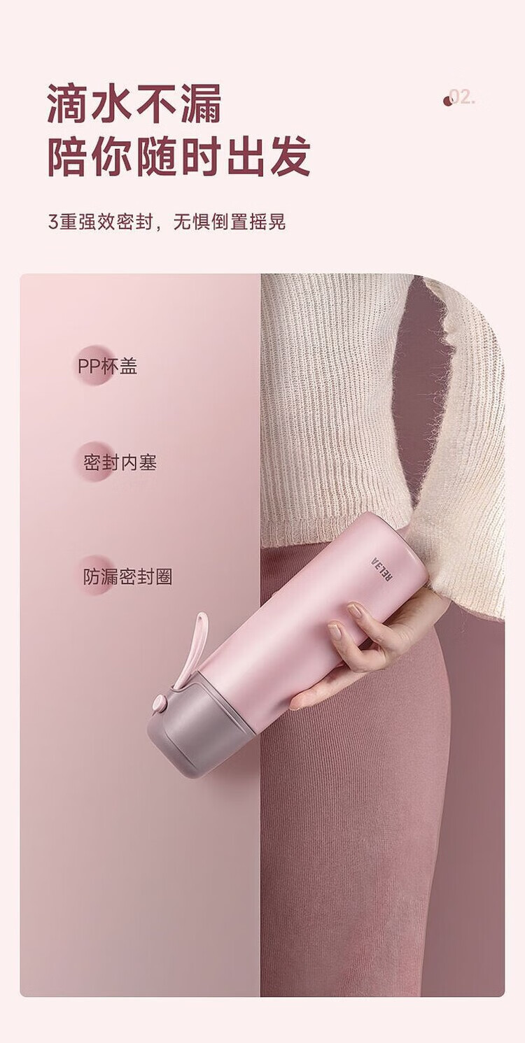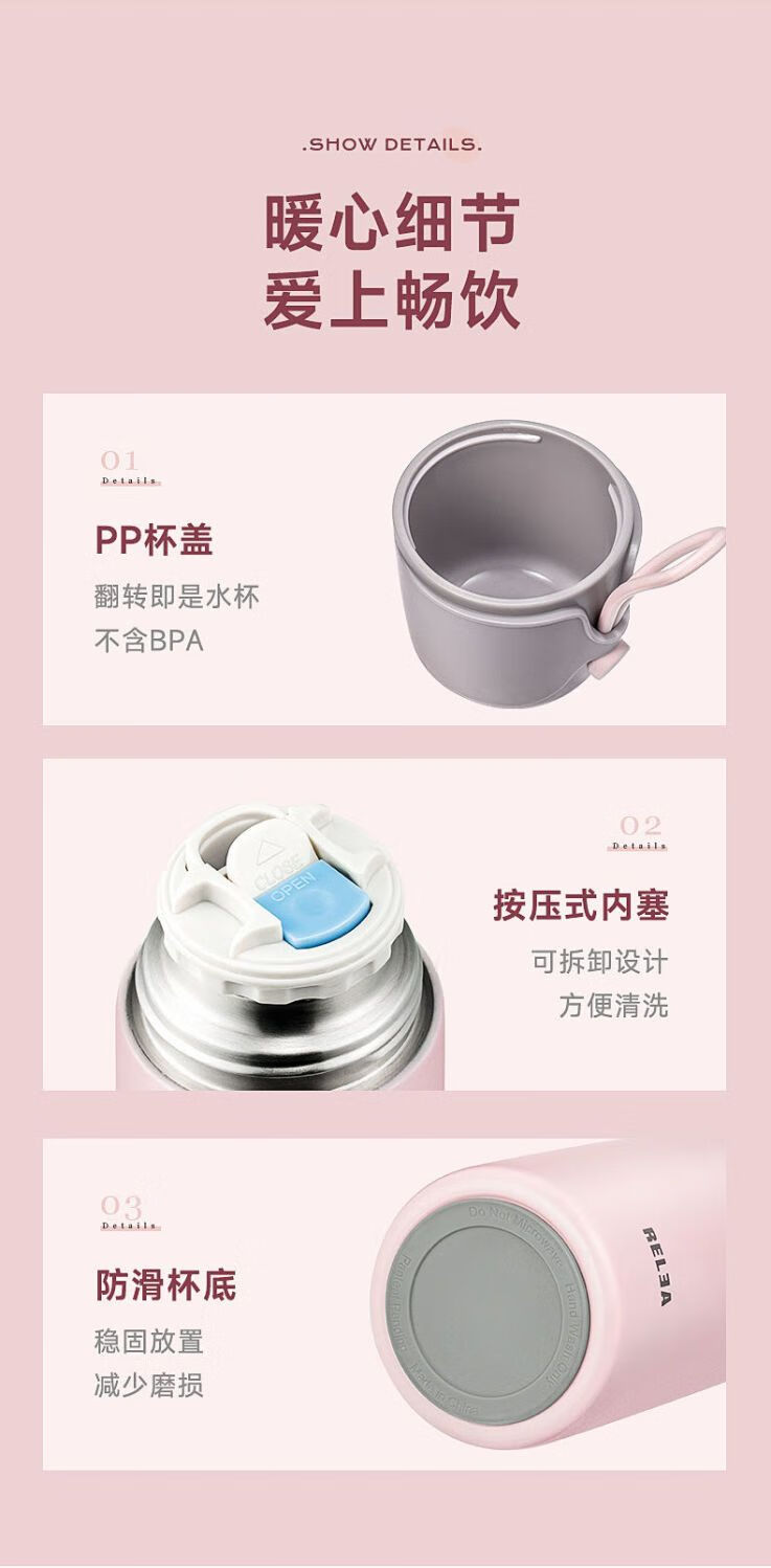 DEATKN304不锈钢保温杯女高颜值新款 户外便携水杯大容量学生杯子 甜心粉350ML 1ml 带提手清洁杯刷款