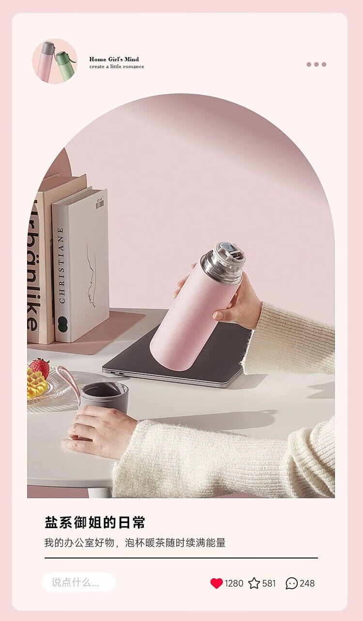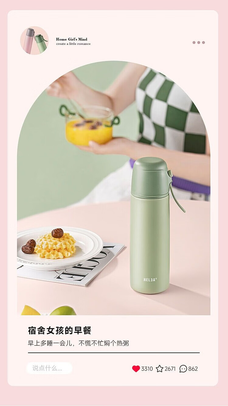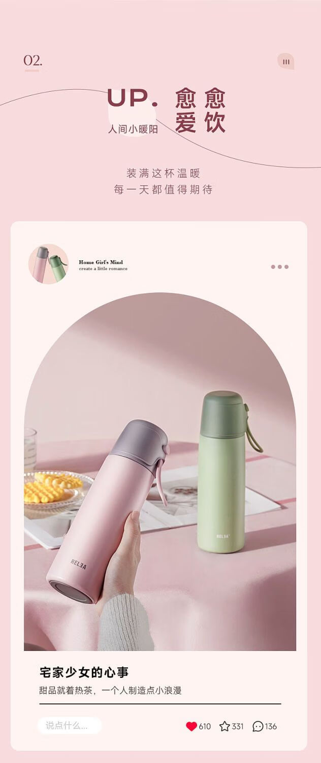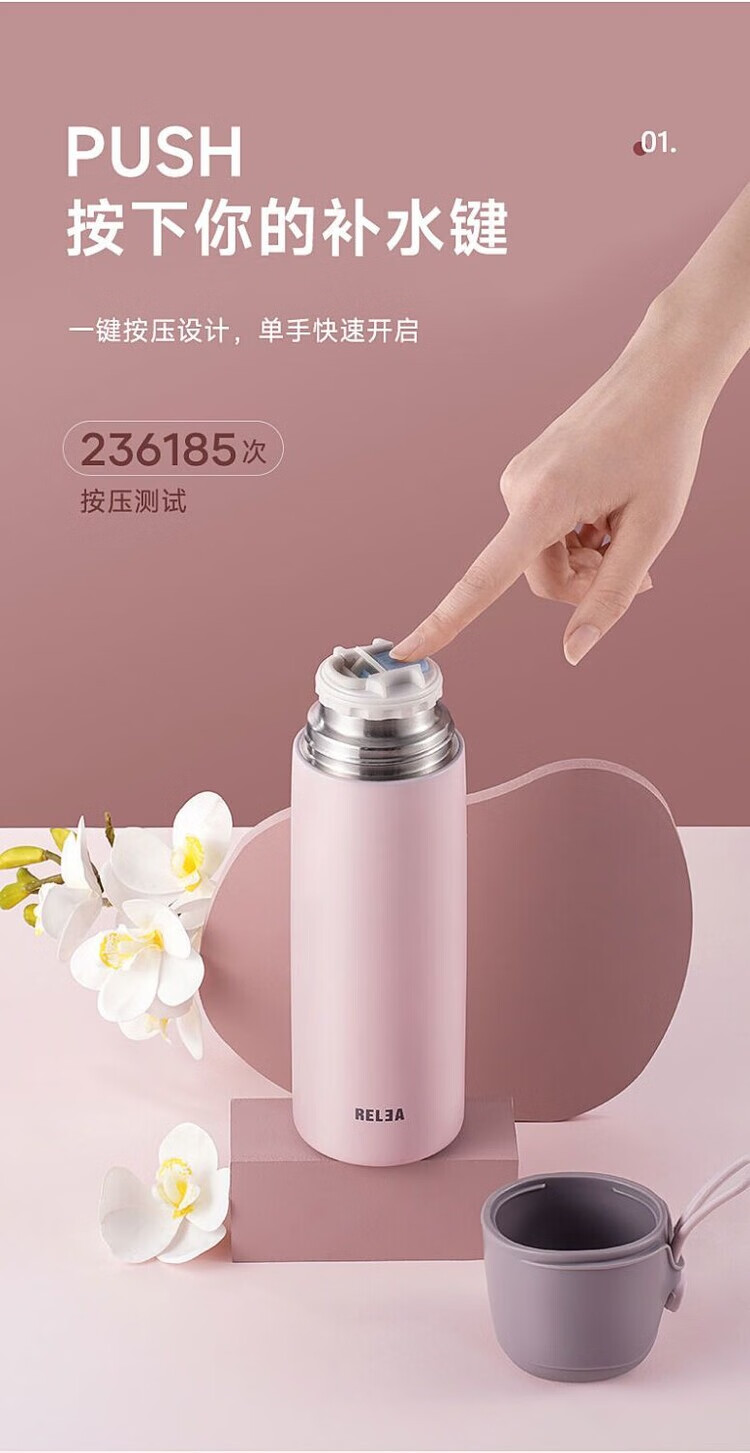 DEATKN304不锈钢保温杯女高颜值新款 户外便携水杯大容量学生杯子 甜心粉350ML 1ml 带提手清洁杯刷款