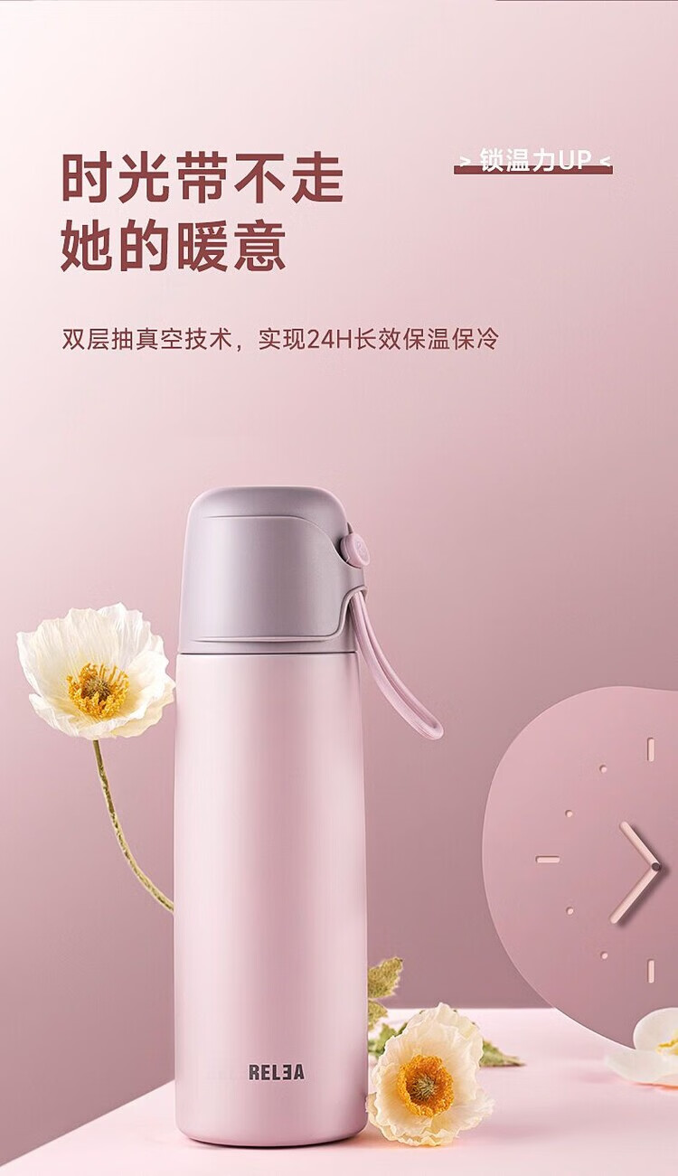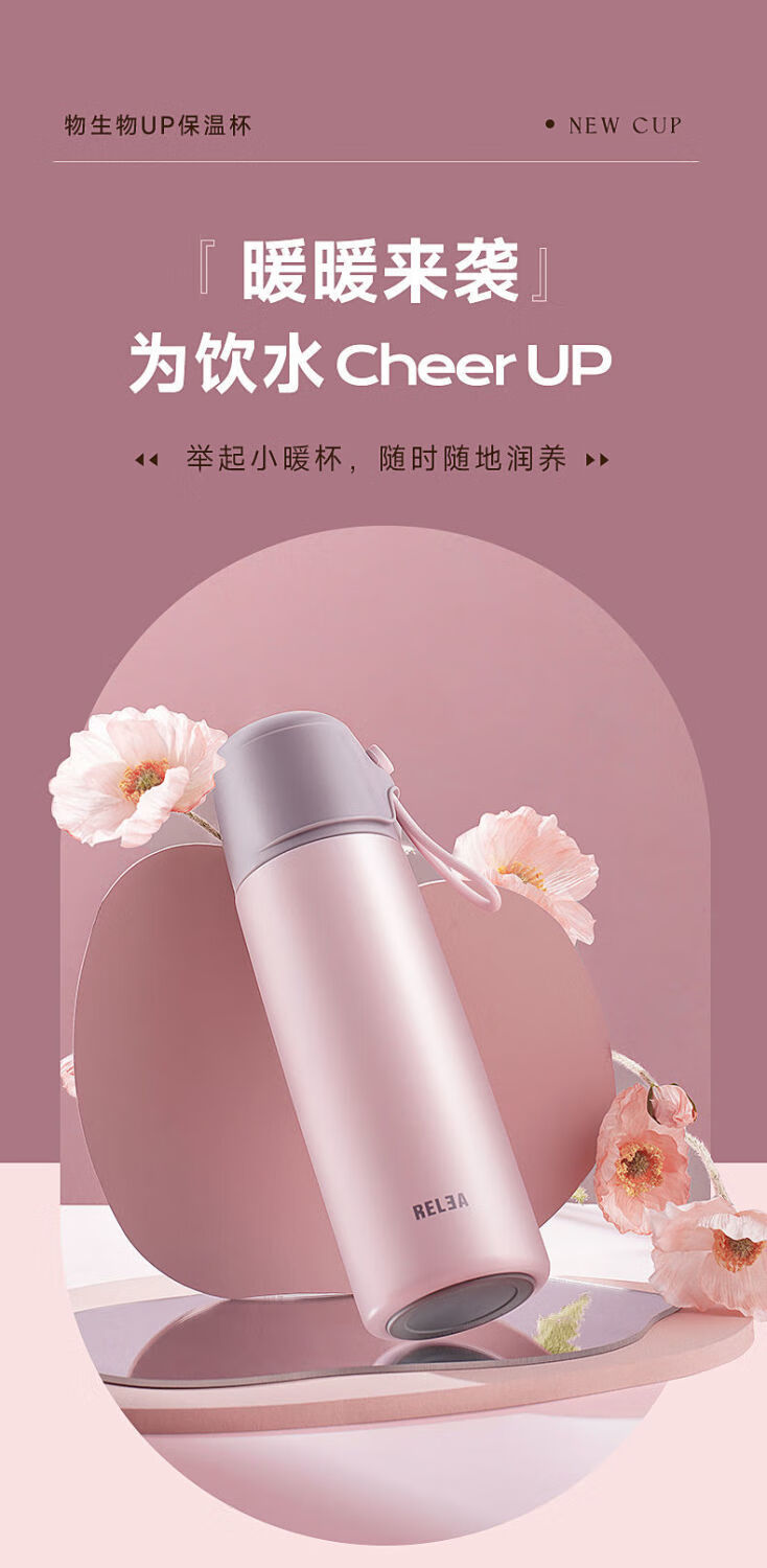 皇家洛克 ROYALLOCKE保温杯316不锈钢大容量男女水杯学生车载户外杯子 【不带显温】粉银320ml