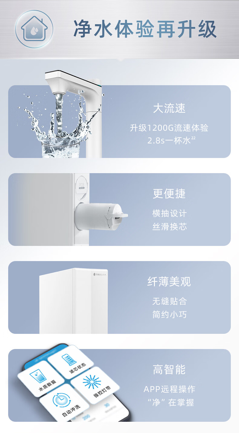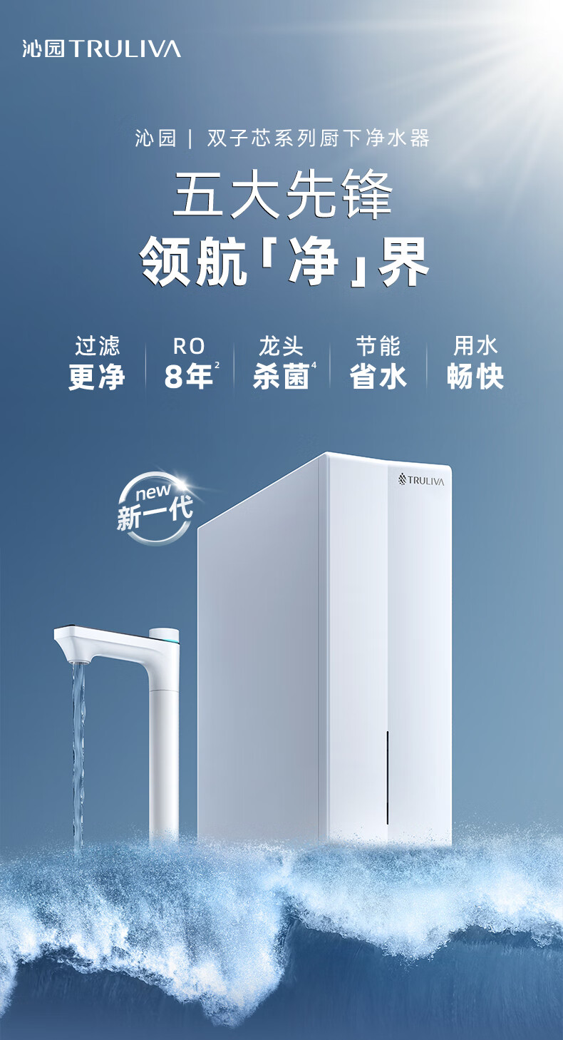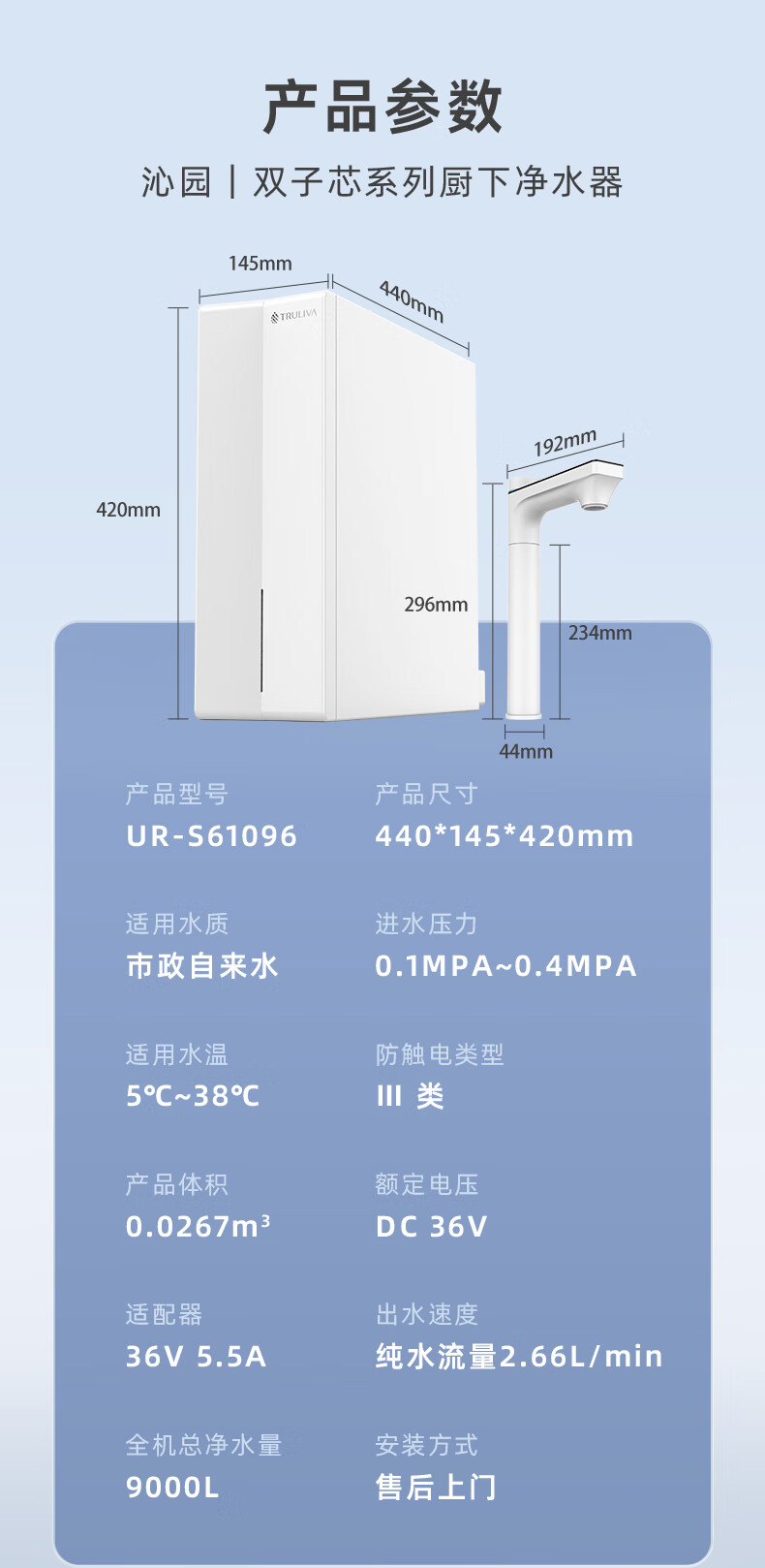 沁园(TRULIVA)净水器家用双子芯1000G 厨房台下式8年RO反渗透过滤器 直饮净饮一体机UR-S61096家电国家补贴