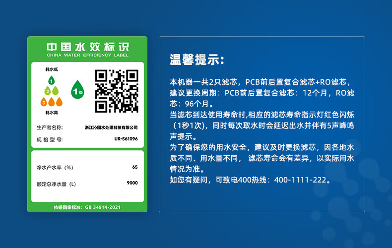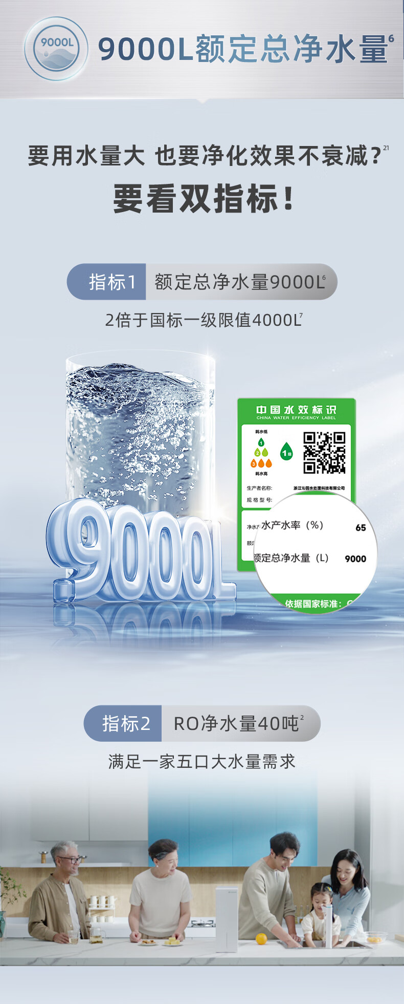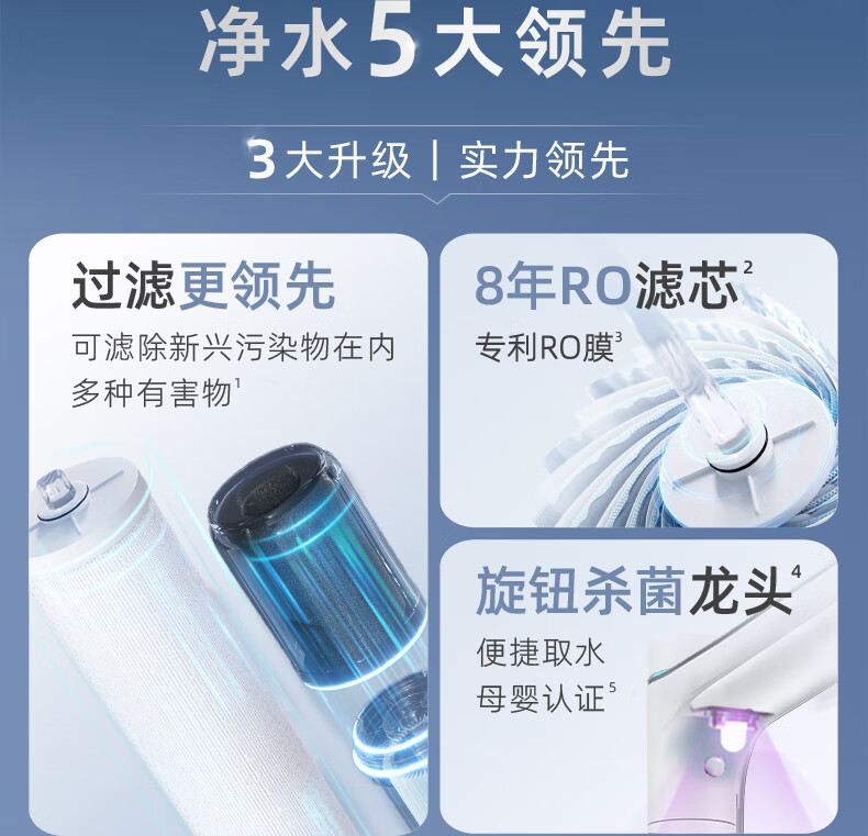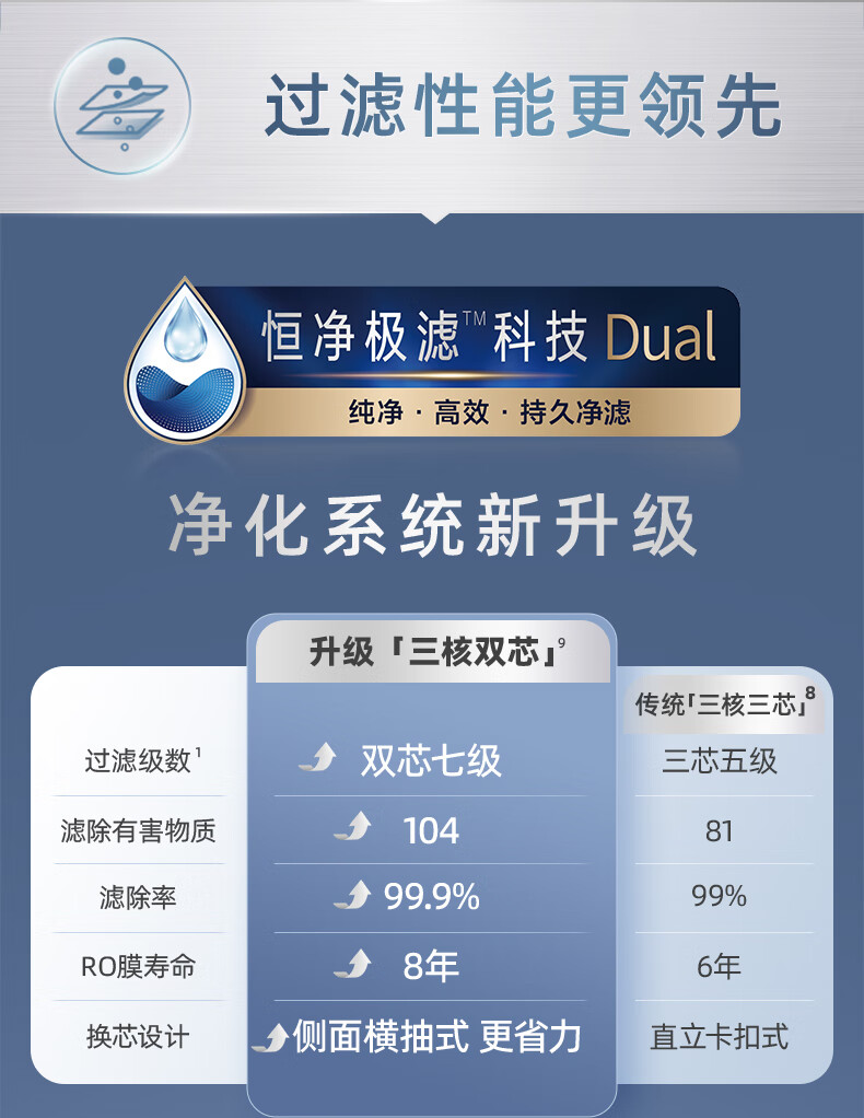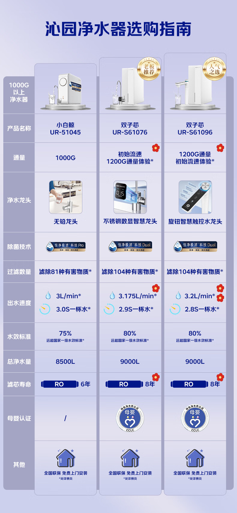 沁园(TRULIVA)净水器家用双子芯1000G 厨房台下式8年RO反渗透过滤器 直饮净饮一体机UR-S61096家电国家补贴