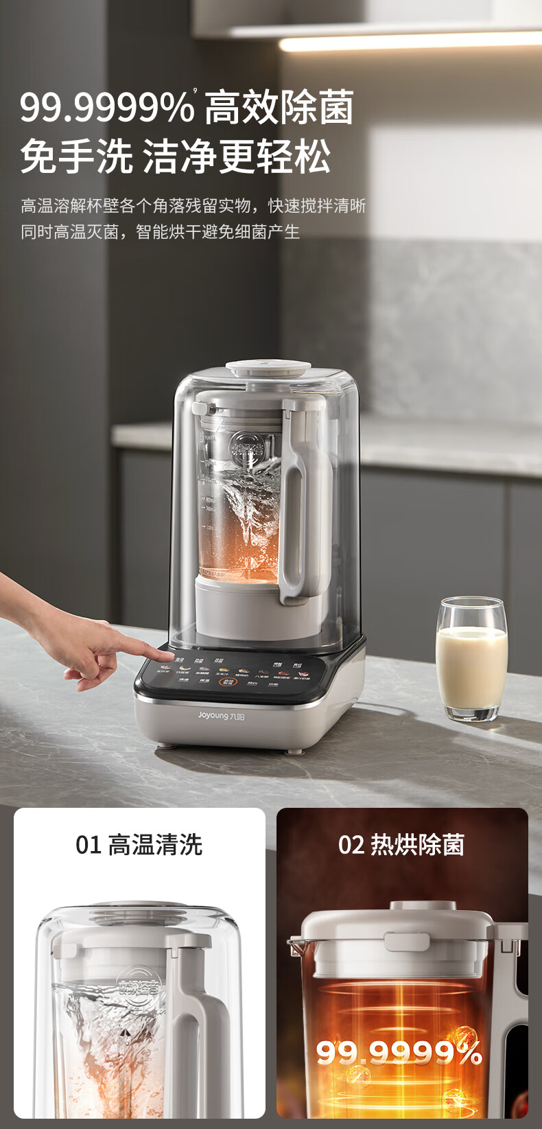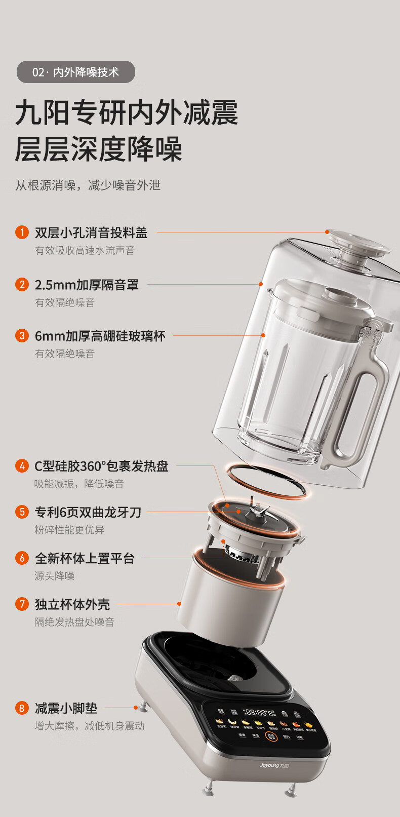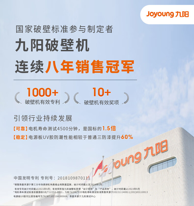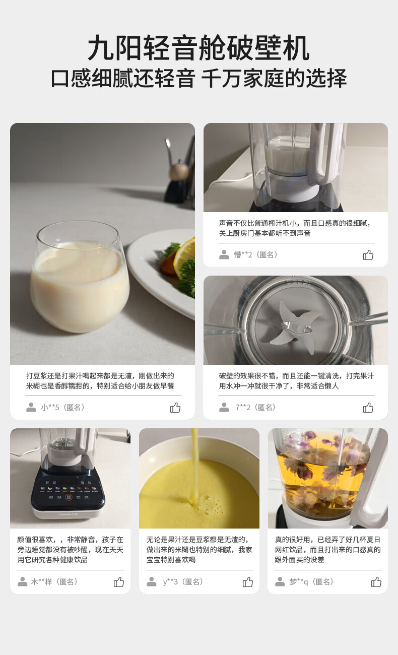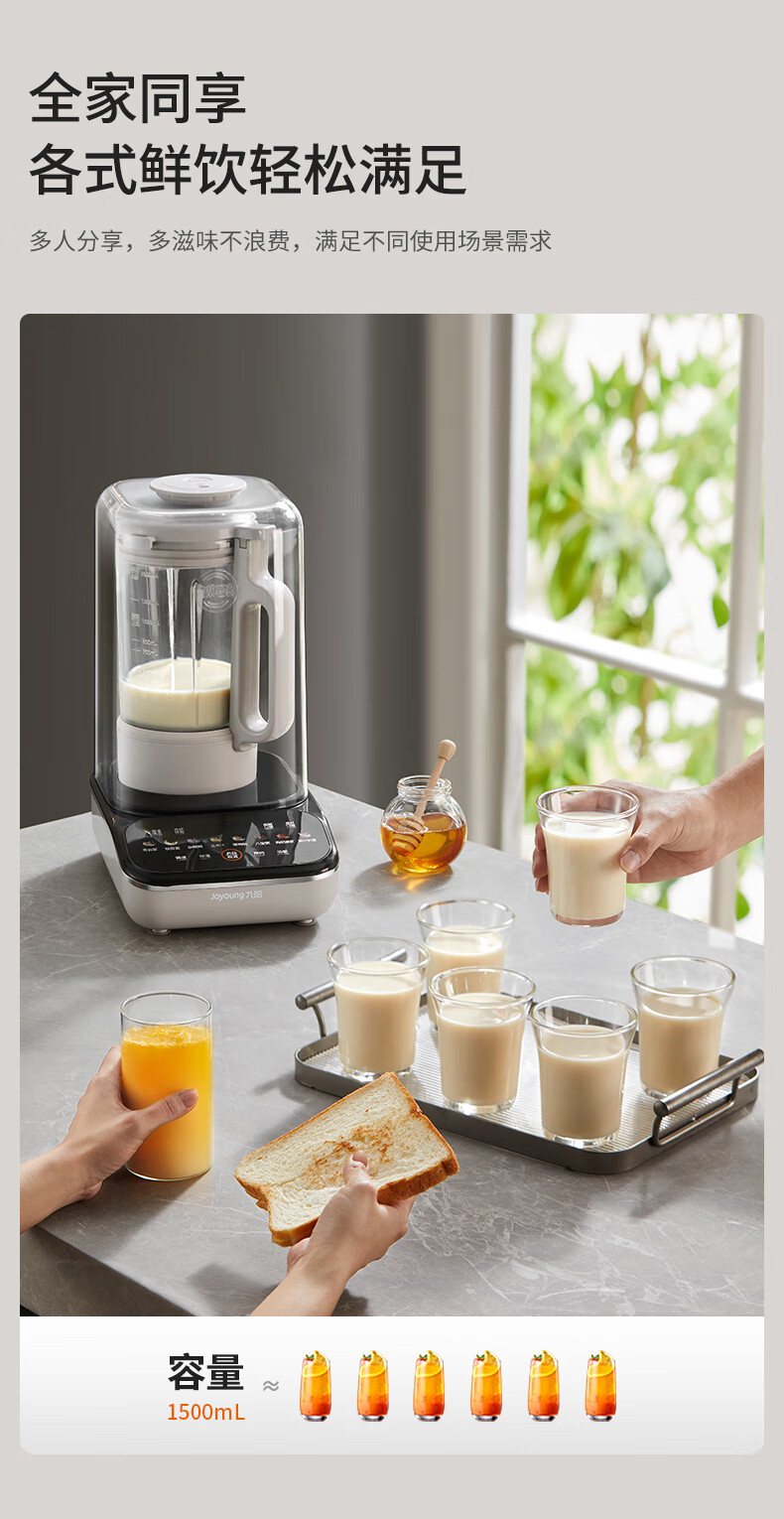 九阳最新款变频轻音破壁机家用全自动豆浆机轻音低至39分贝2-4人用1.5L降噪B15 政府补贴